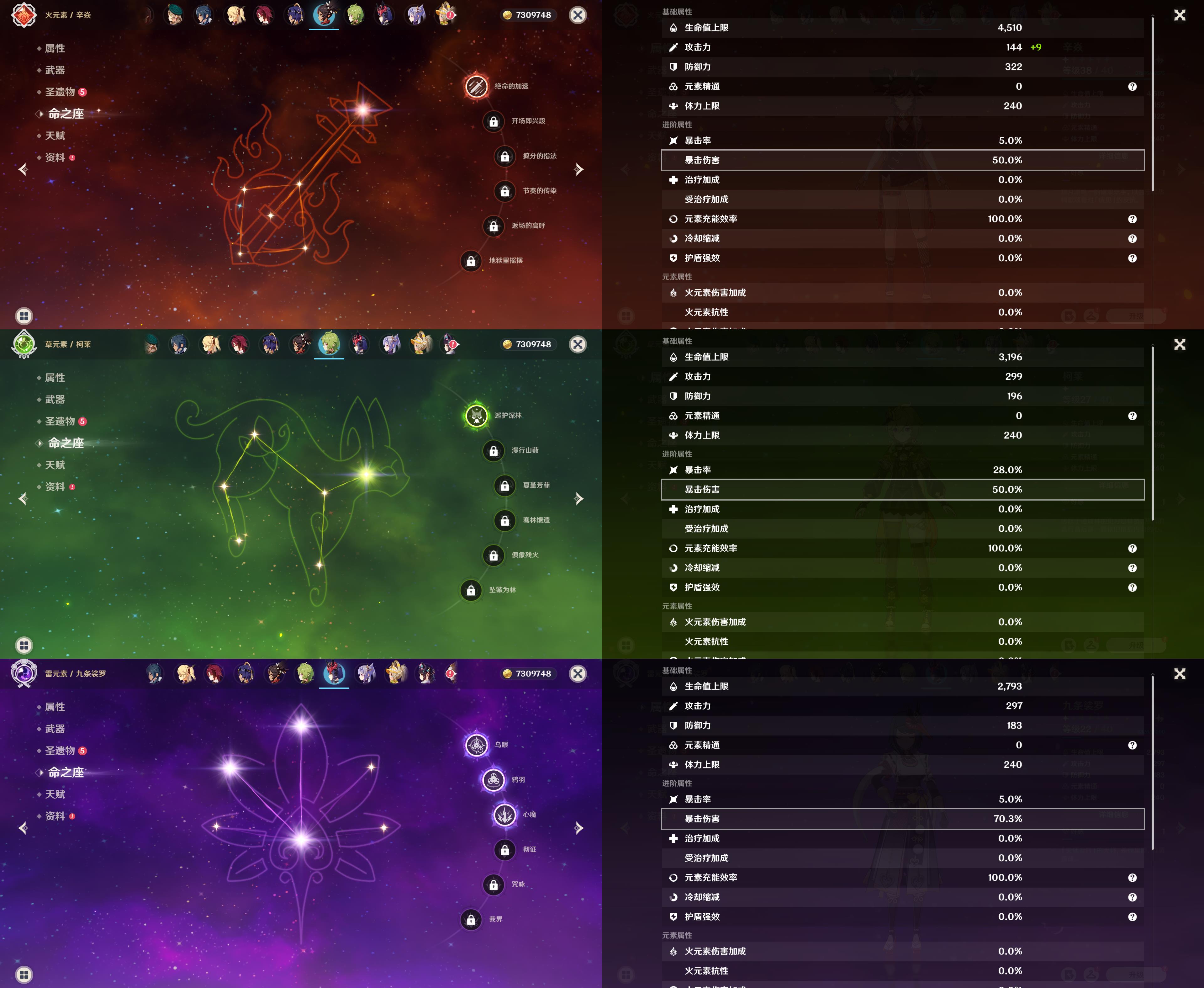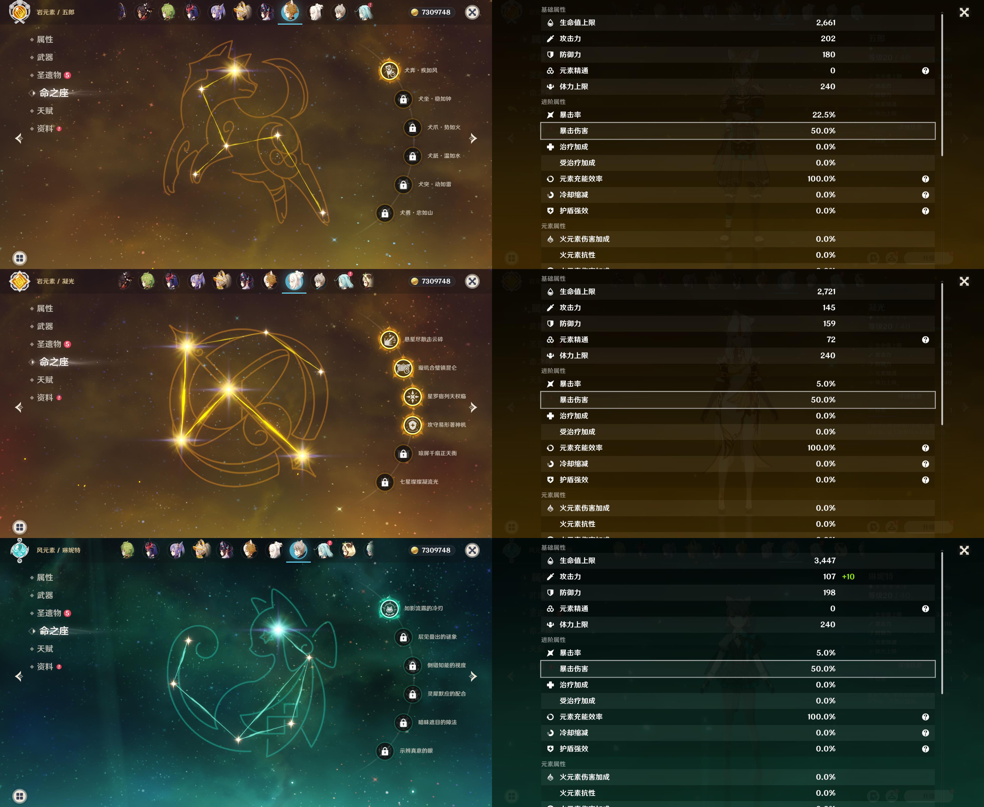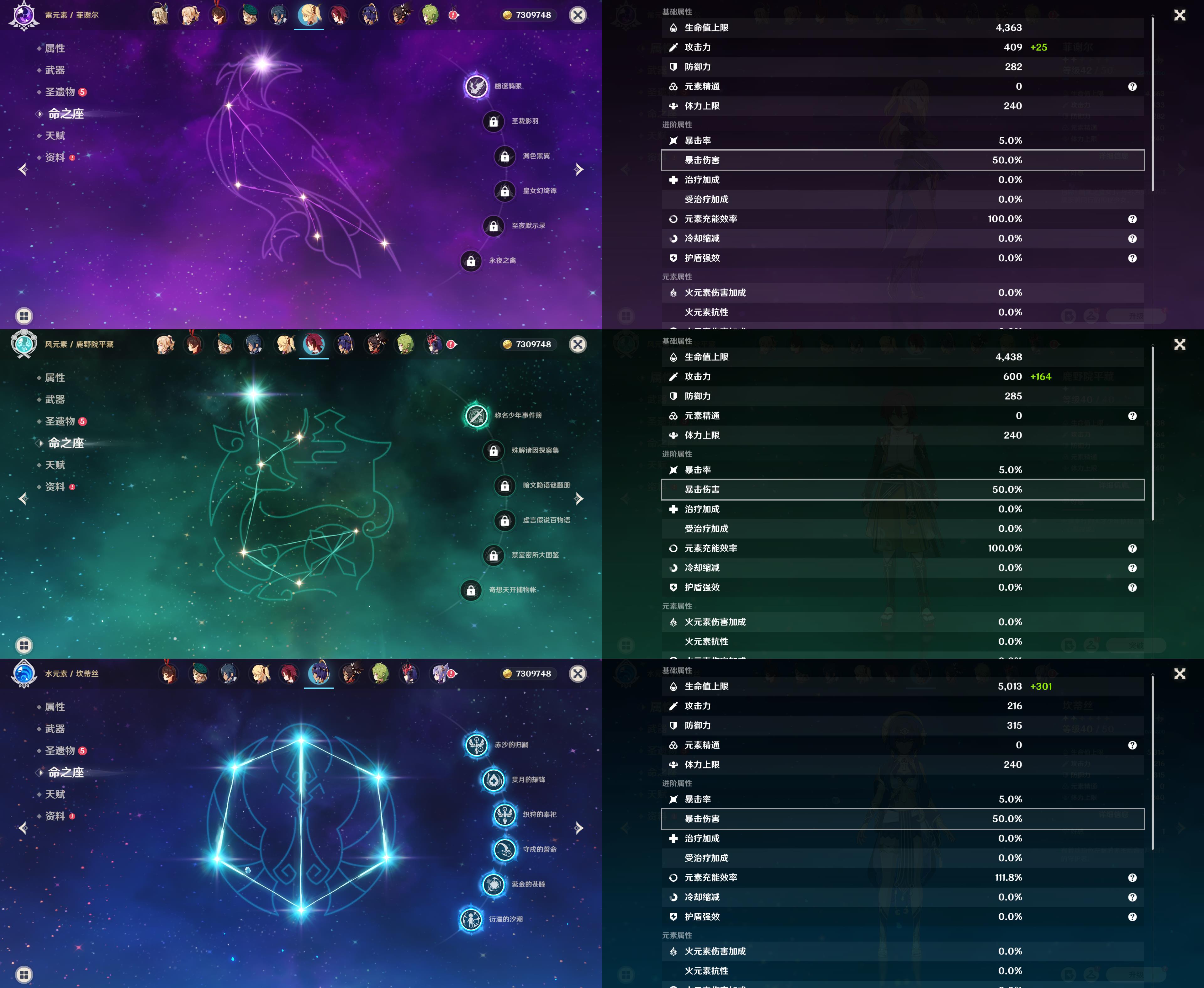 57级/22黄/女主/13个五星角色/4个五星武器/