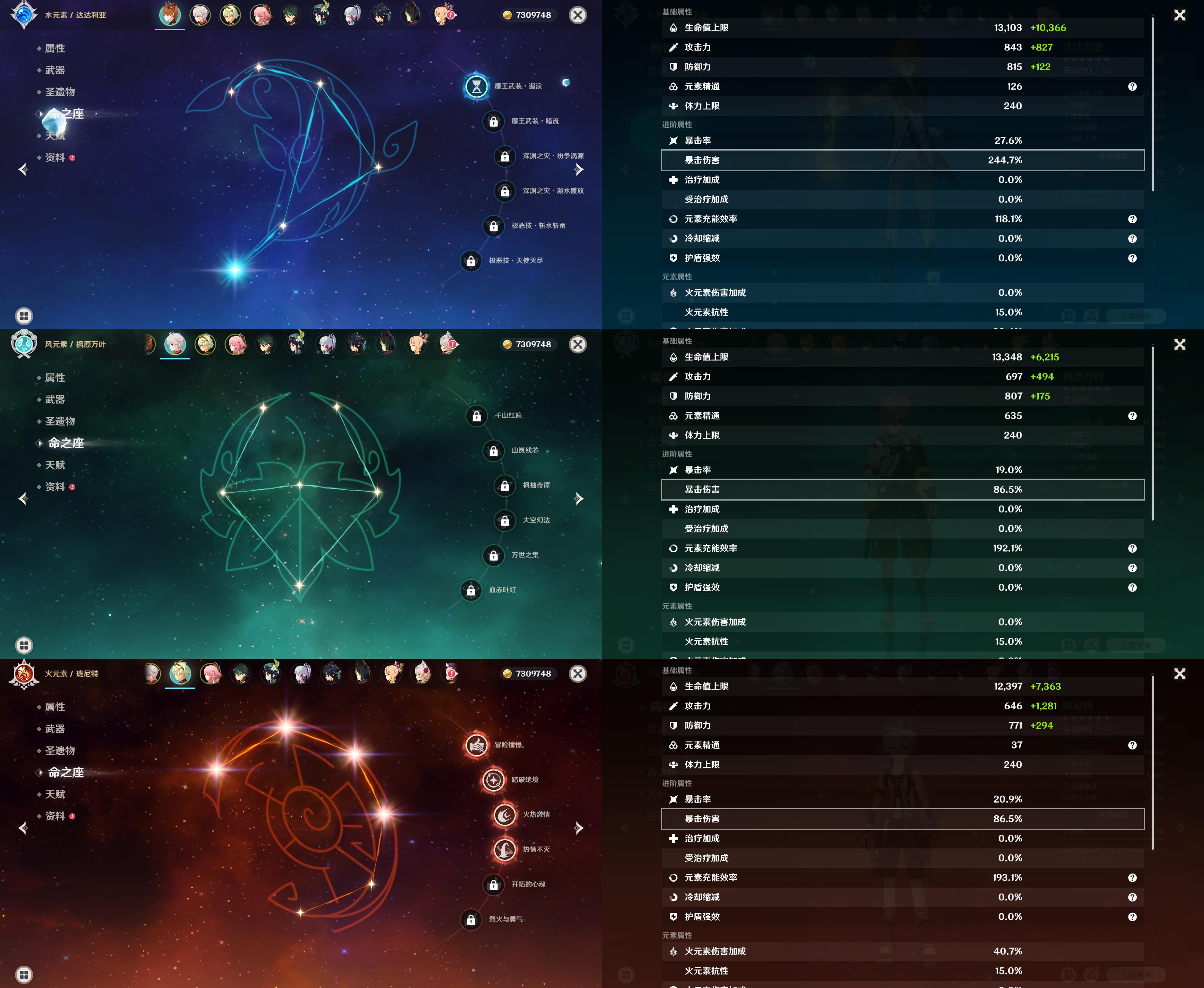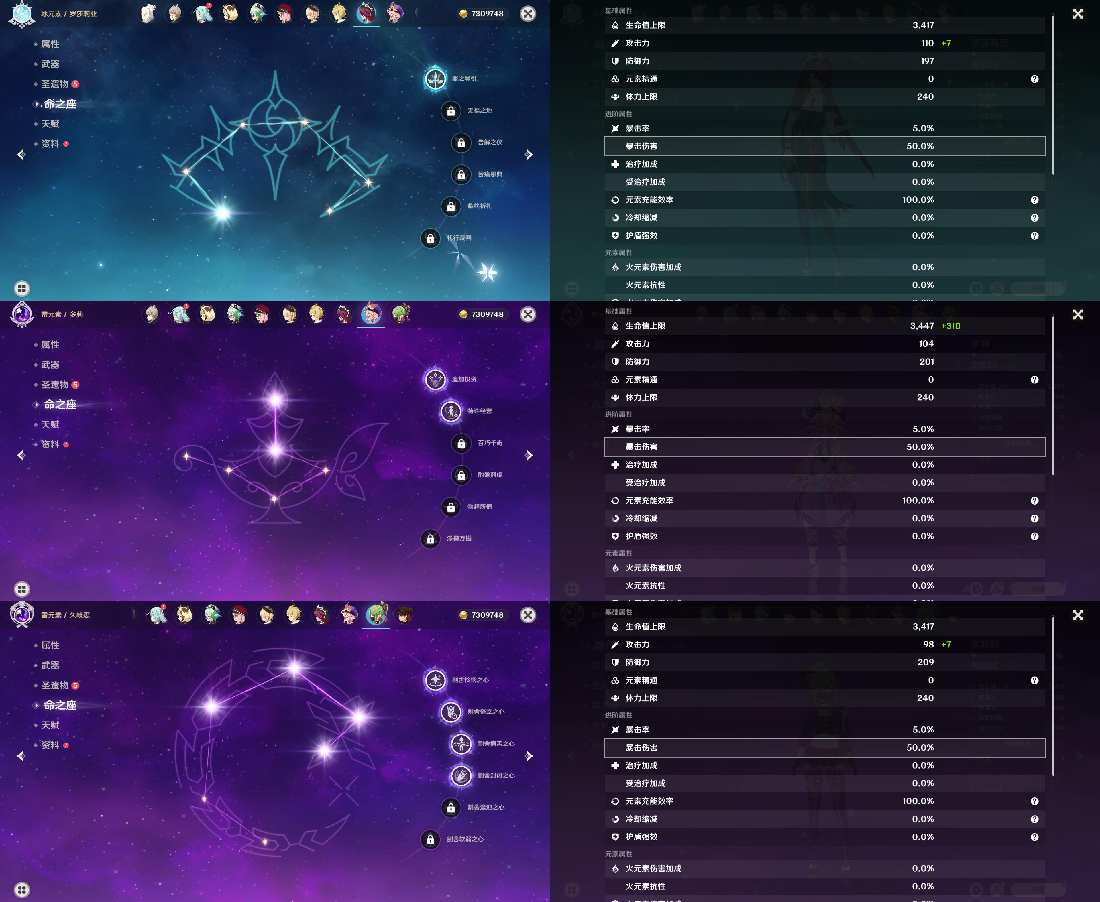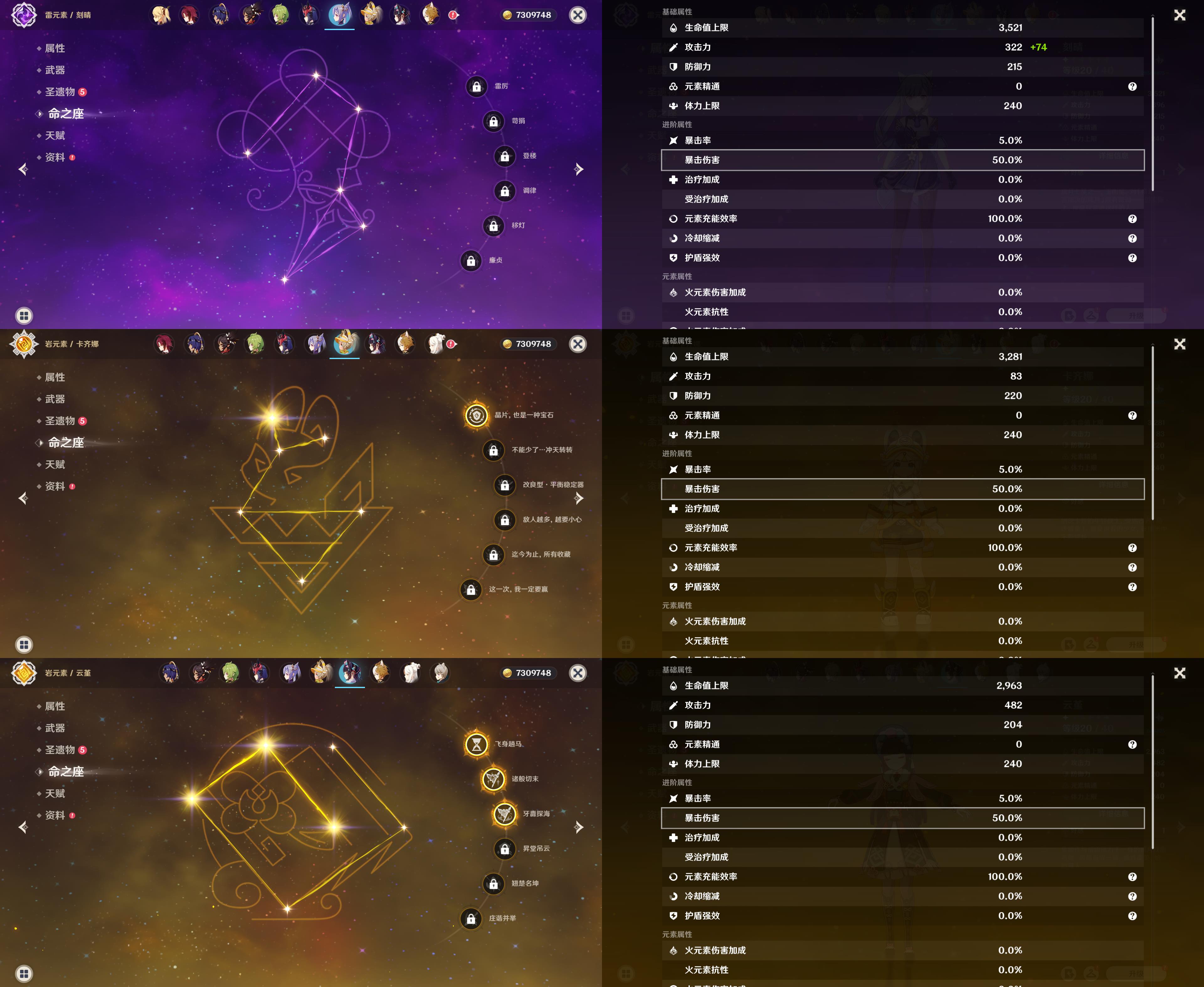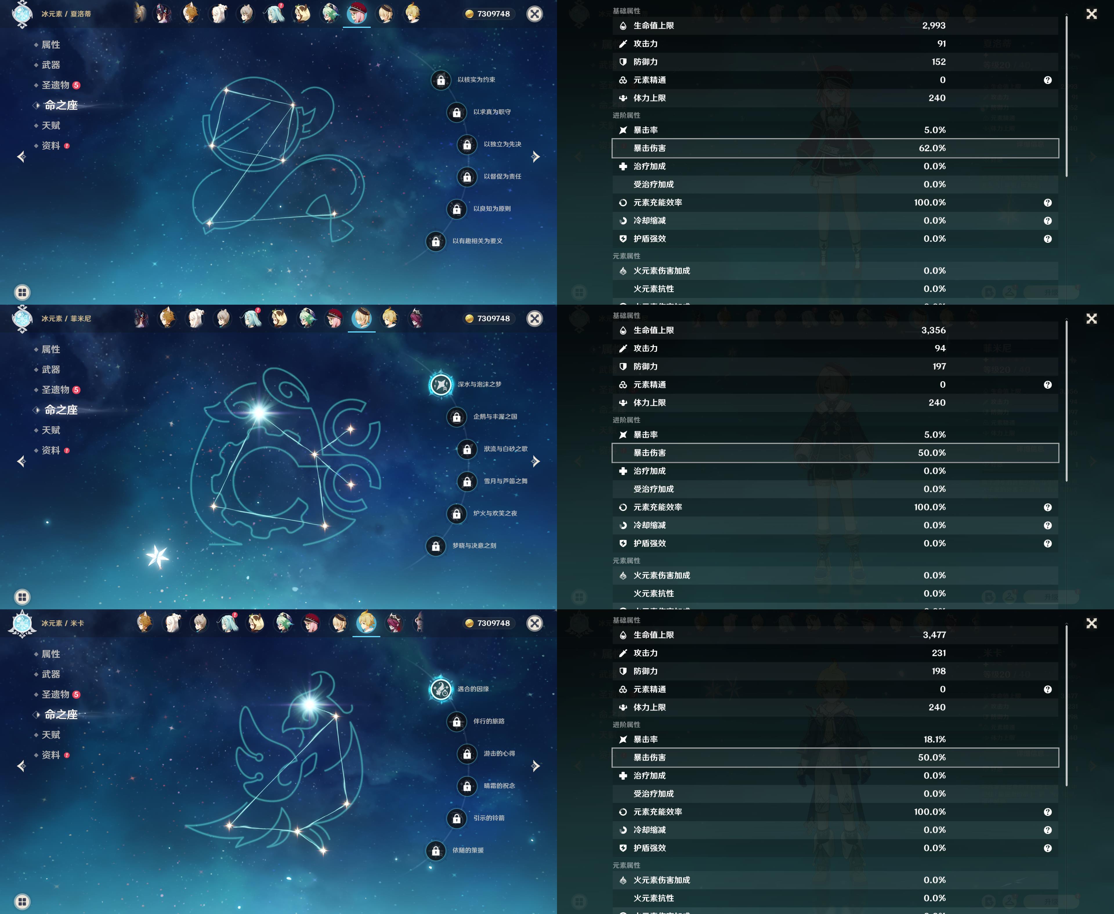 57级/22黄/女主/13个五星角色/4个五星武器/