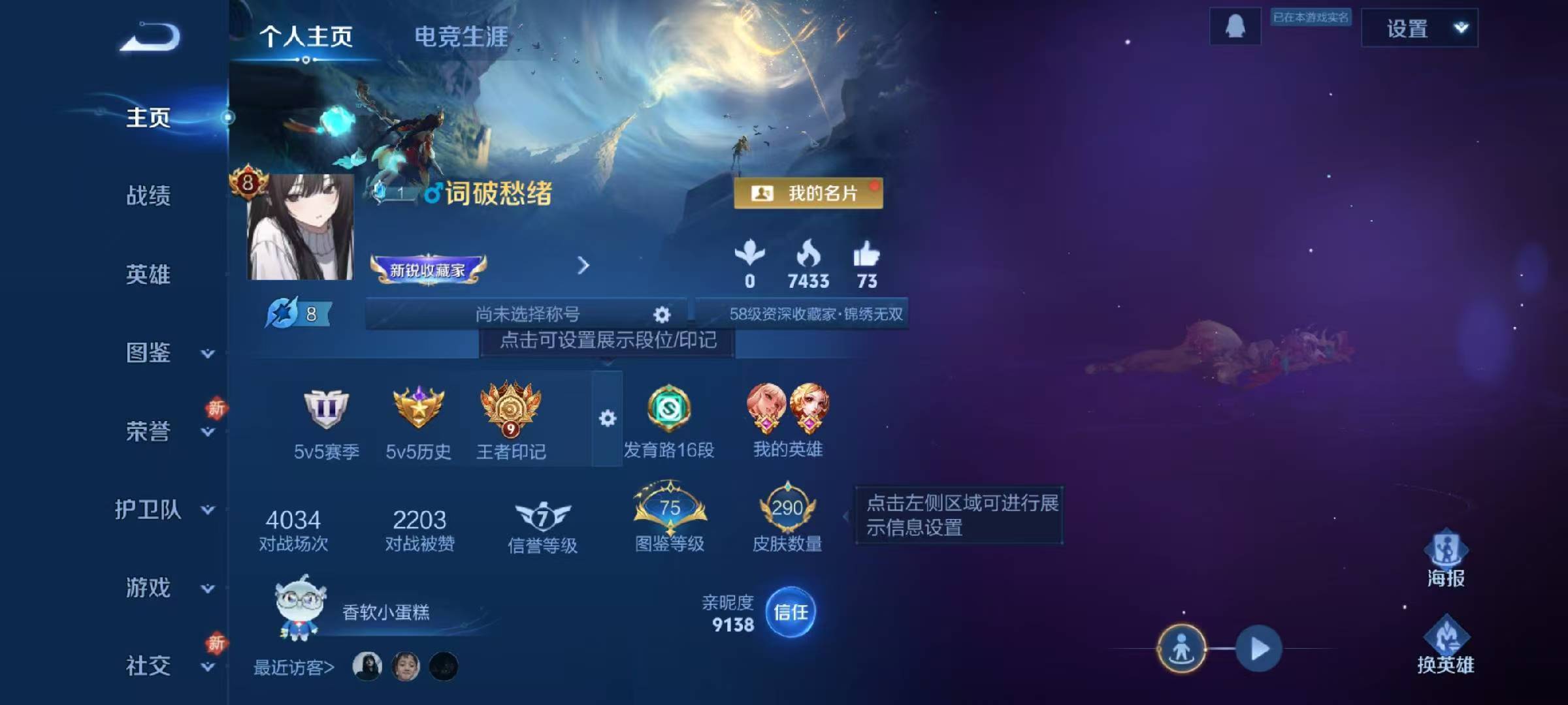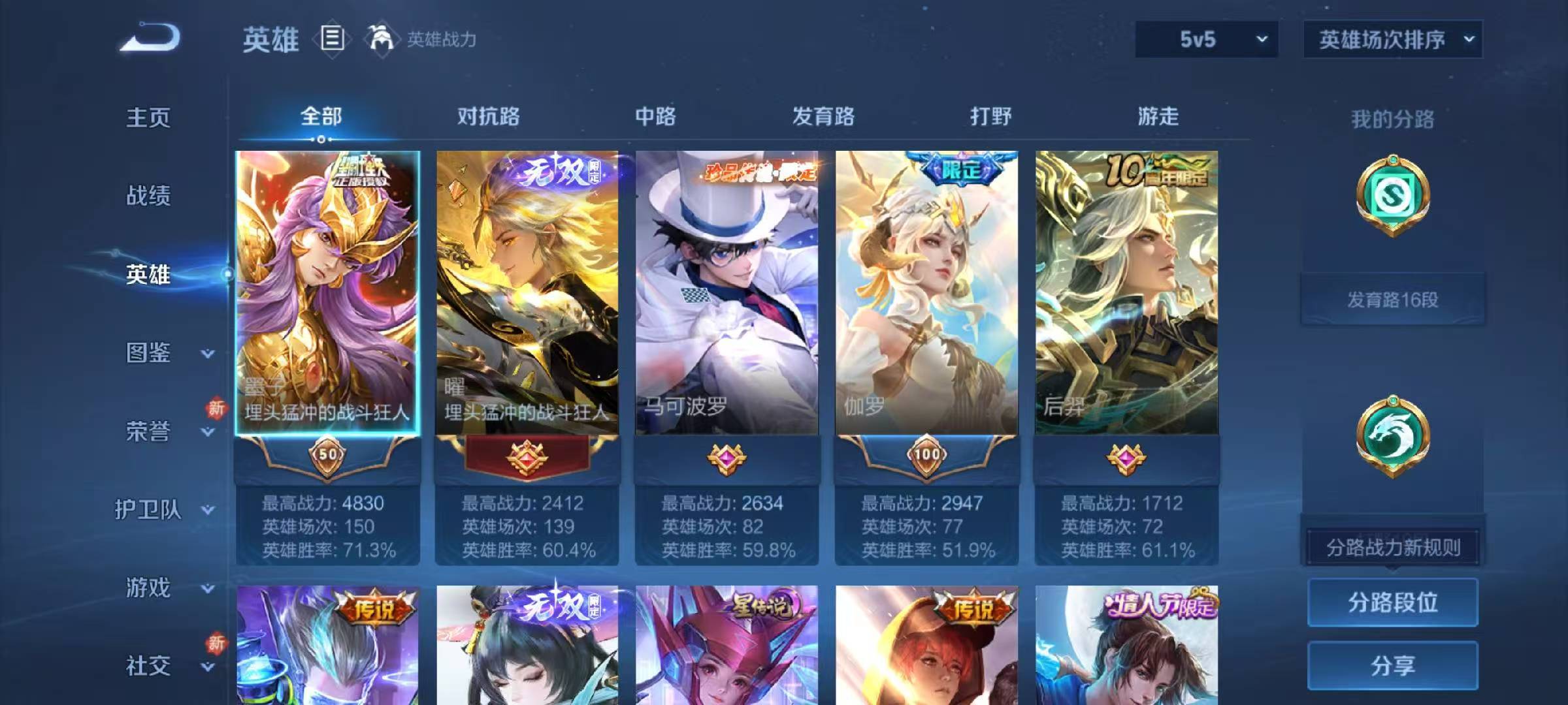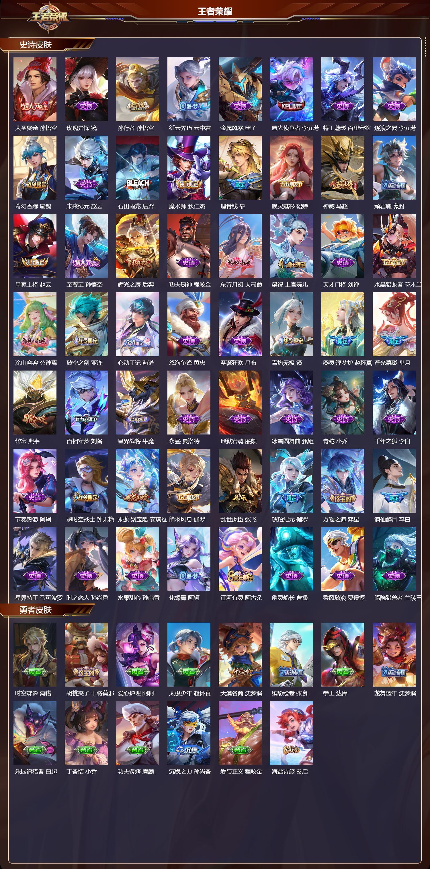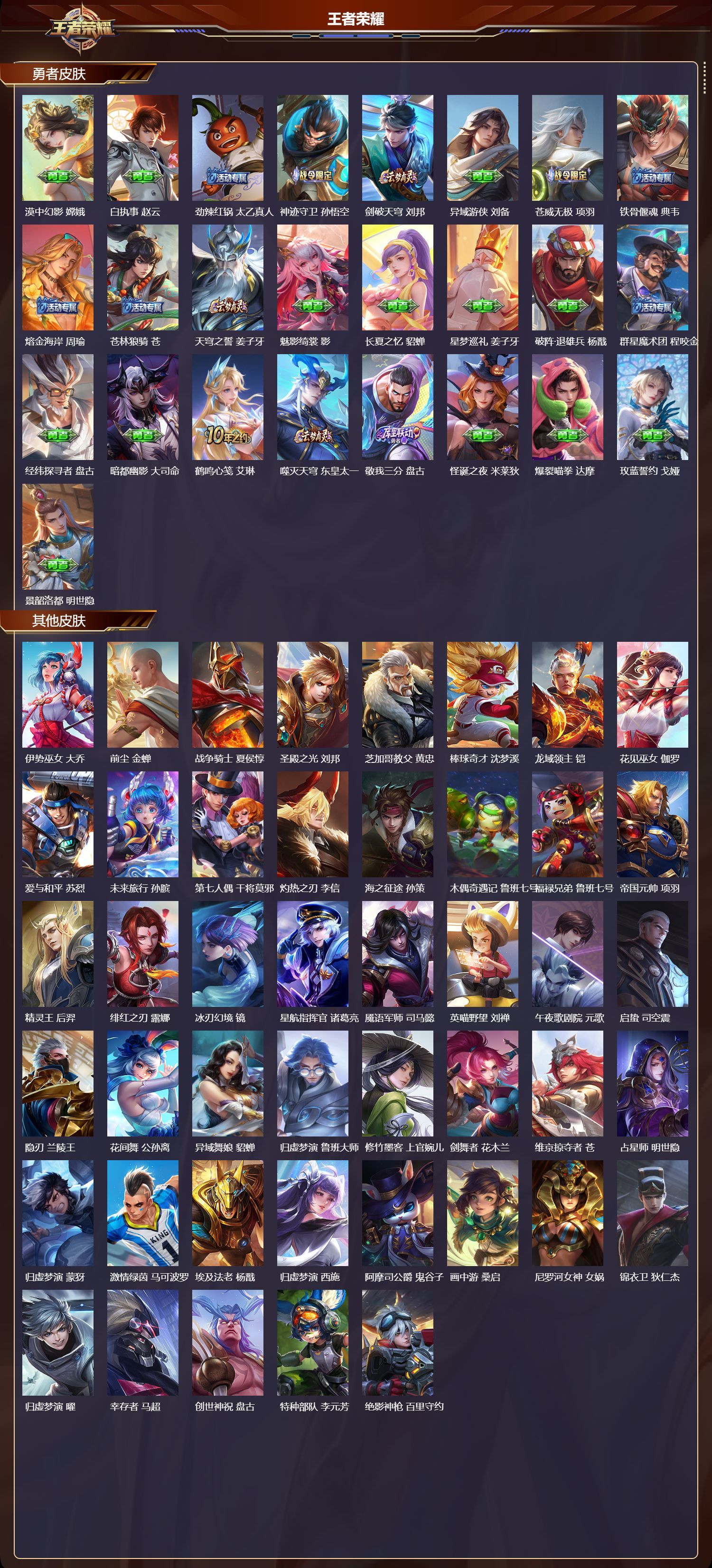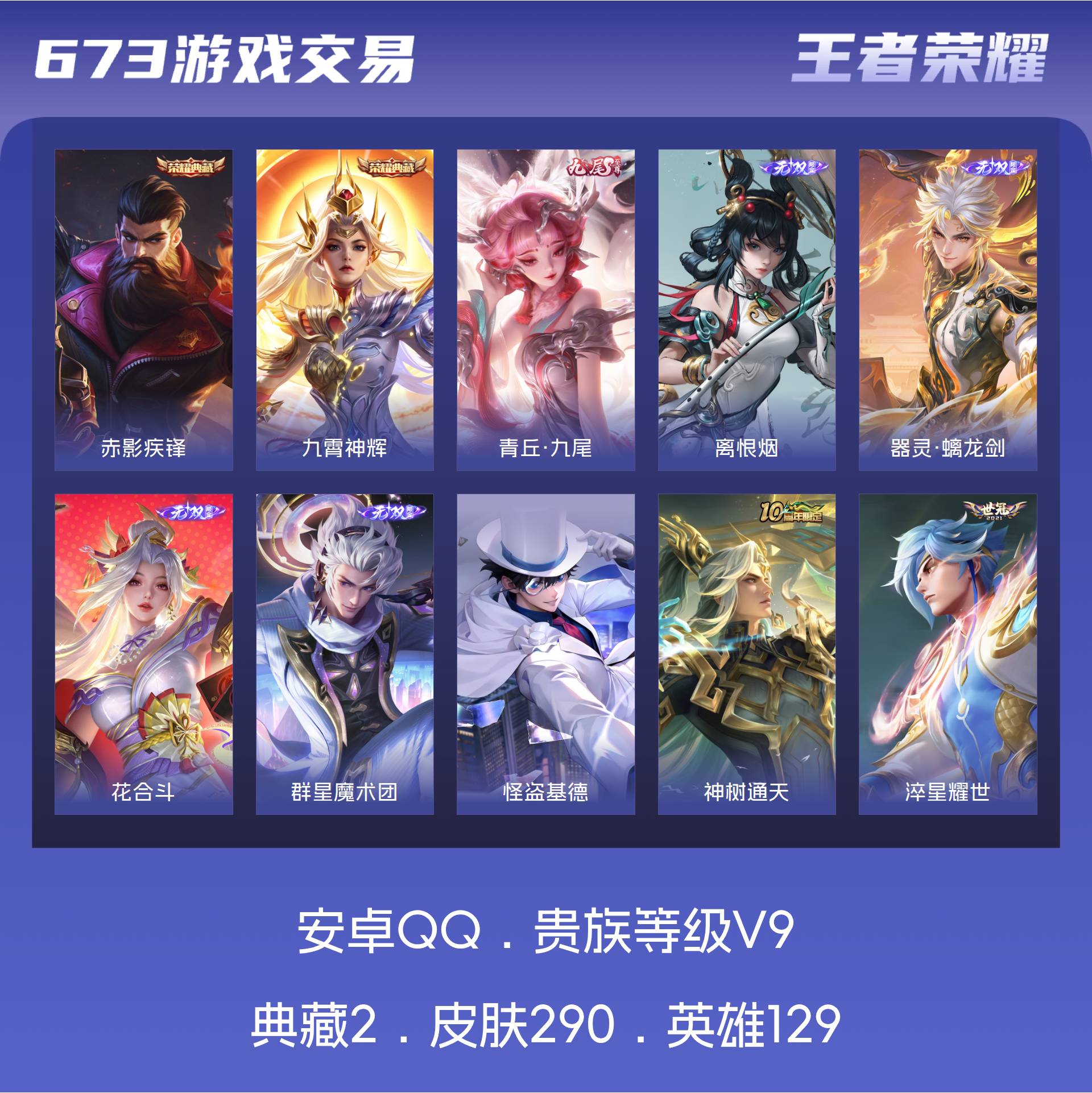 V9 皮肤290 英雄129 永恒钻石 荣耀典藏2 无双皮肤5 珍品传说1 传说41 其他皮肤247