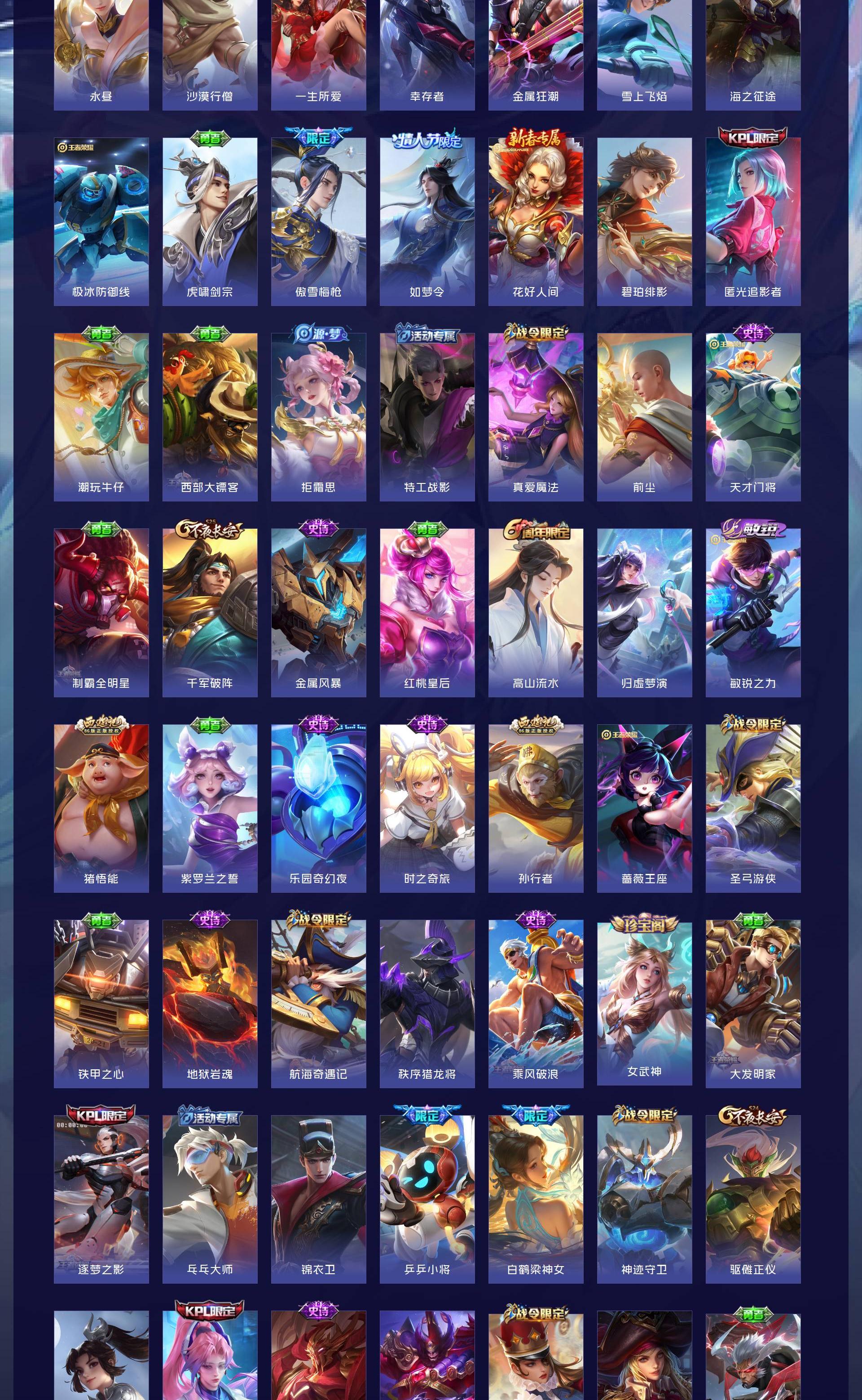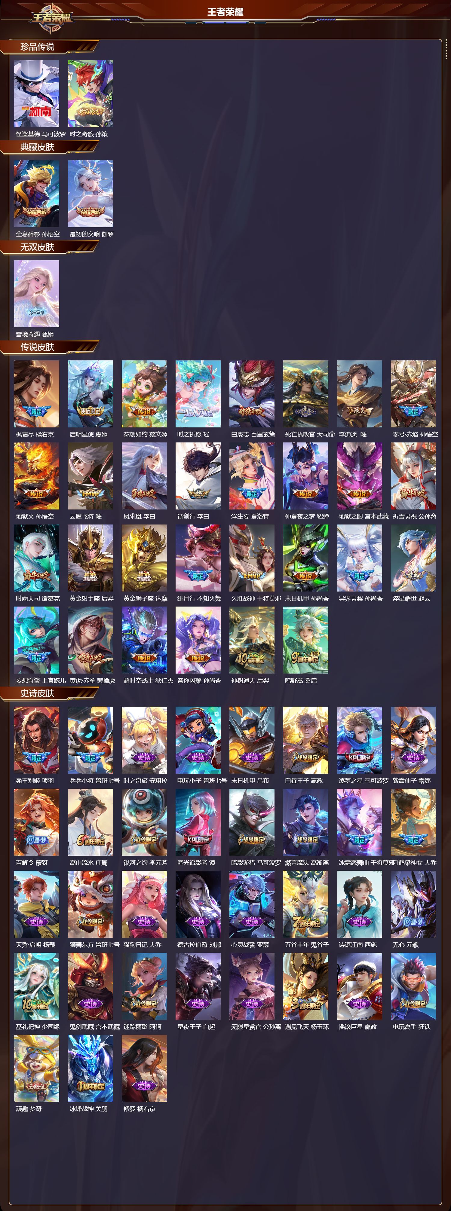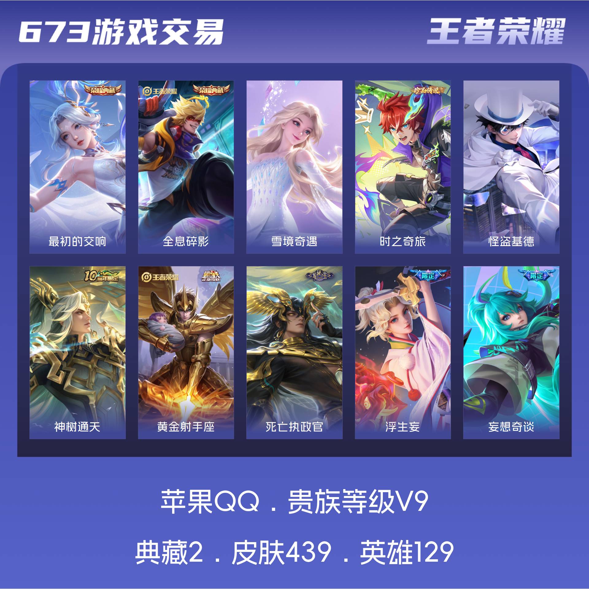 V9 皮肤439 英雄129 最强王者 荣耀典藏2 无双皮肤1 珍品传说2 传说30 其他皮肤408