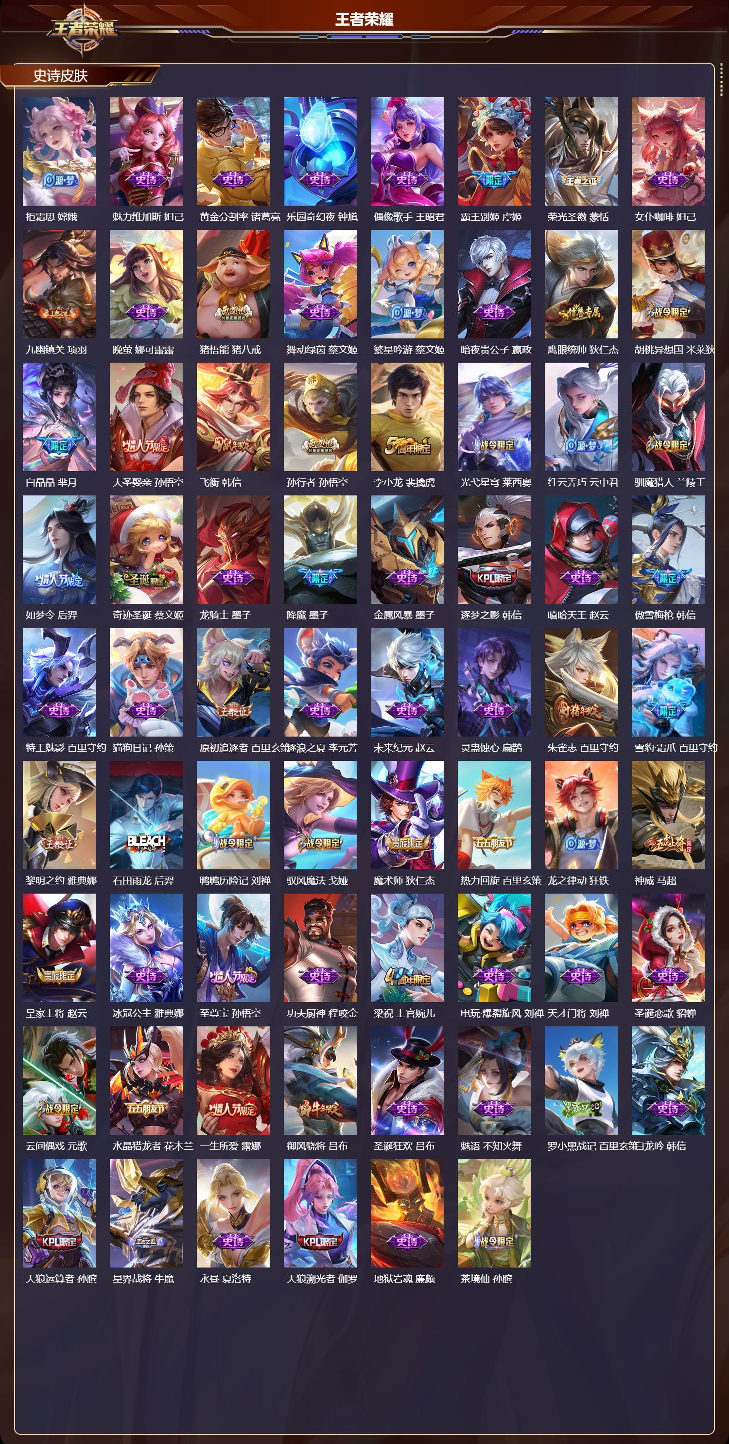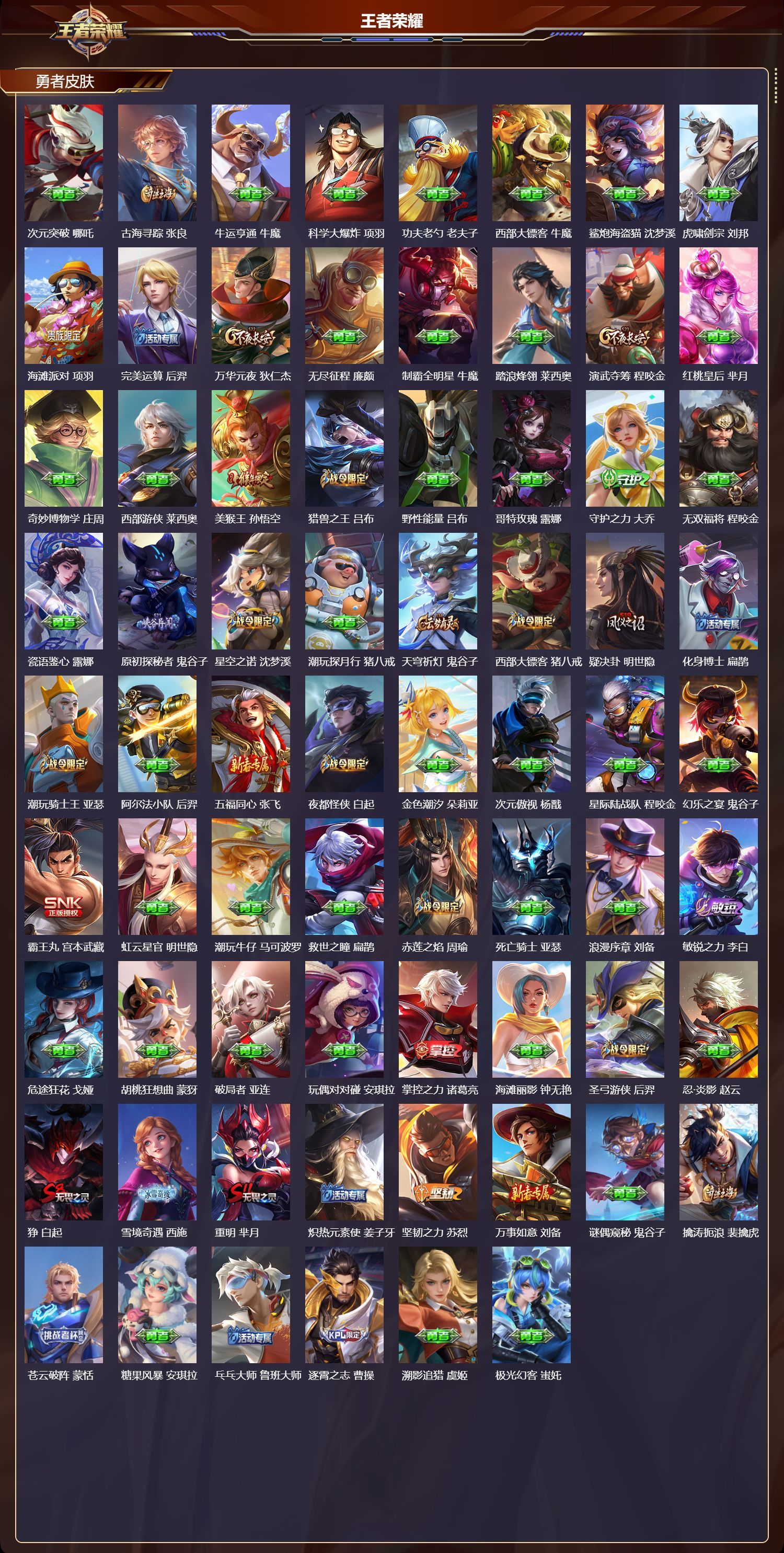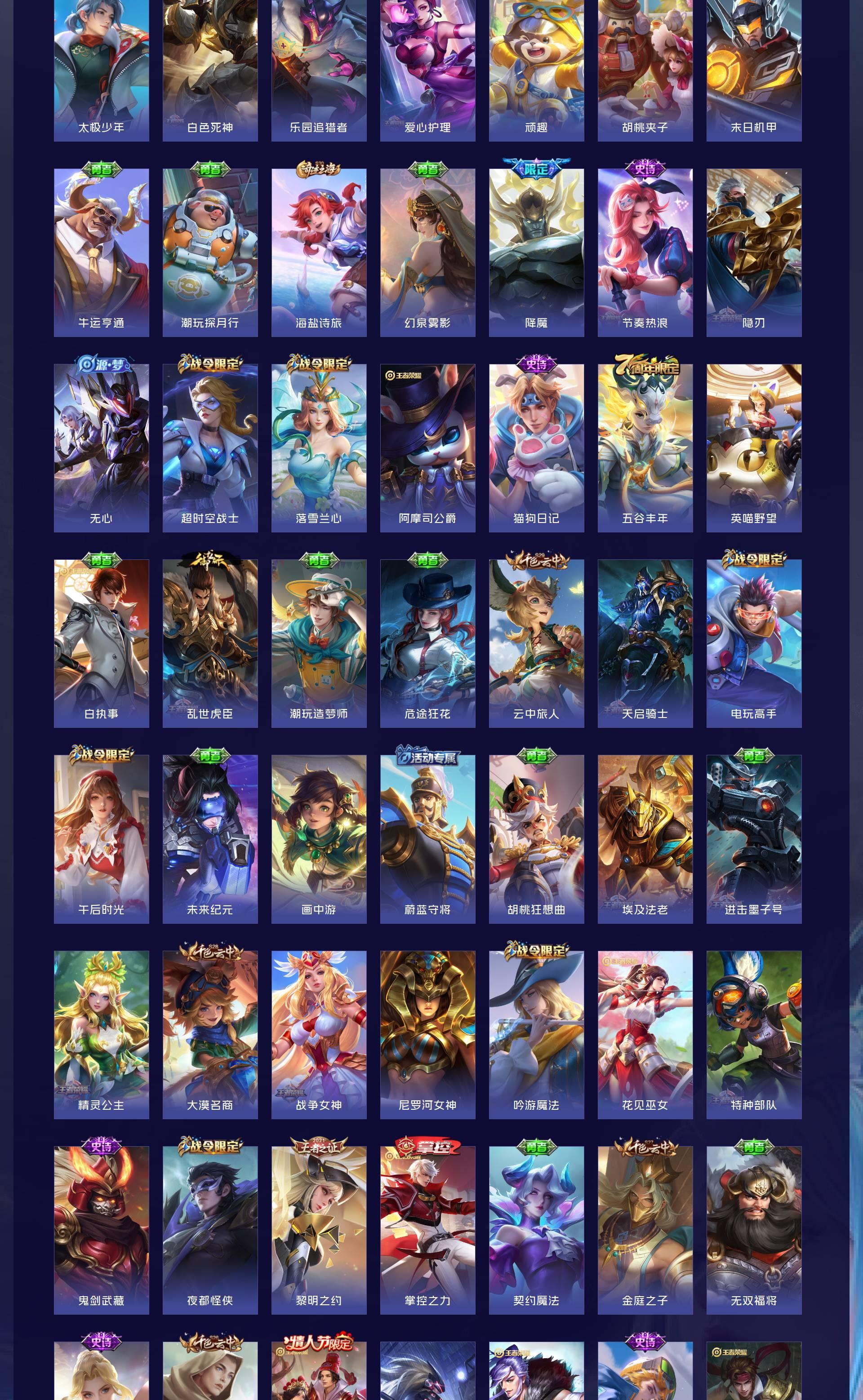 V9 皮肤439 英雄129 最强王者 荣耀典藏2 无双皮肤1 珍品传说2 传说30 其他皮肤408