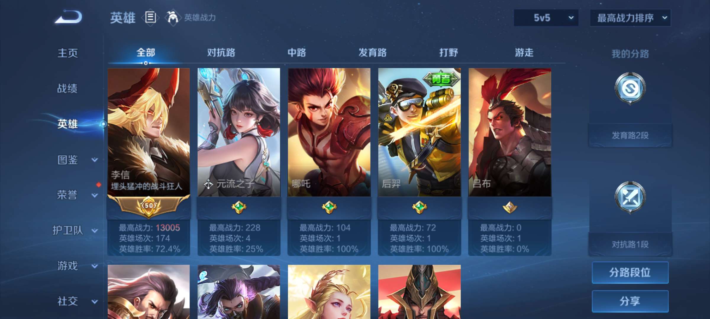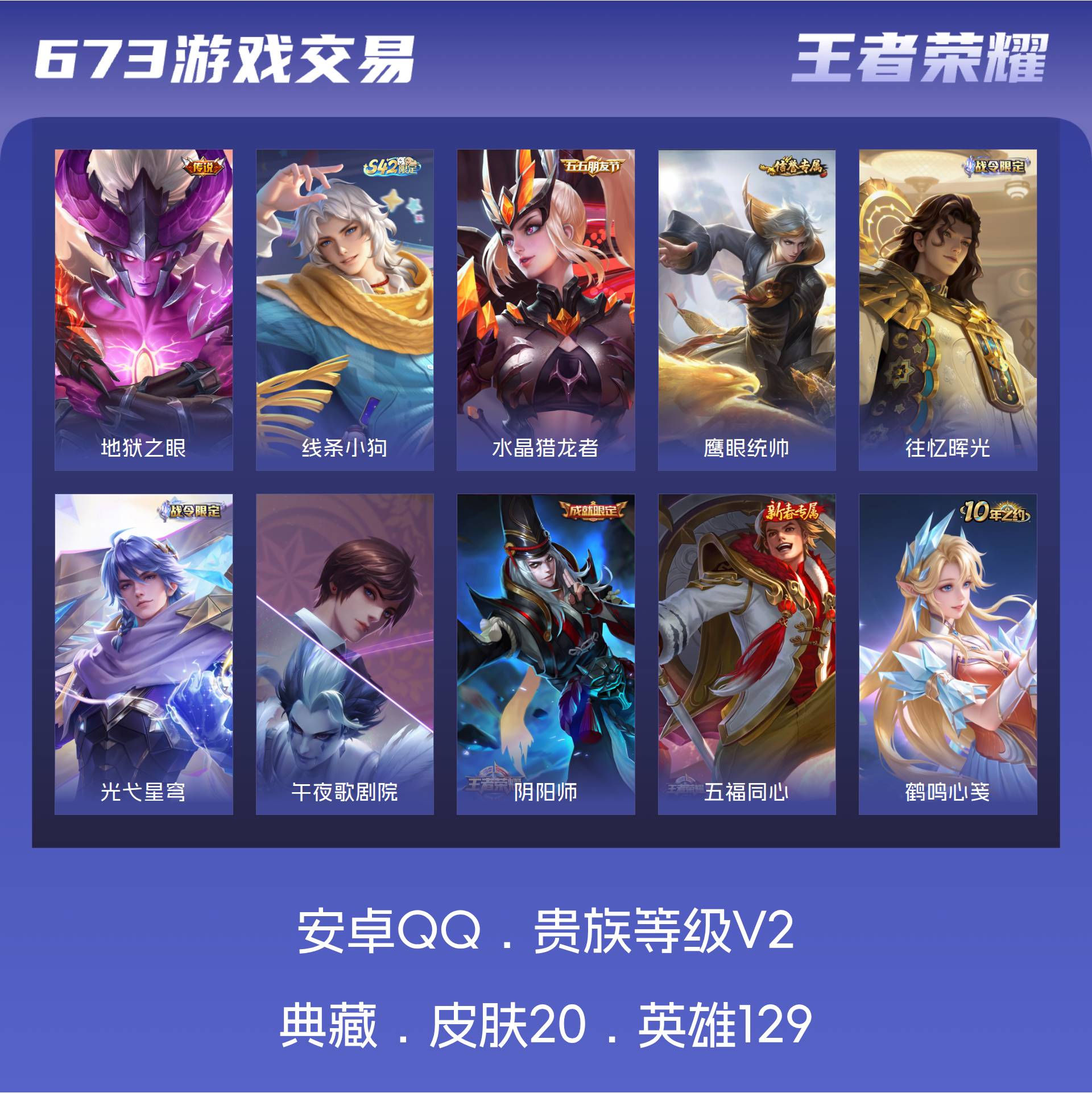 V2 皮肤20 英雄129 至尊星耀 传说1 其他皮肤21