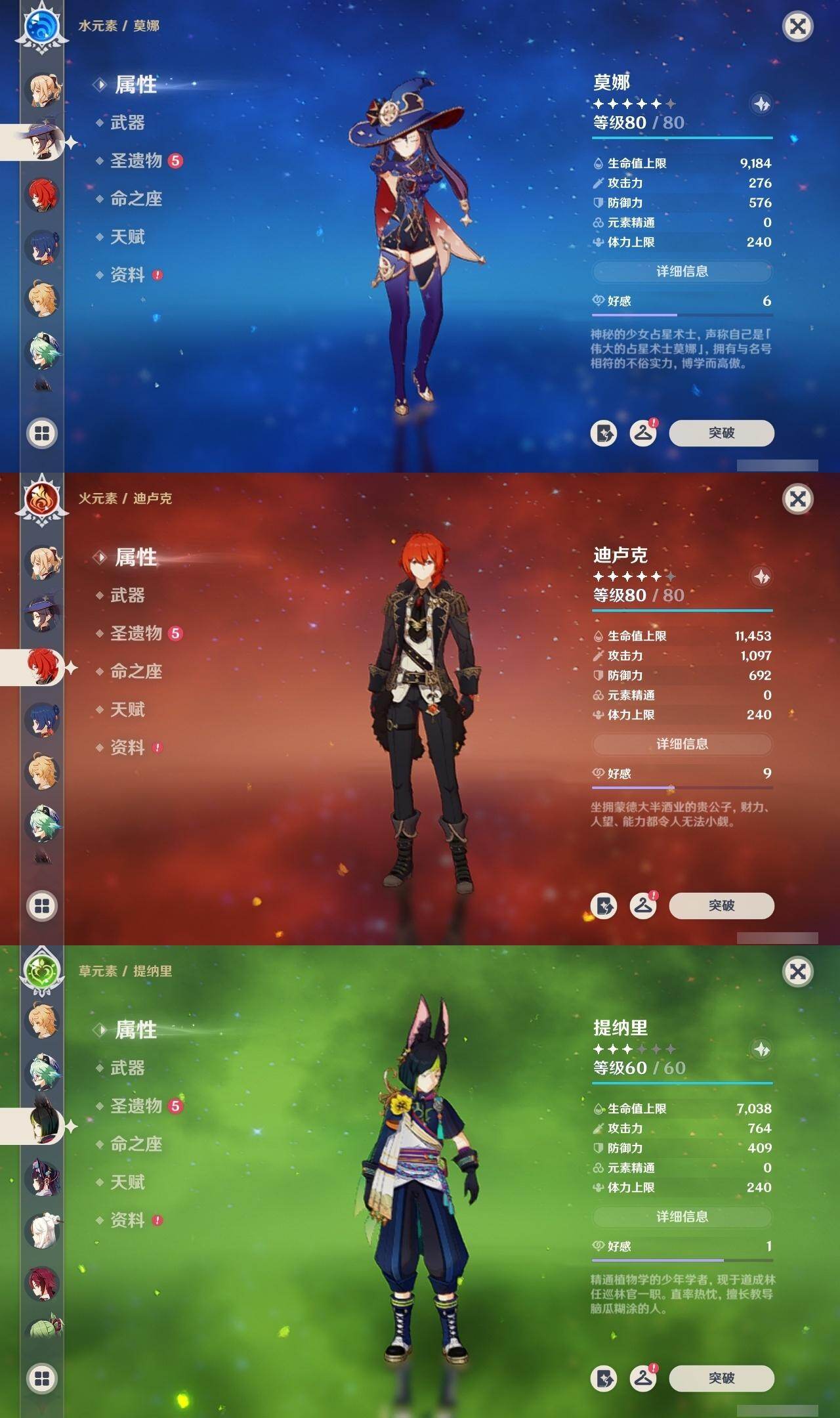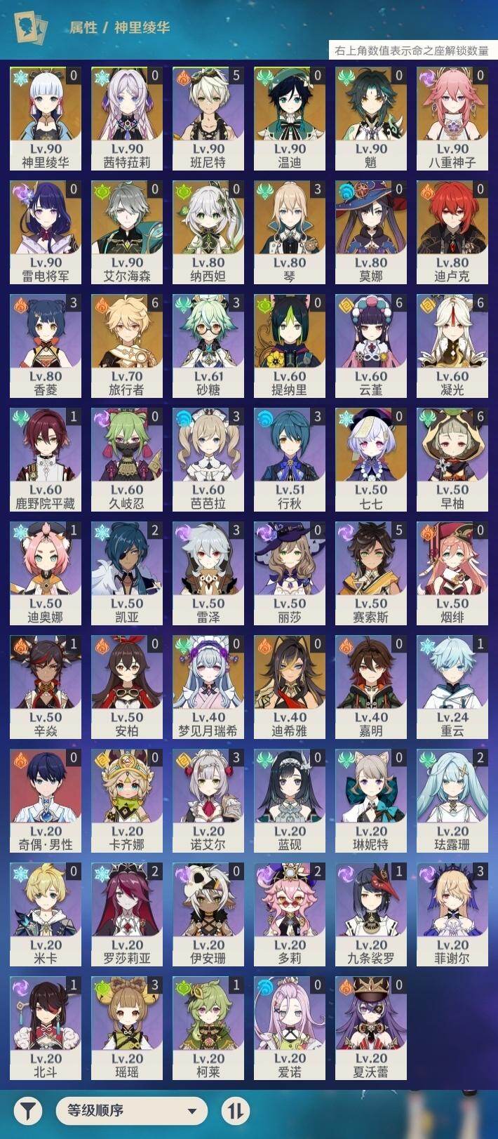 56级/22黄/男主/15个五星角色/4个五星武器
