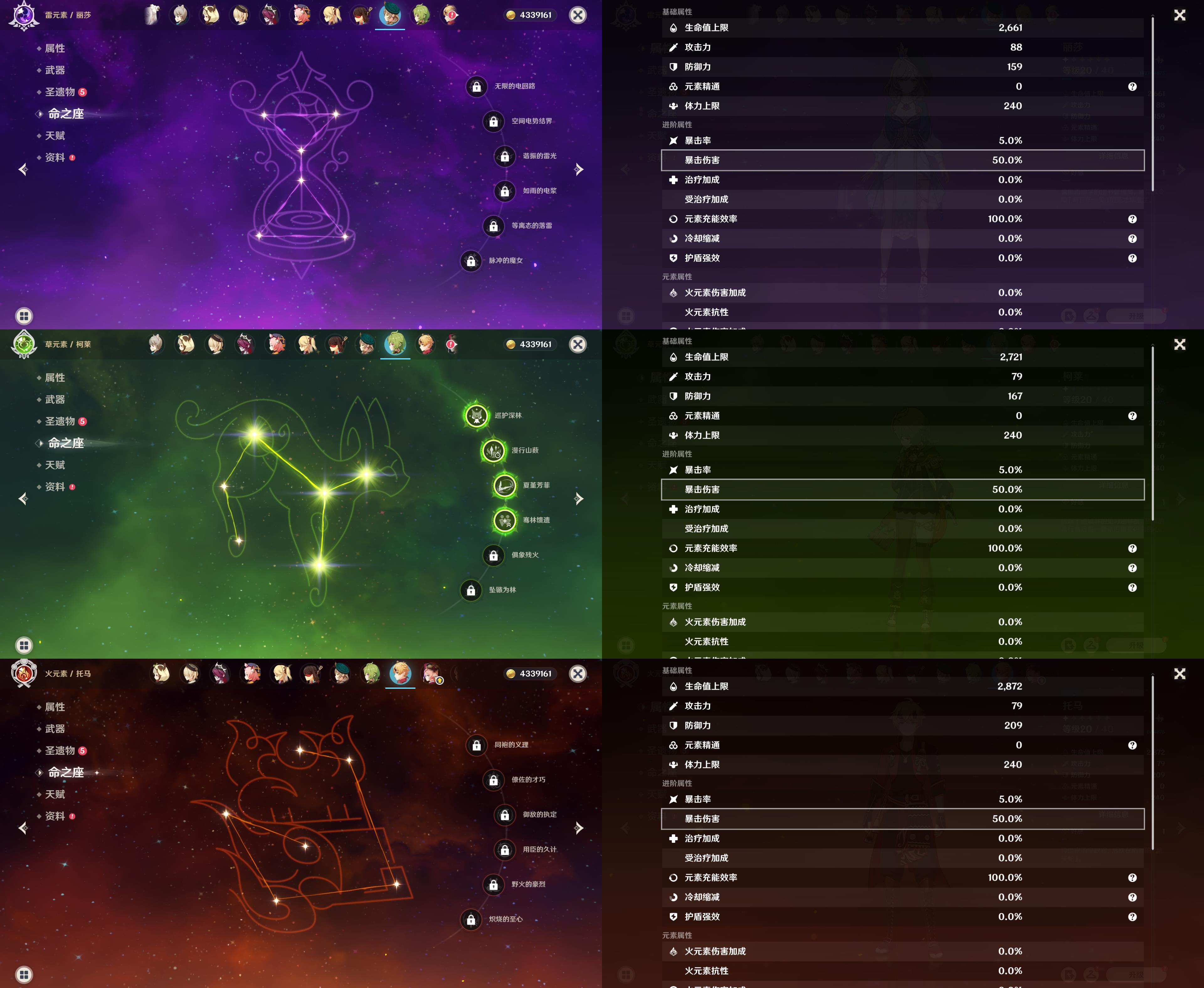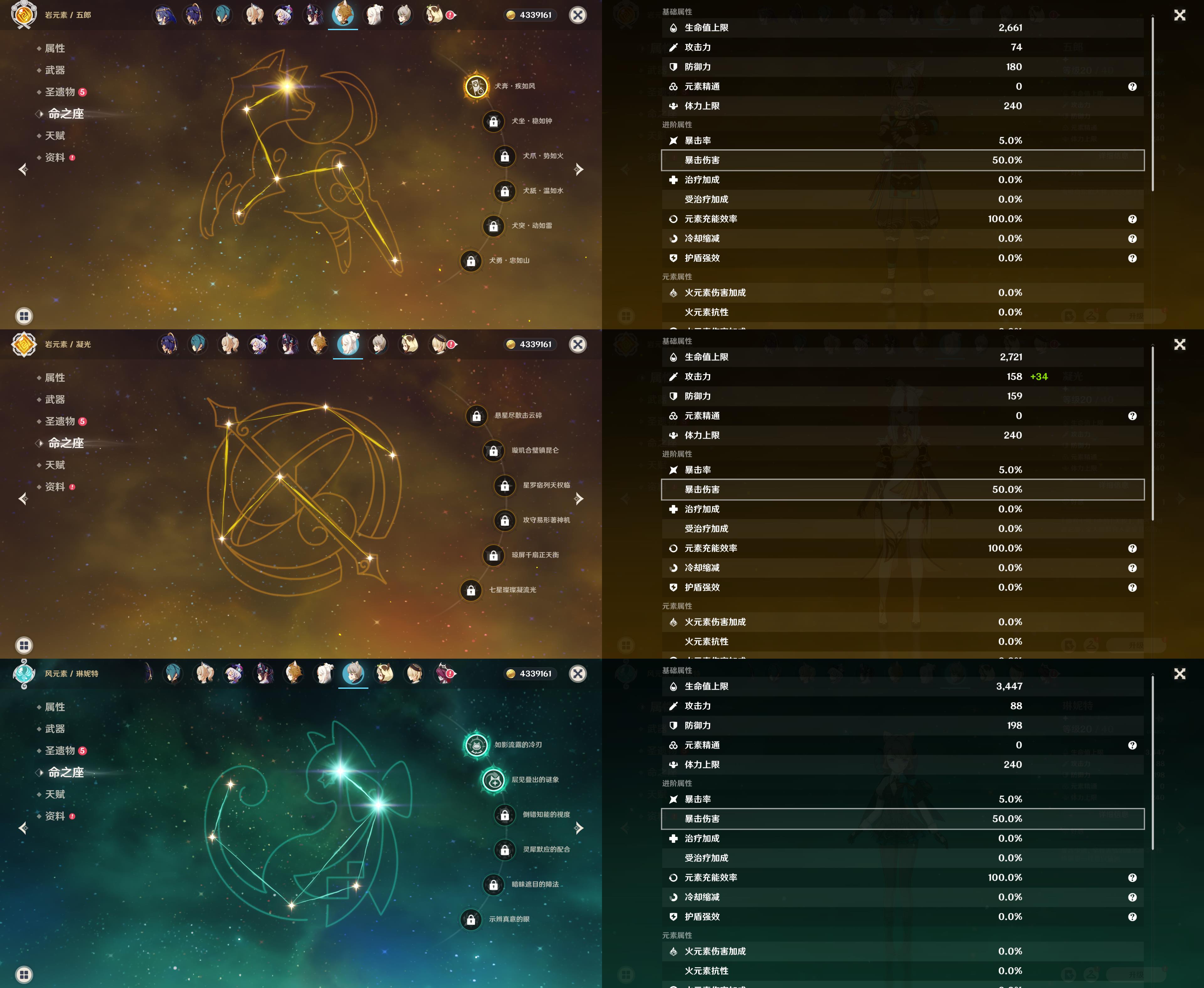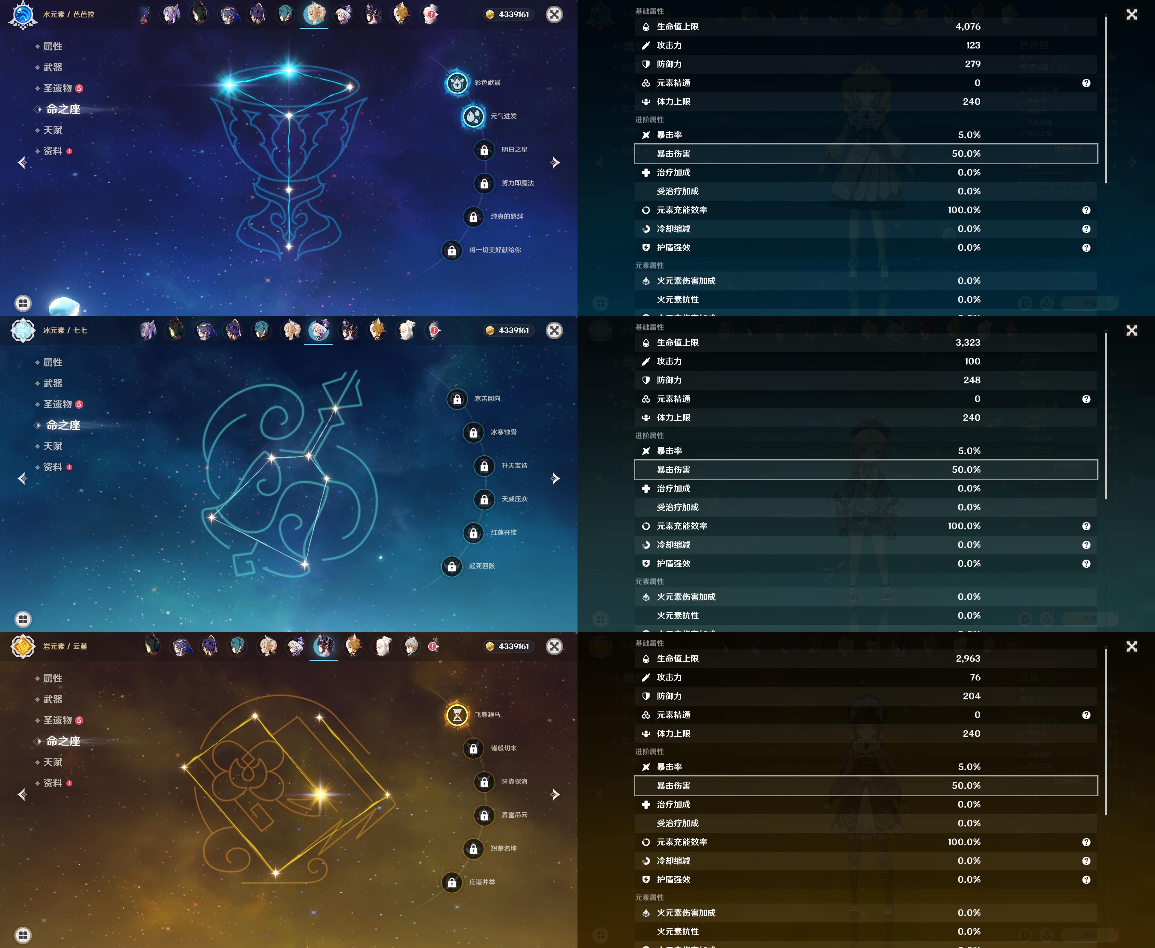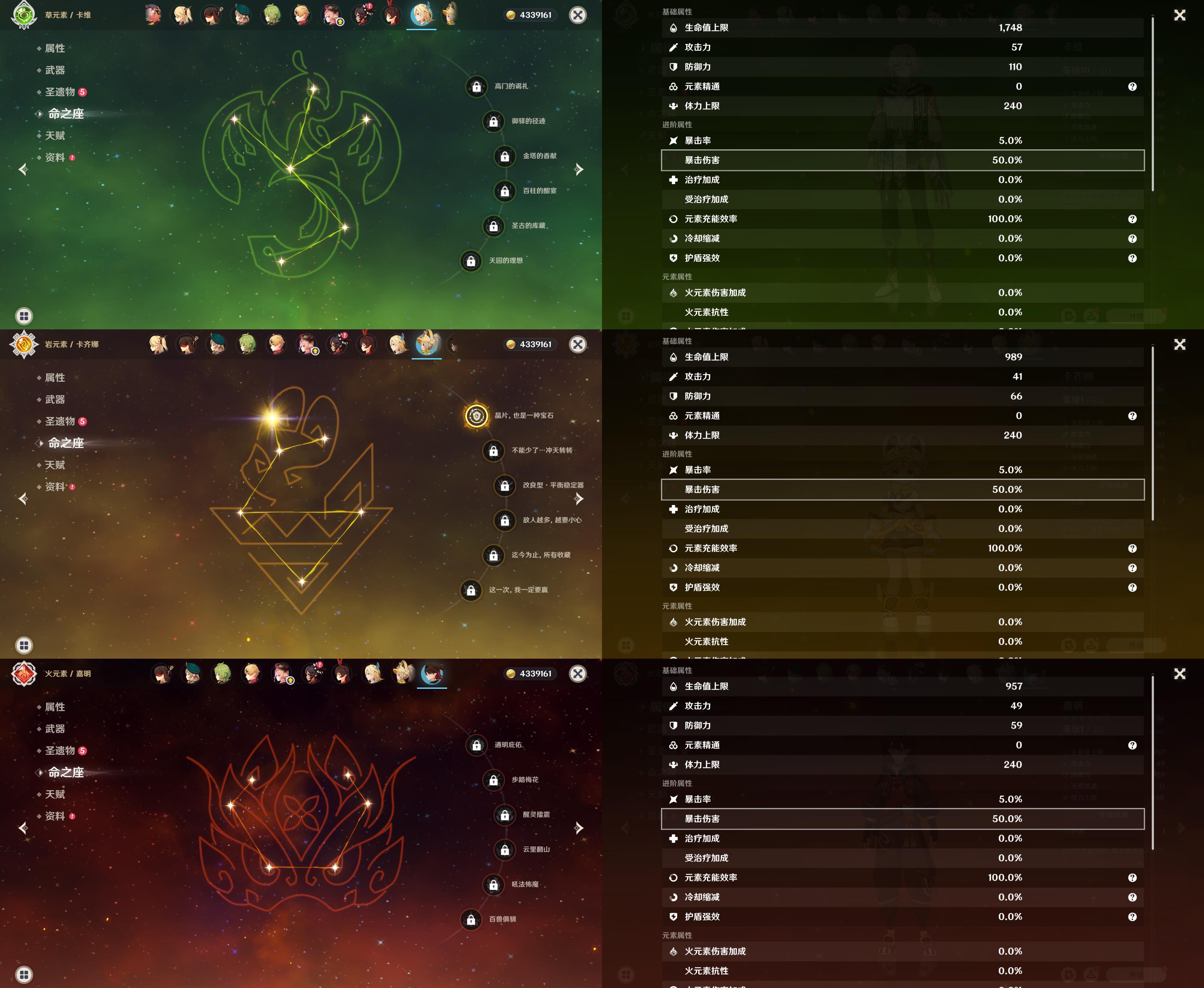 57级/22黄/女主/15个五星角色/4个五星武器/