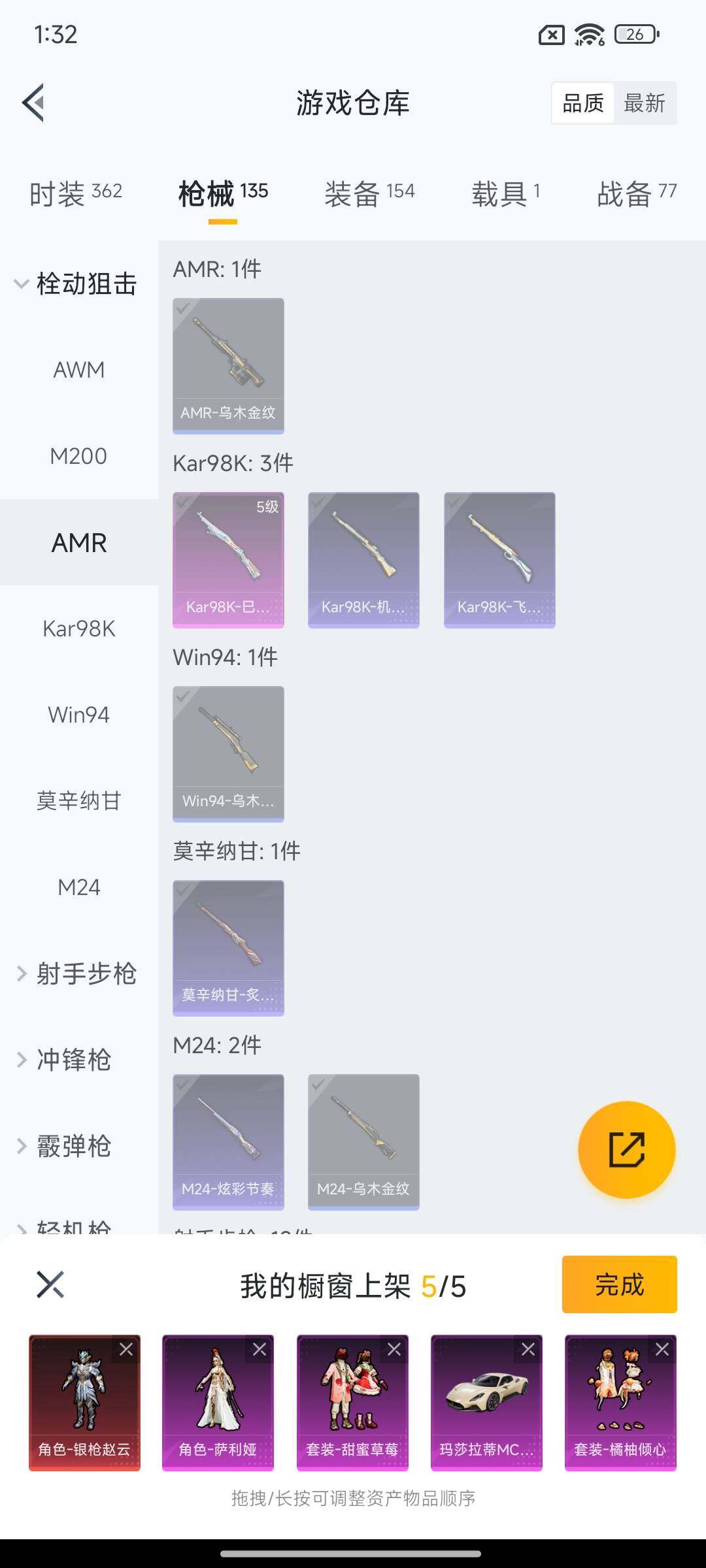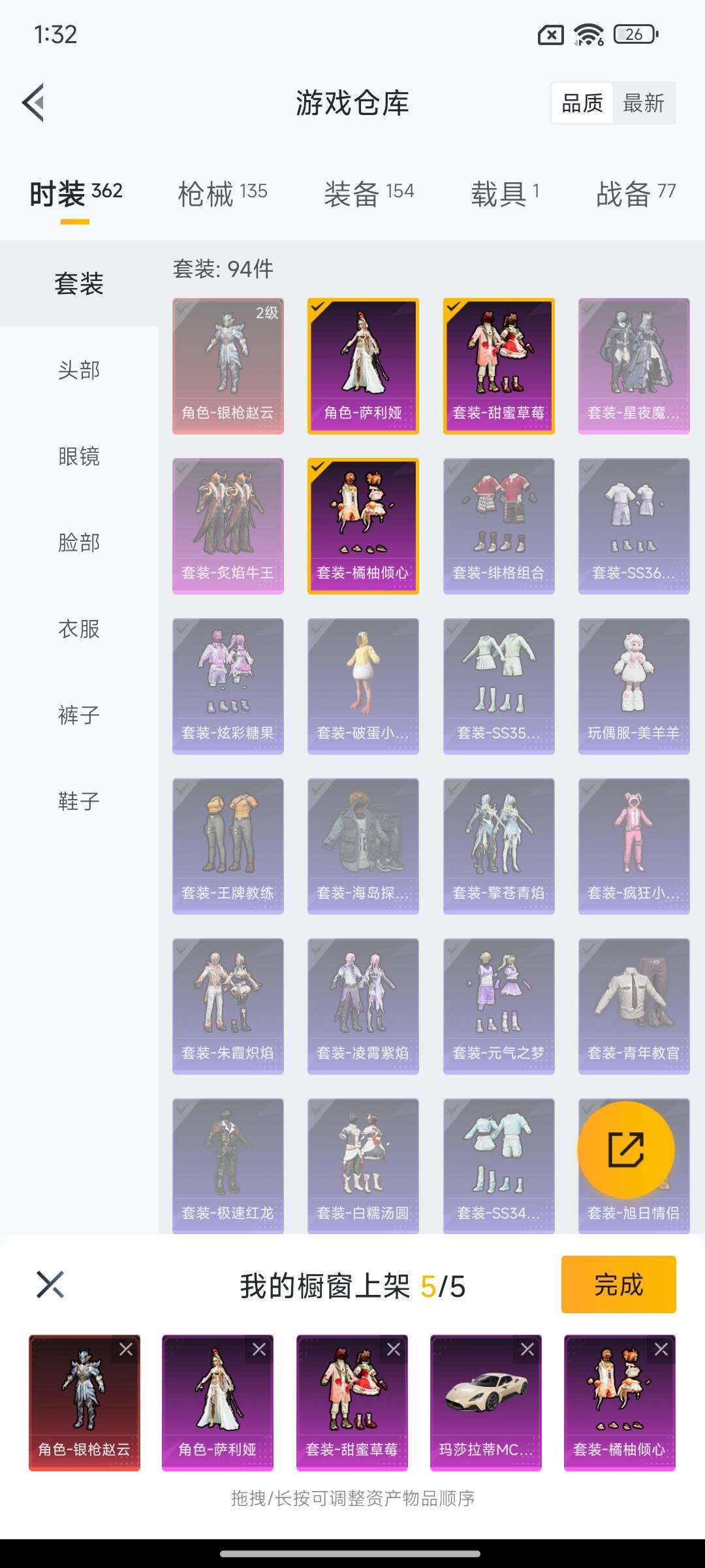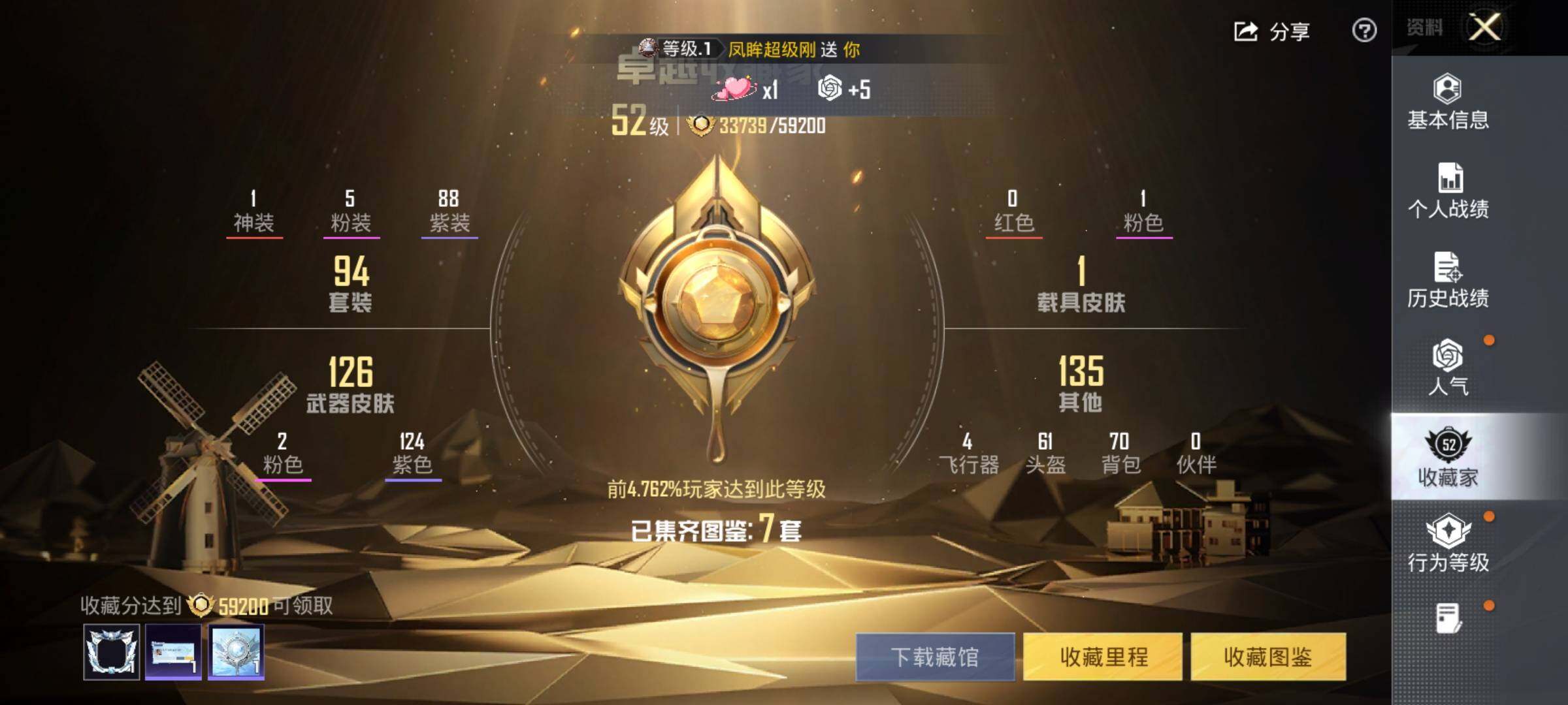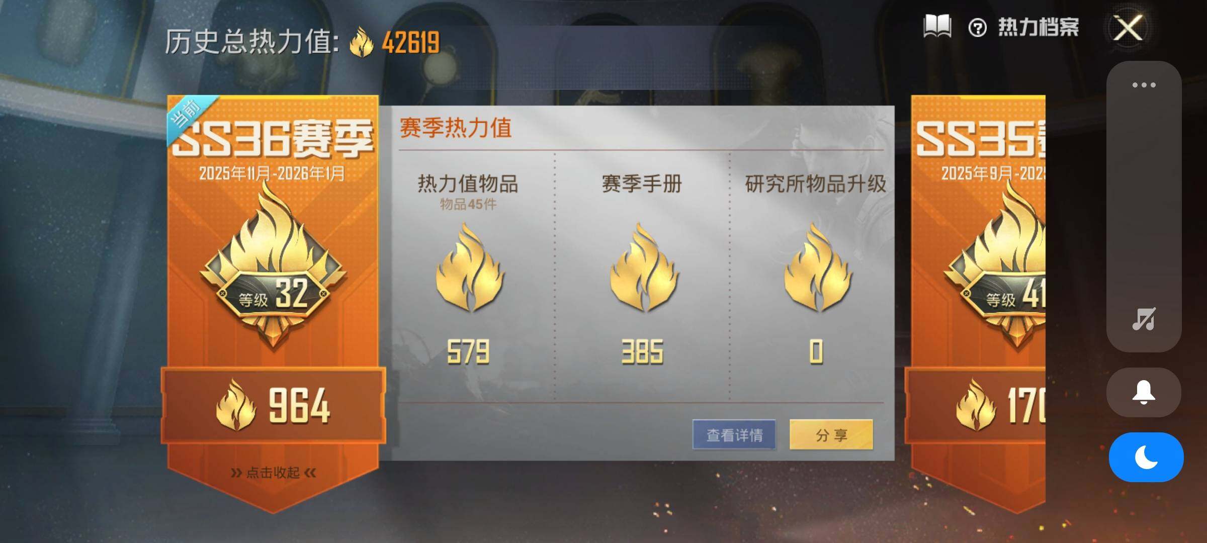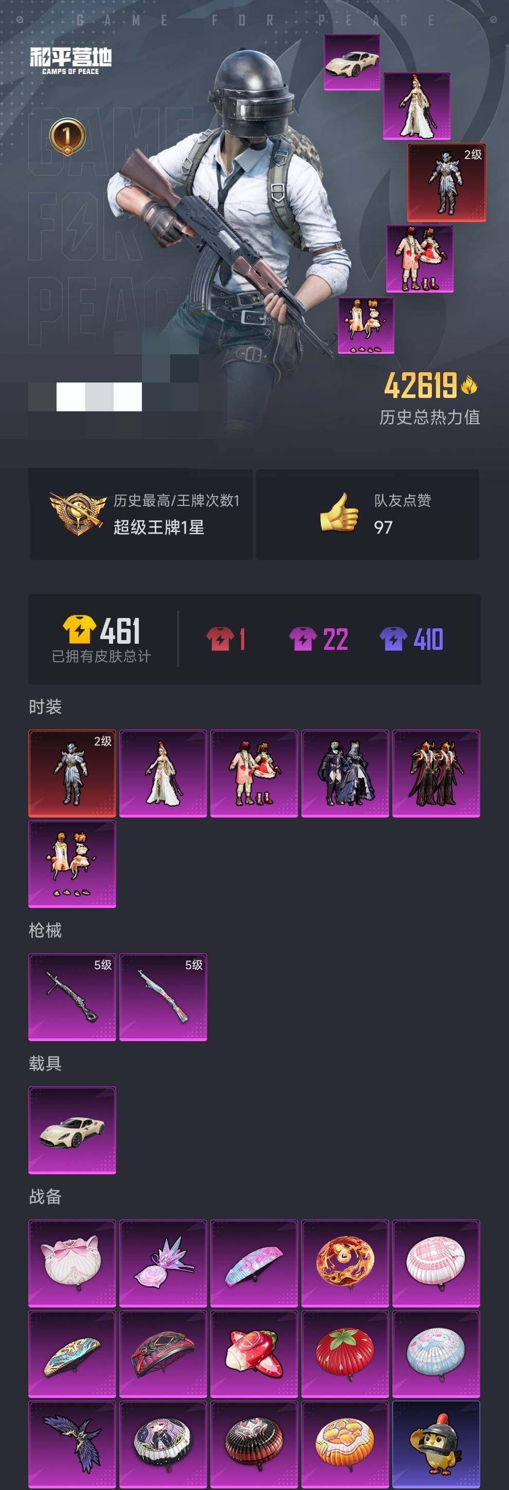 94套装/枪械2/装备154/载具1/战备77/王牌印记1/热力值42619/