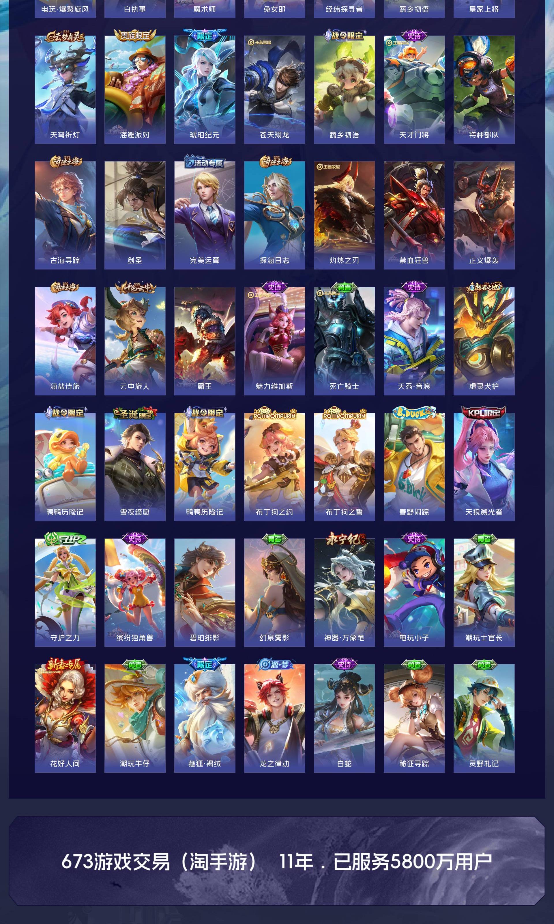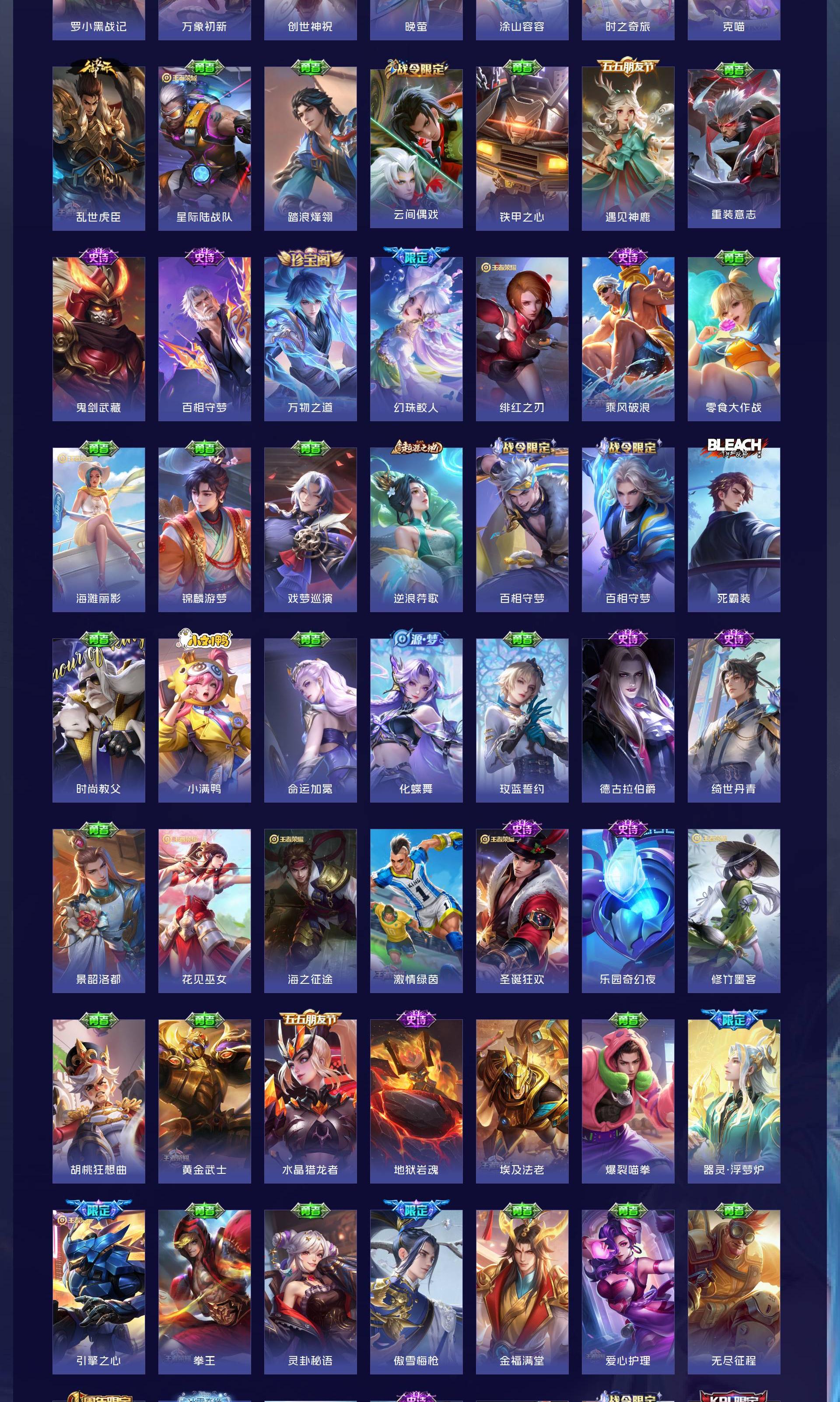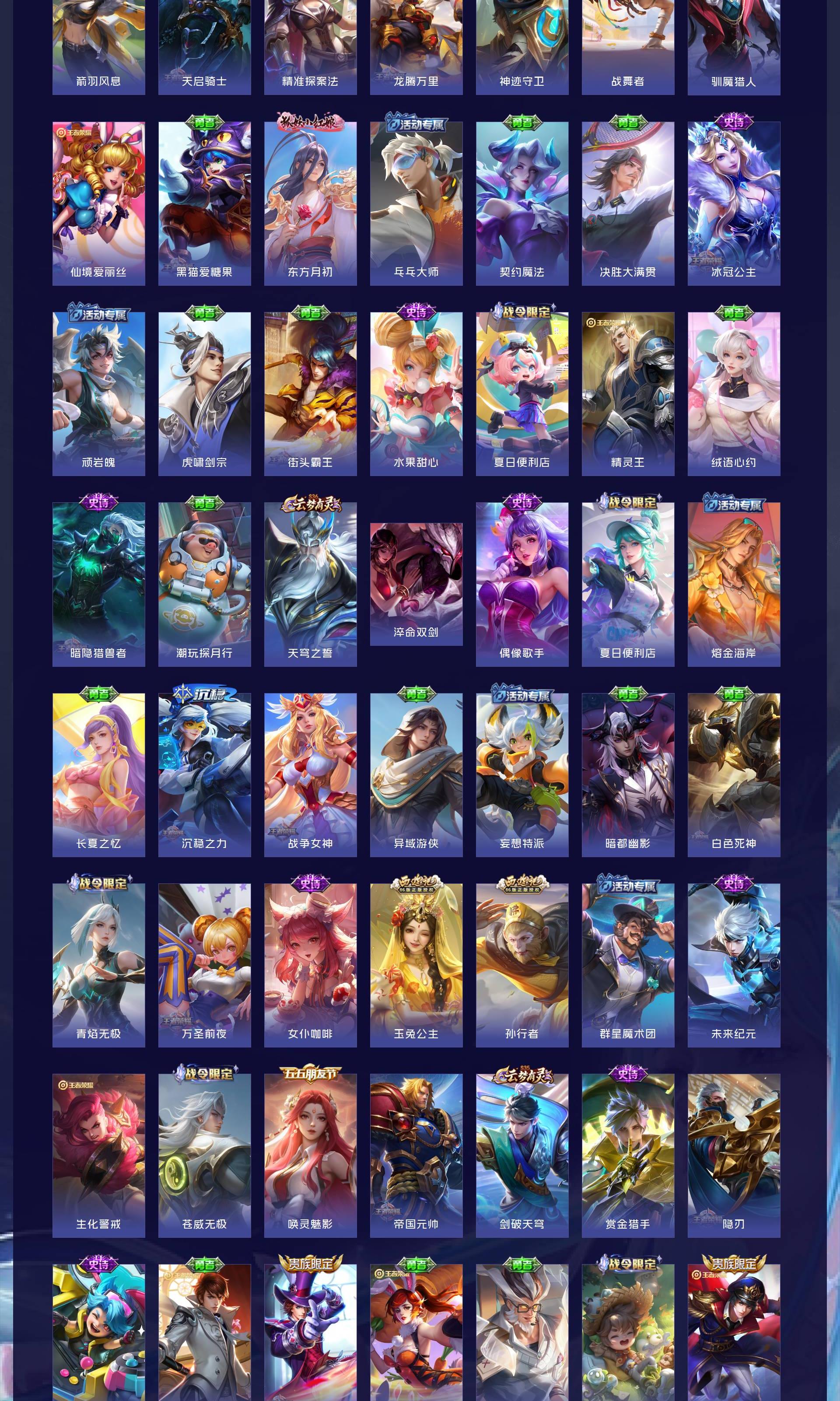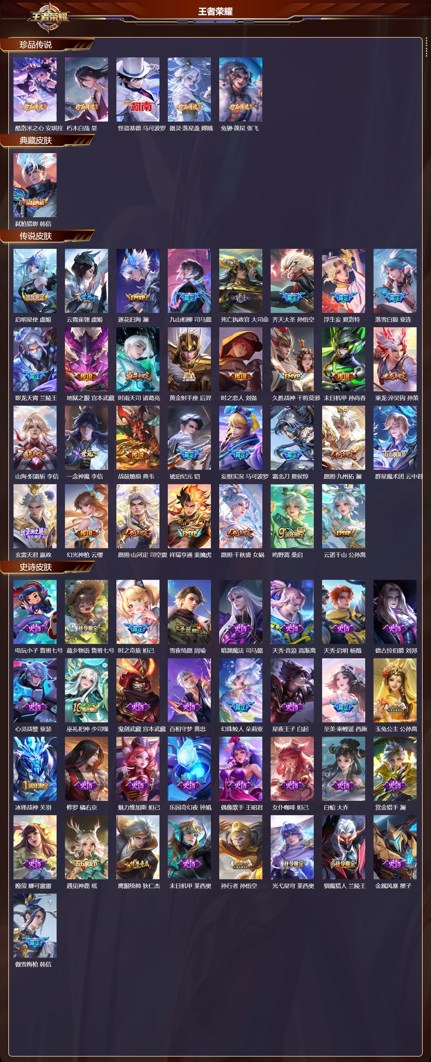 V9 皮肤263 英雄129 至尊星耀 荣耀典藏1 珍品传说5 传说30 其他皮肤231