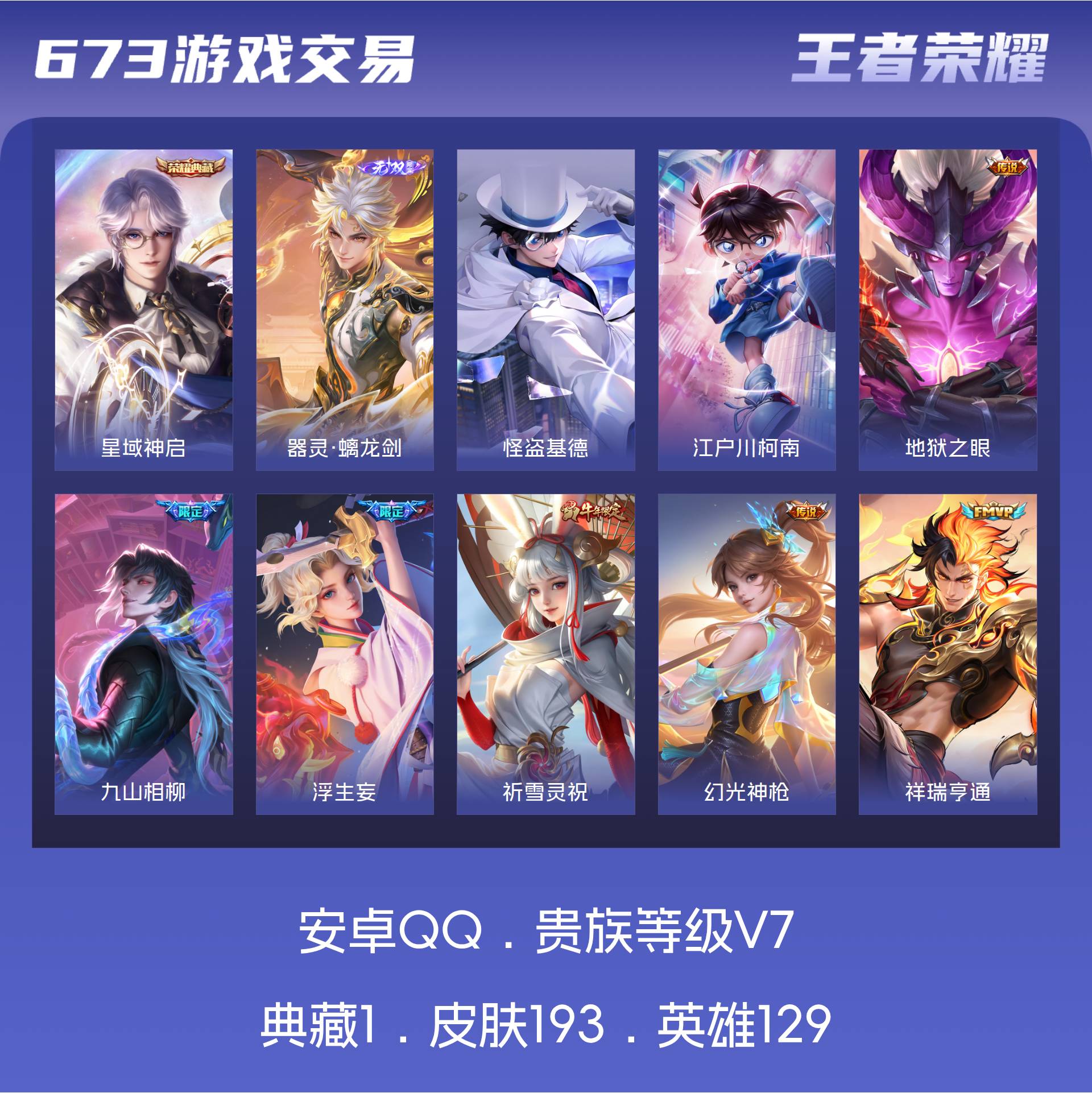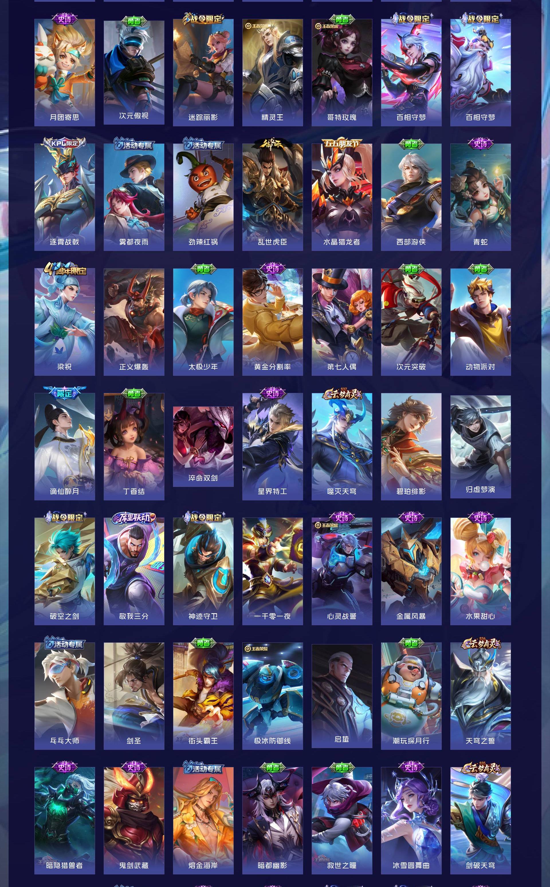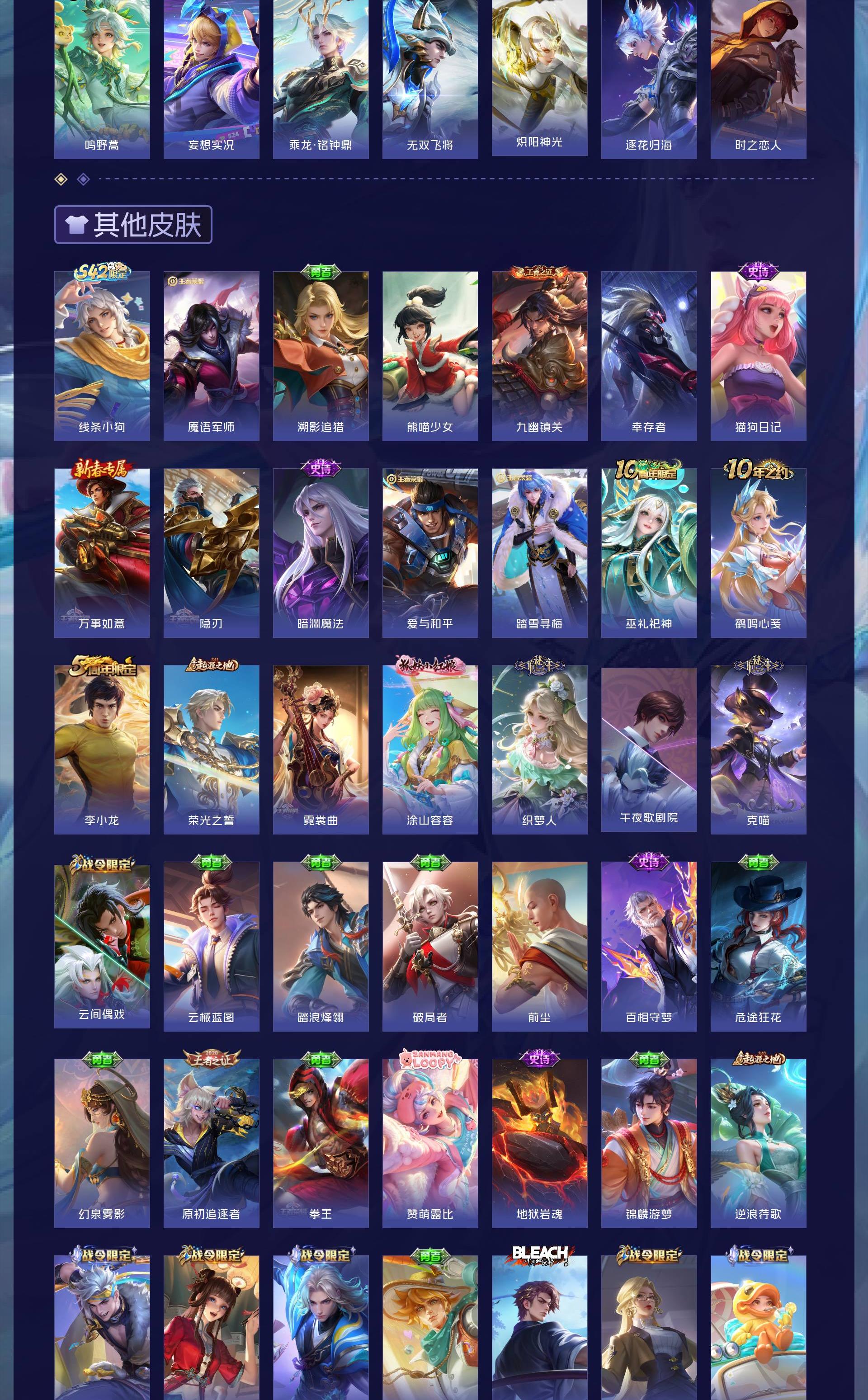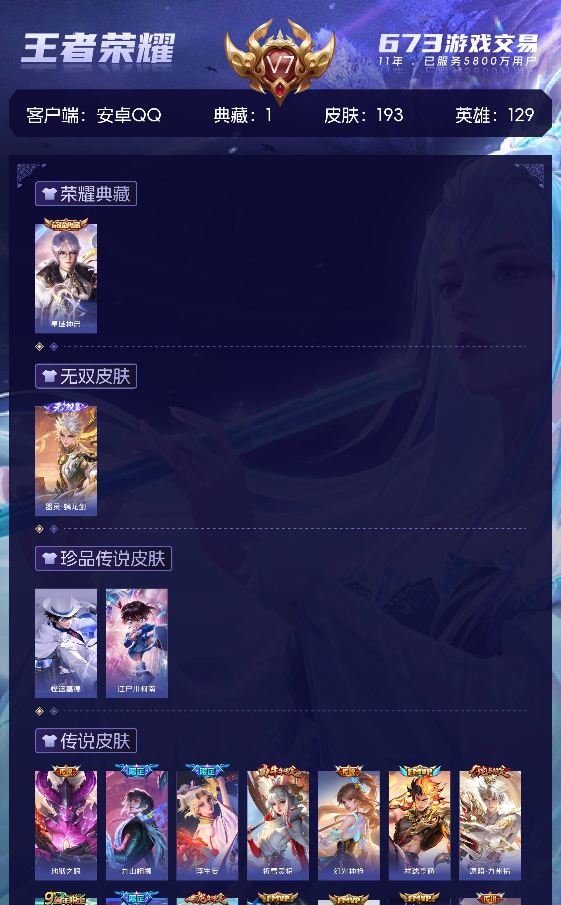V7 皮肤193 英雄129 永恒钻石 荣耀典藏1 无双皮肤1 珍品传说2 传说14 其他皮肤181