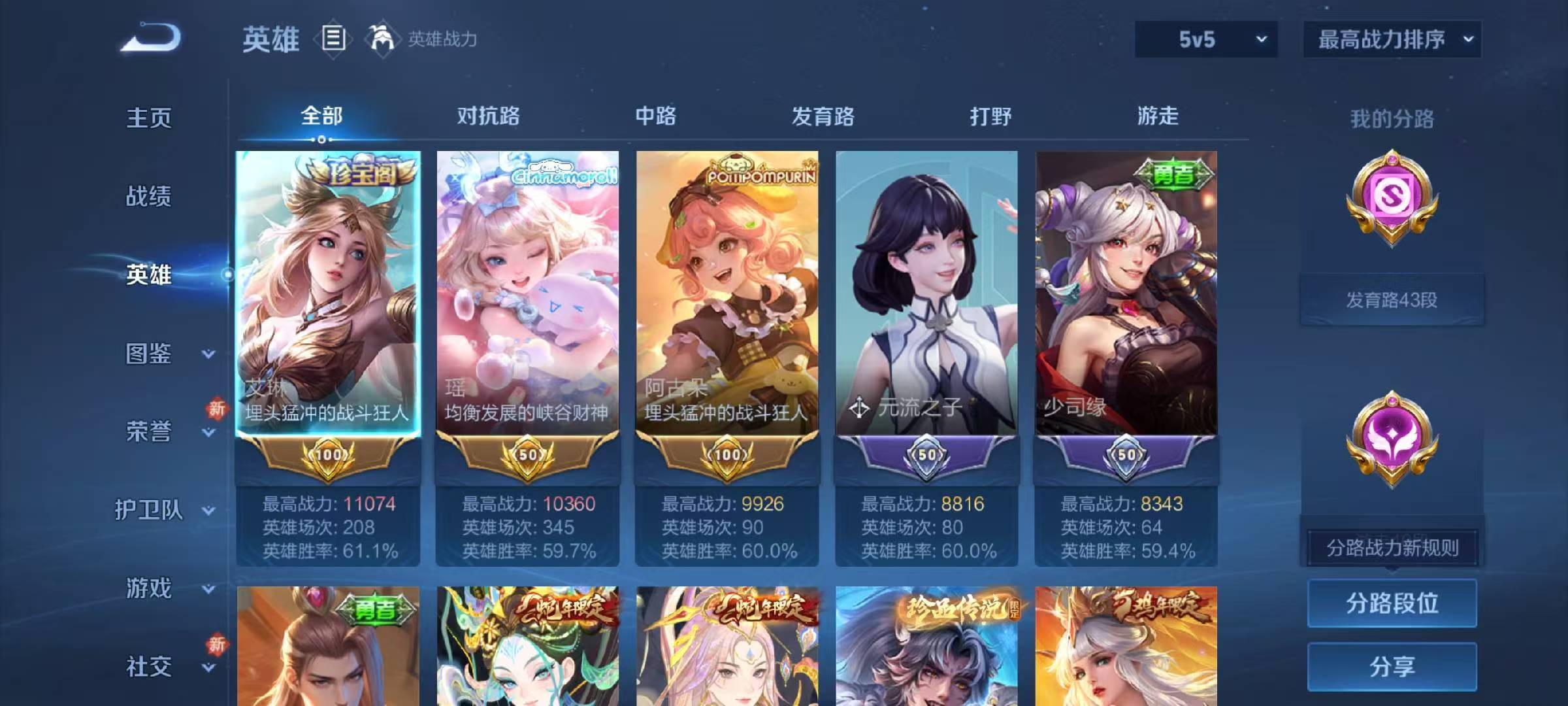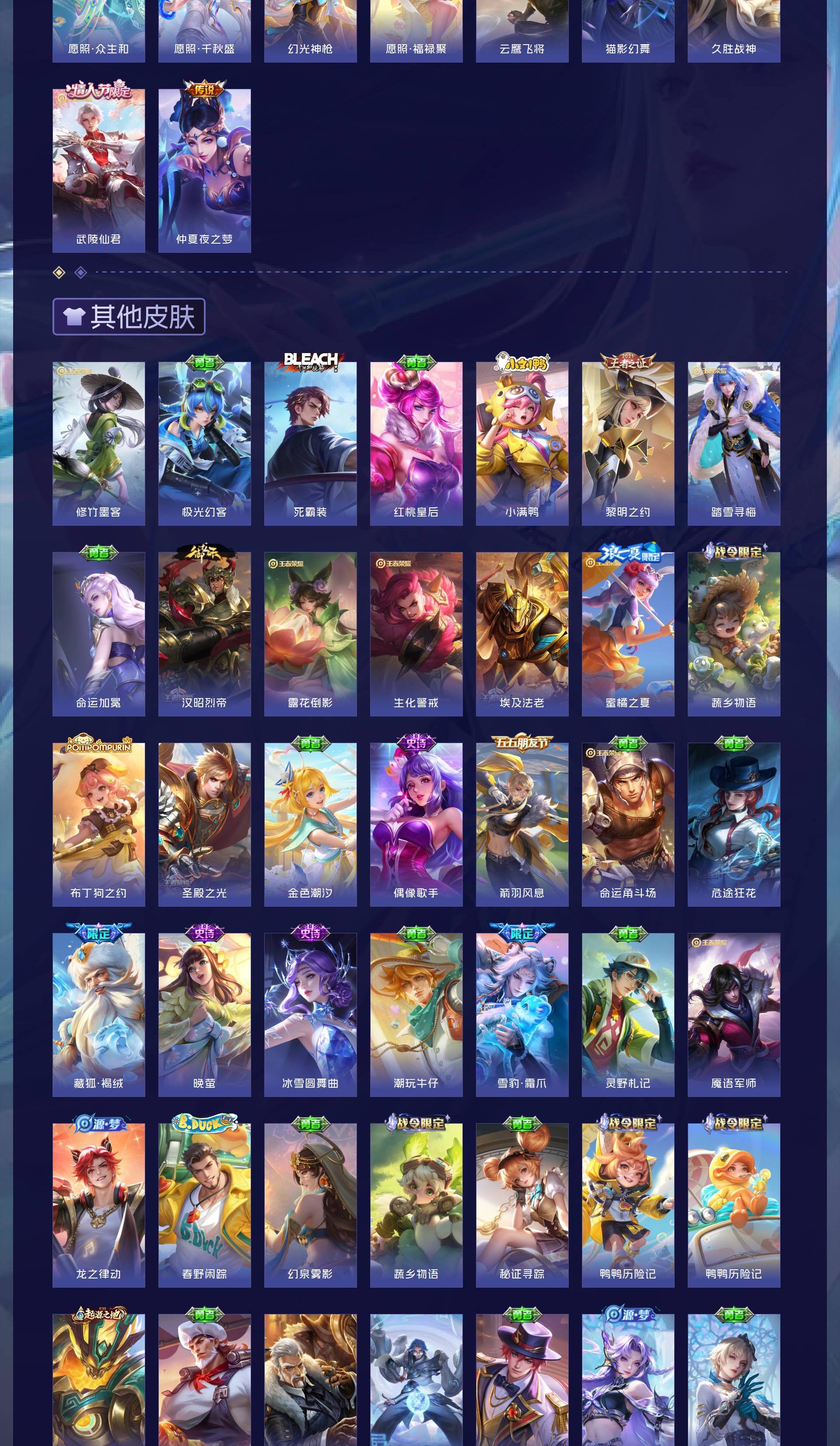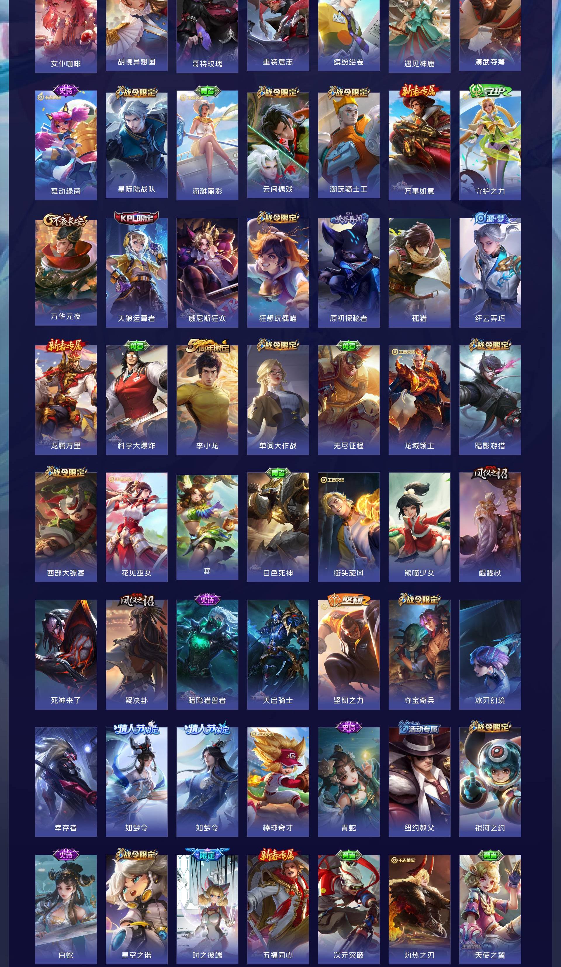 V8 皮肤262 英雄129 永恒钻石 荣耀典藏1 无双皮肤2 珍品传说4 传说16 其他皮肤245