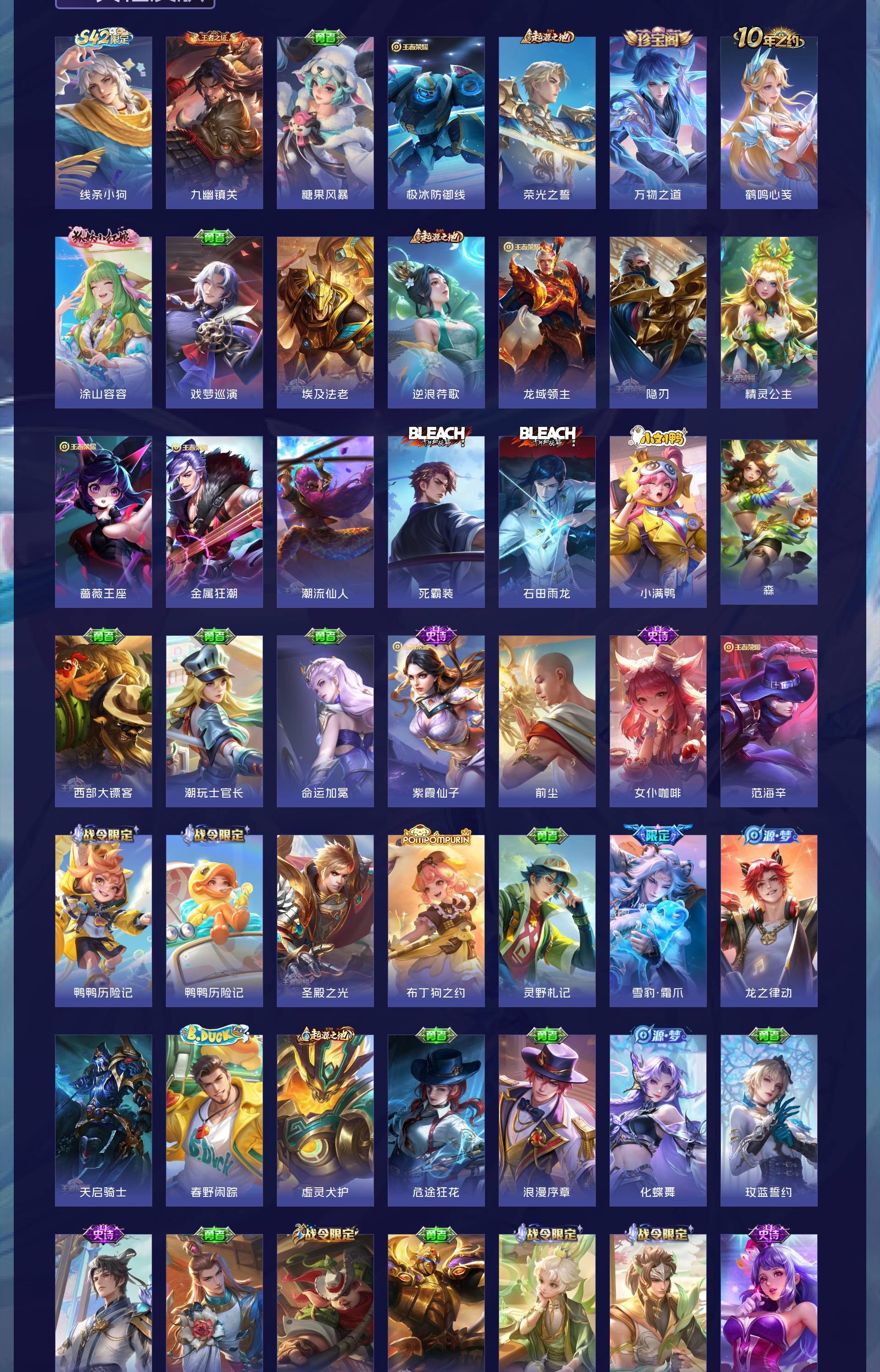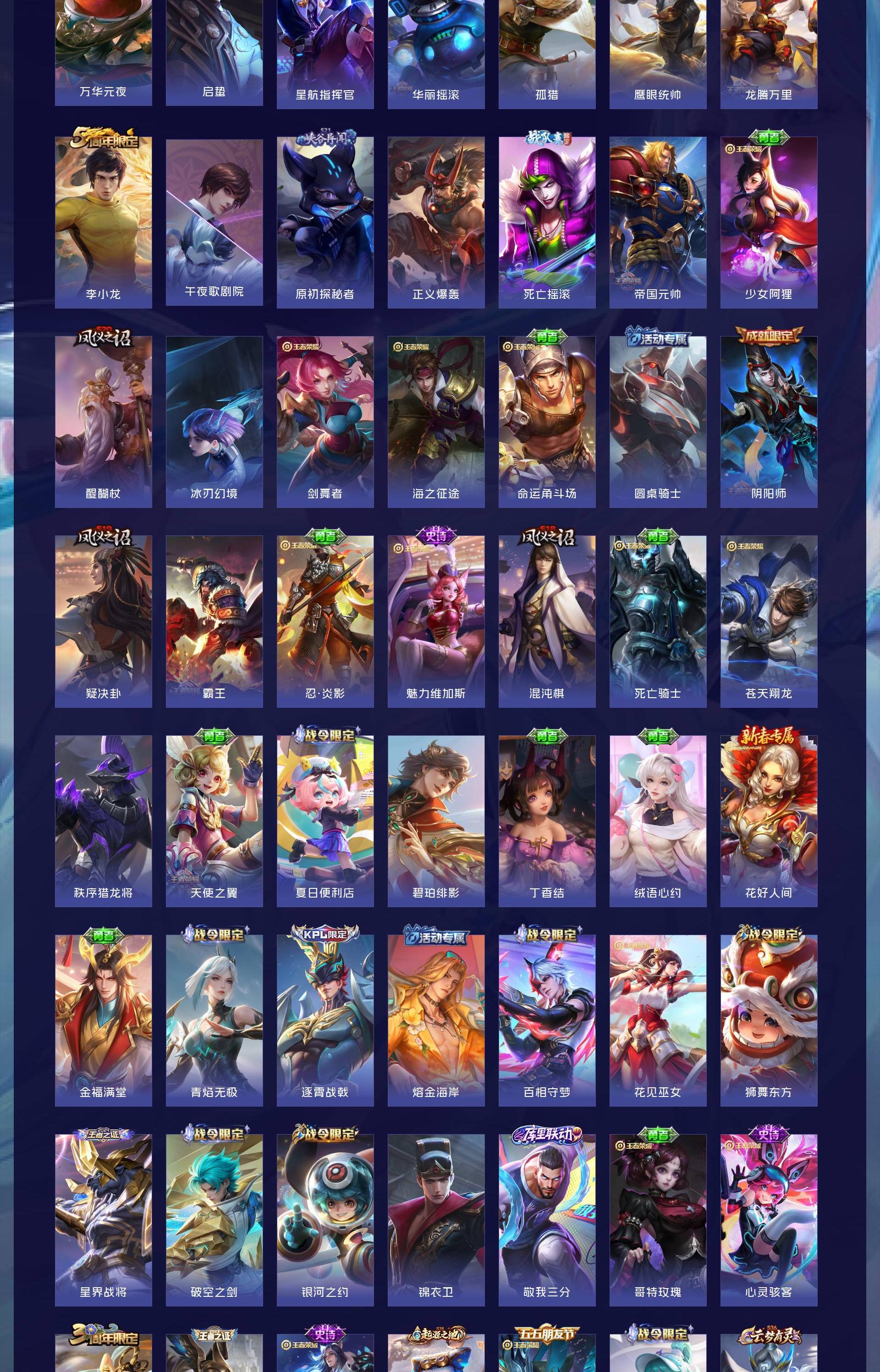V8 皮肤284 英雄129 至尊星耀 荣耀典藏2 珍品传说4 传说10 其他皮肤274