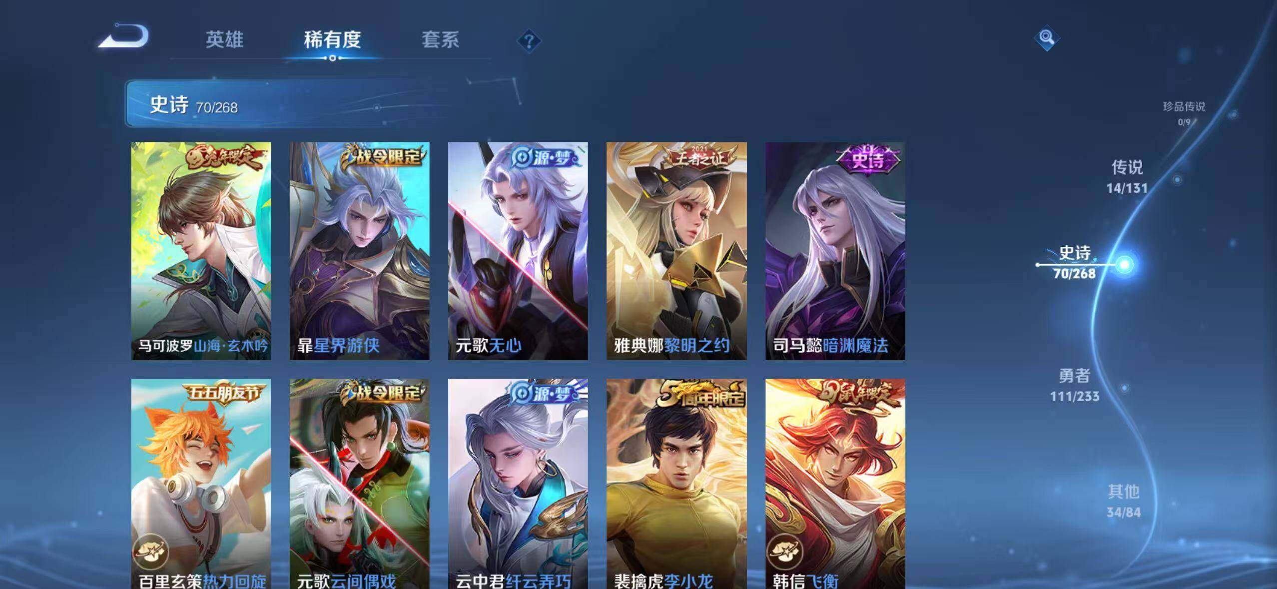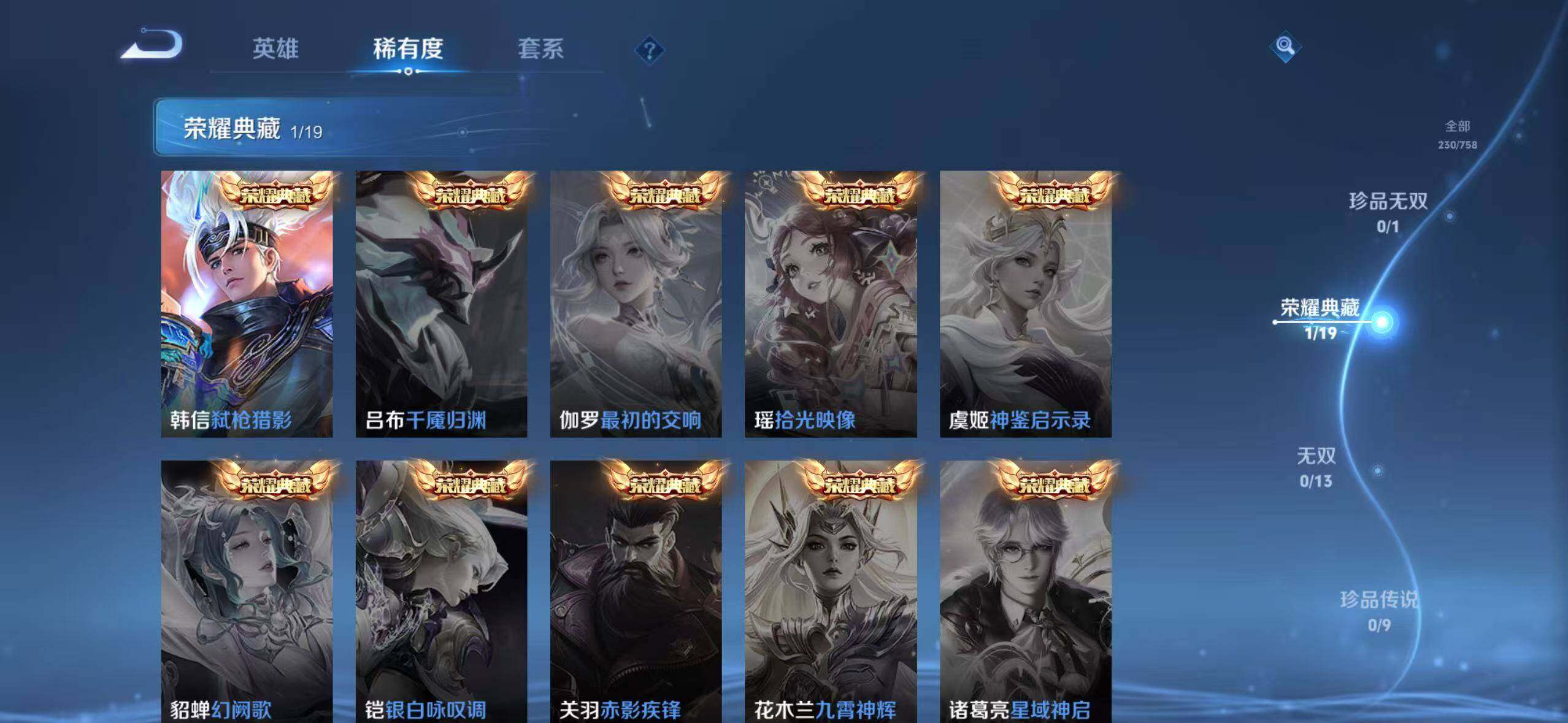 【韩信典藏 230皮14传说 至尊宝】苹果Q-V7-至尊星耀V段位-127英雄-230皮肤-1典藏皮肤-14传说-70史诗