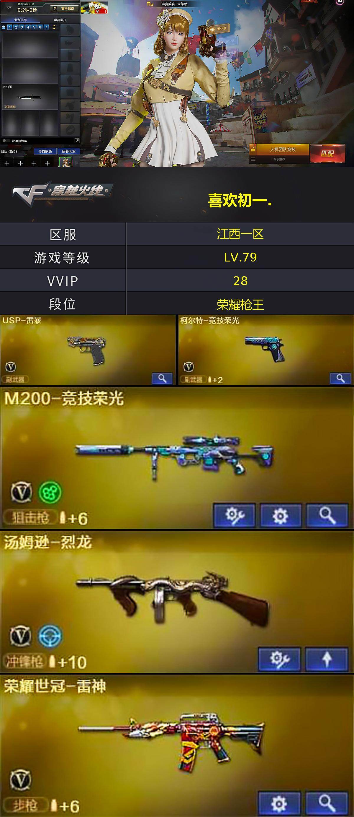 【热门武器】:M200-竞技荣光,荣耀世冠-雷神,汤姆逊-烈龙,USP-雷暴,沙鹰-修罗,荣耀世冠-龙啸