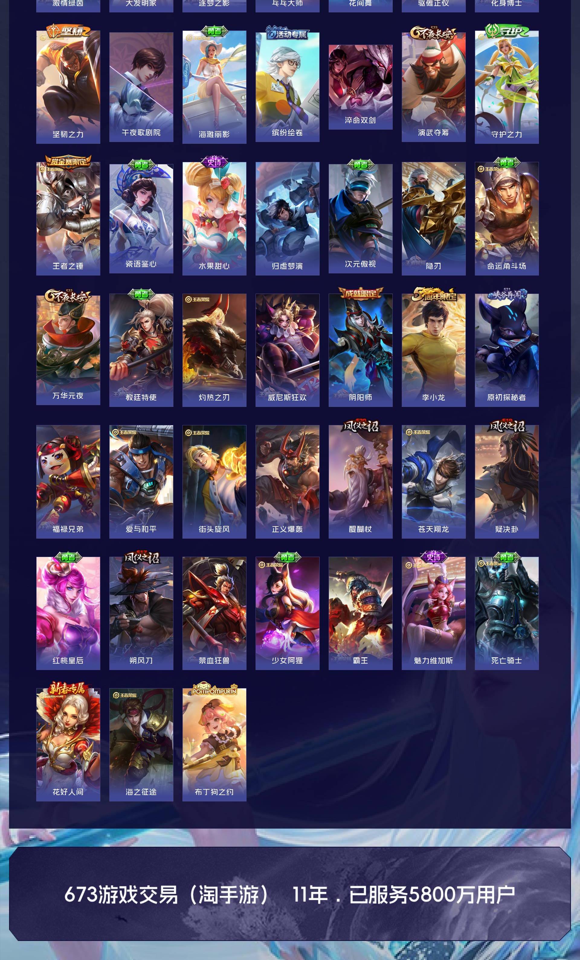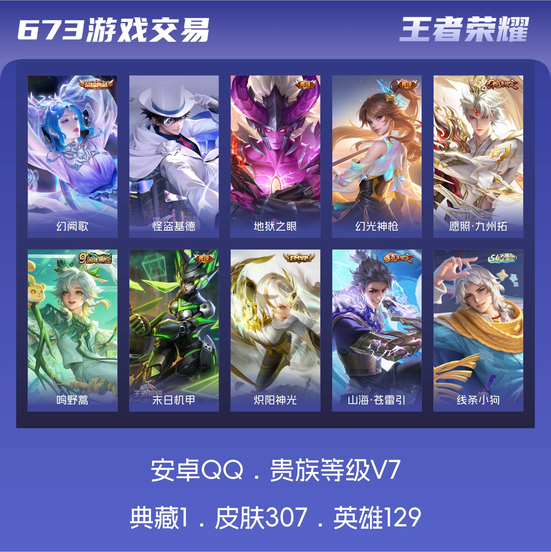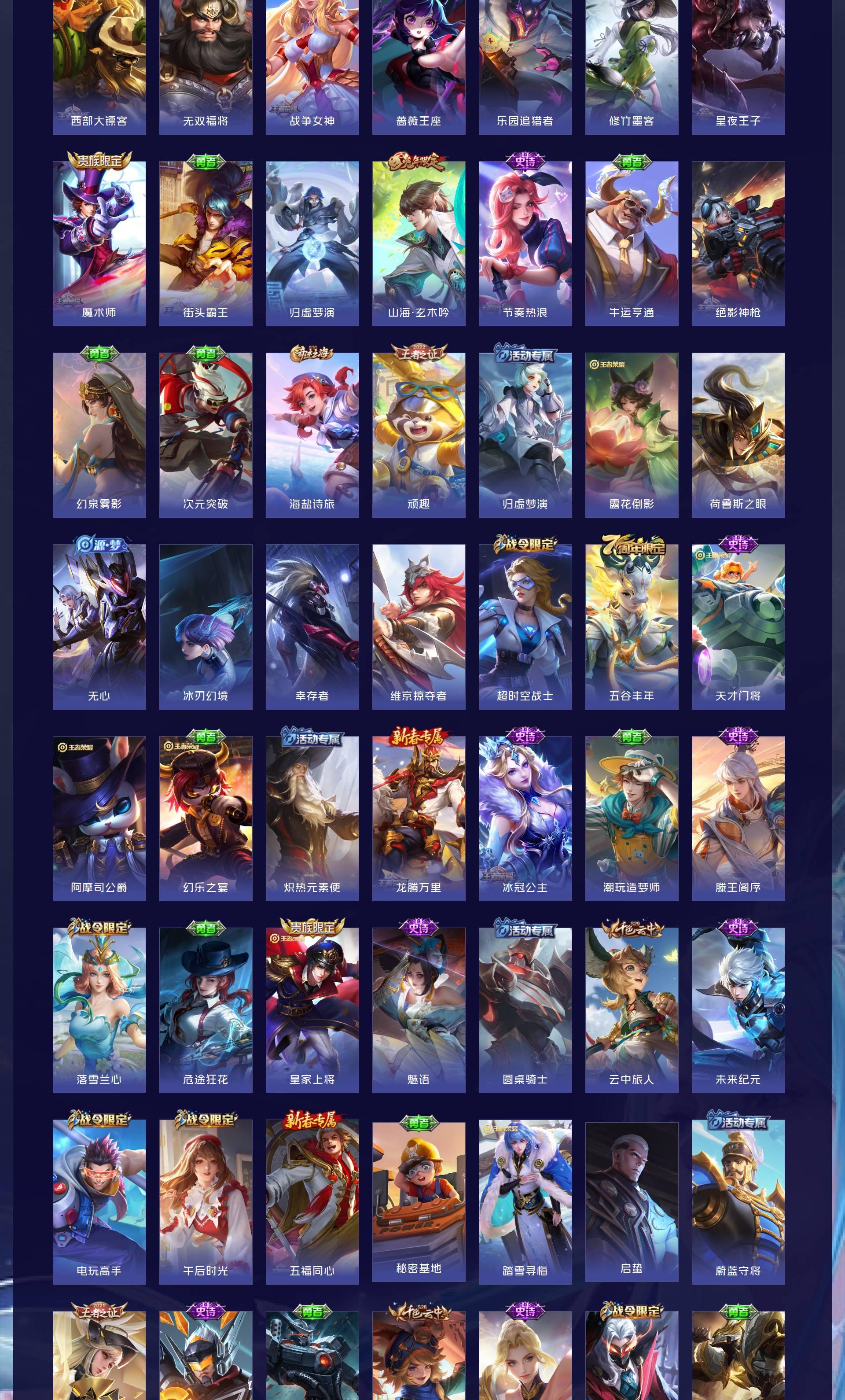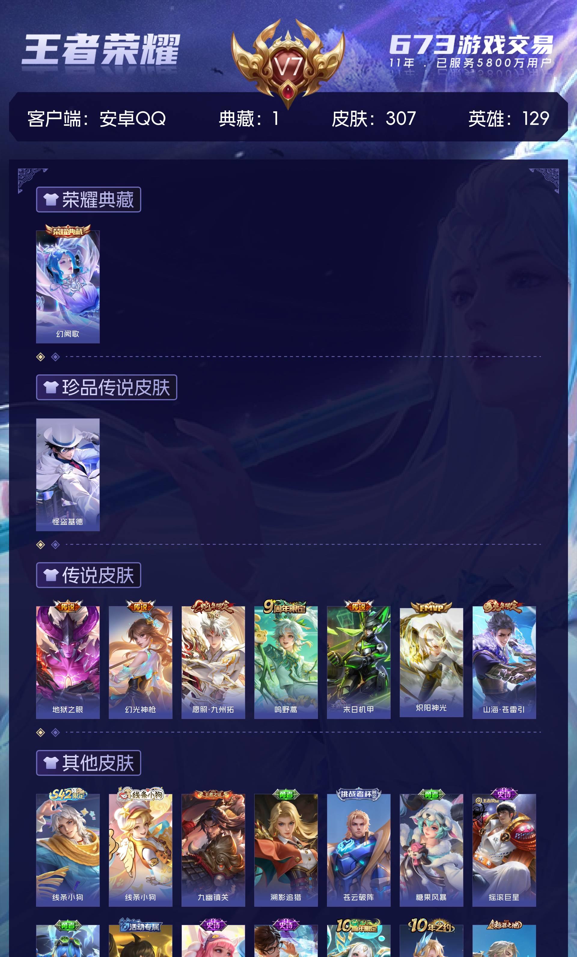 V7 皮肤307 英雄129 非凡王者 荣耀典藏1 珍品传说1 星传说2 传说7 其他皮肤304