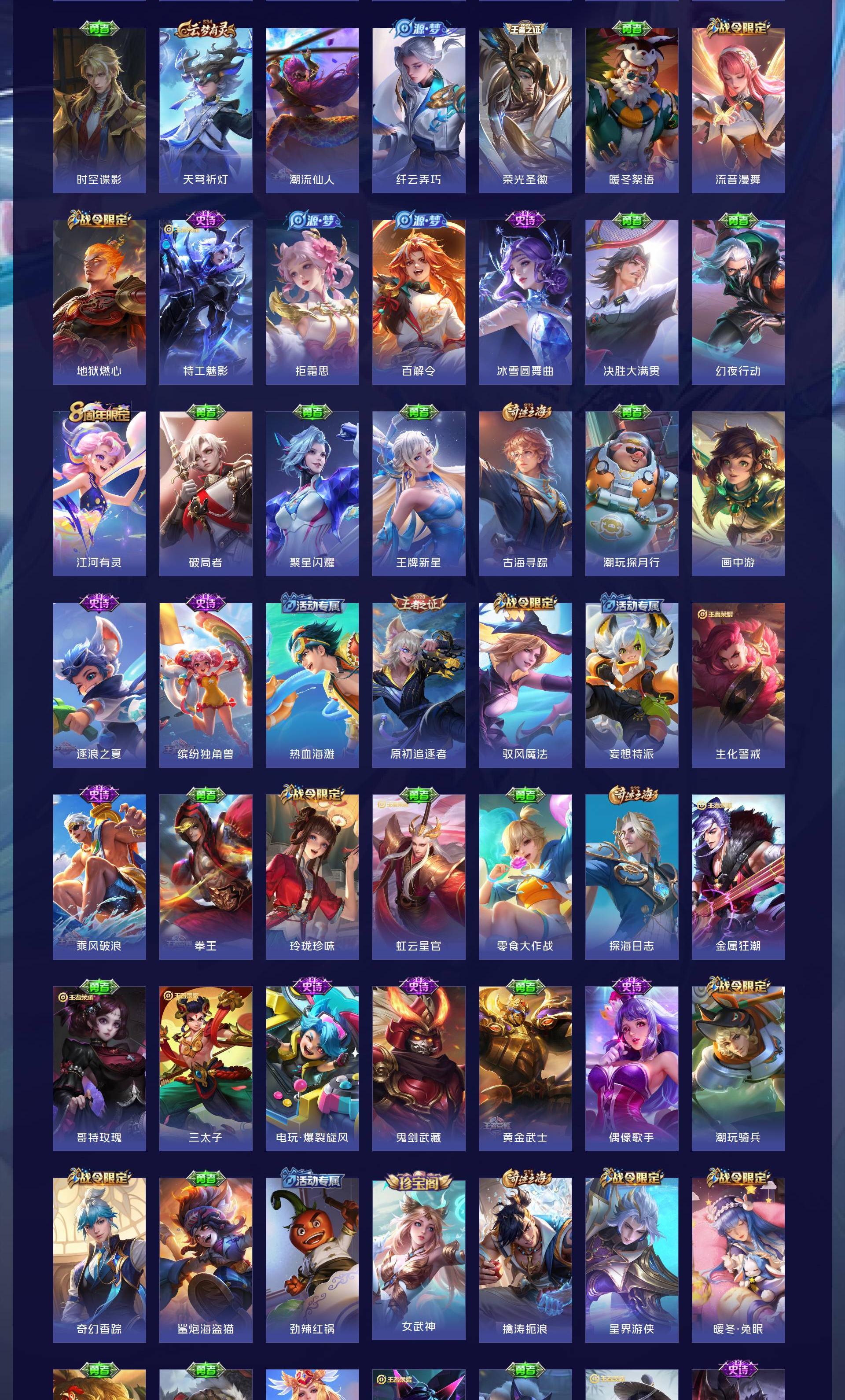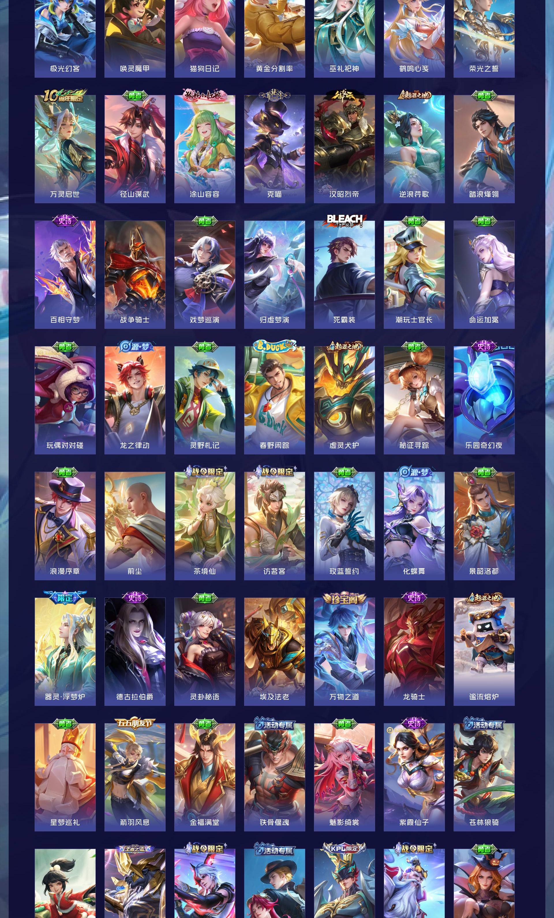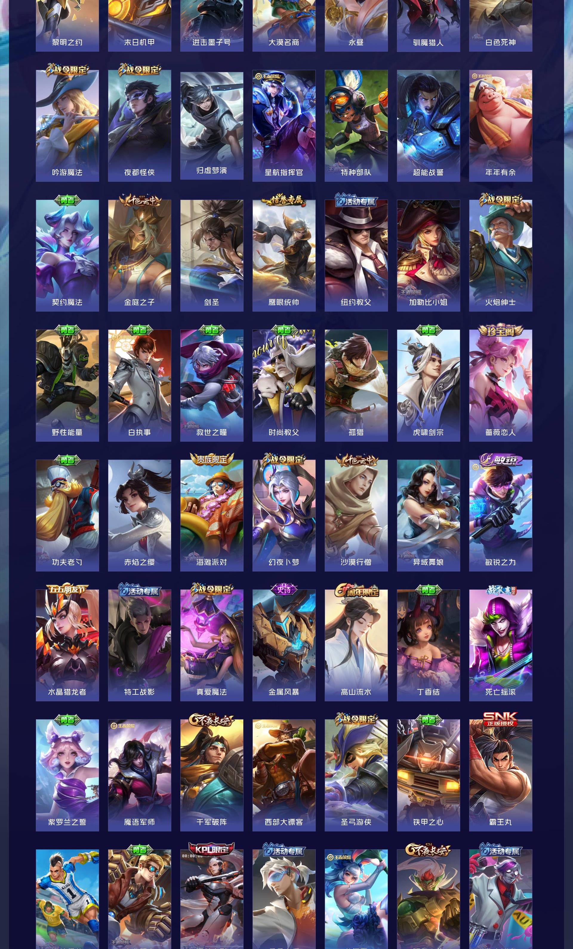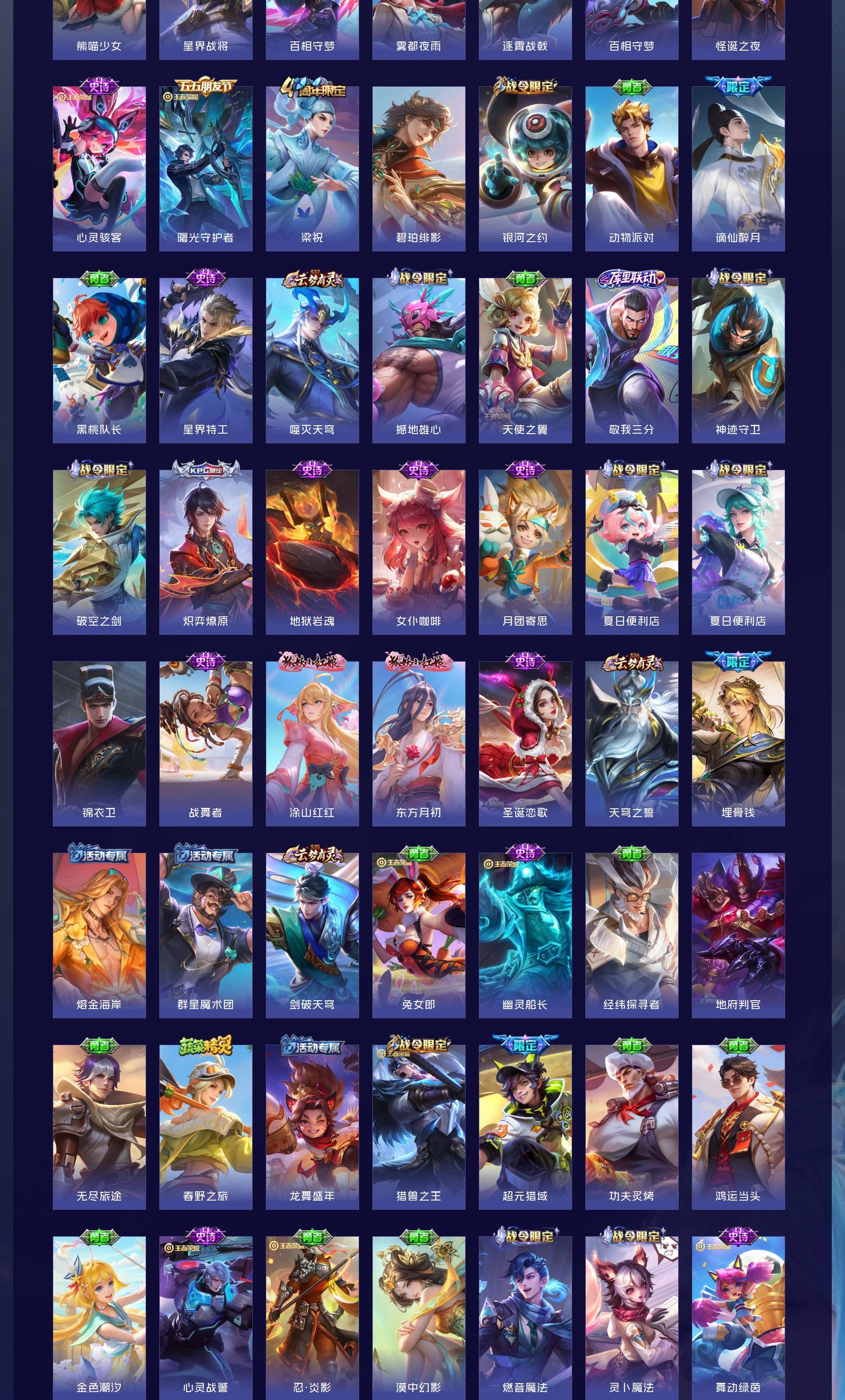 V7 皮肤307 英雄129 非凡王者 荣耀典藏1 珍品传说1 星传说2 传说7 其他皮肤304