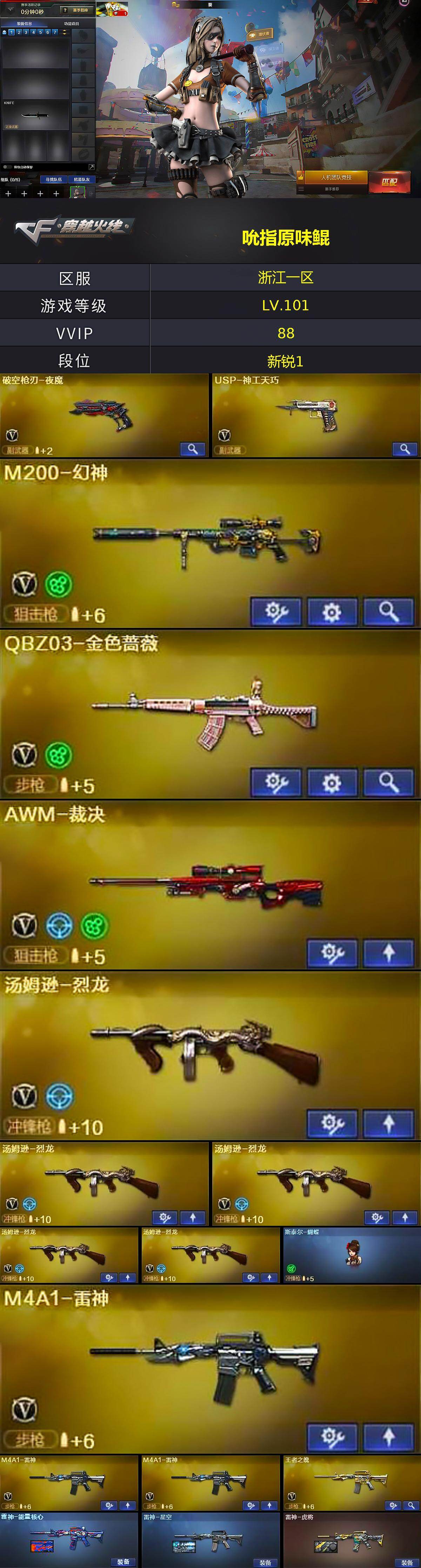 浙江一区-88V-4王者-1炫金【热门武器】:QBZ03-金色蔷薇,M200