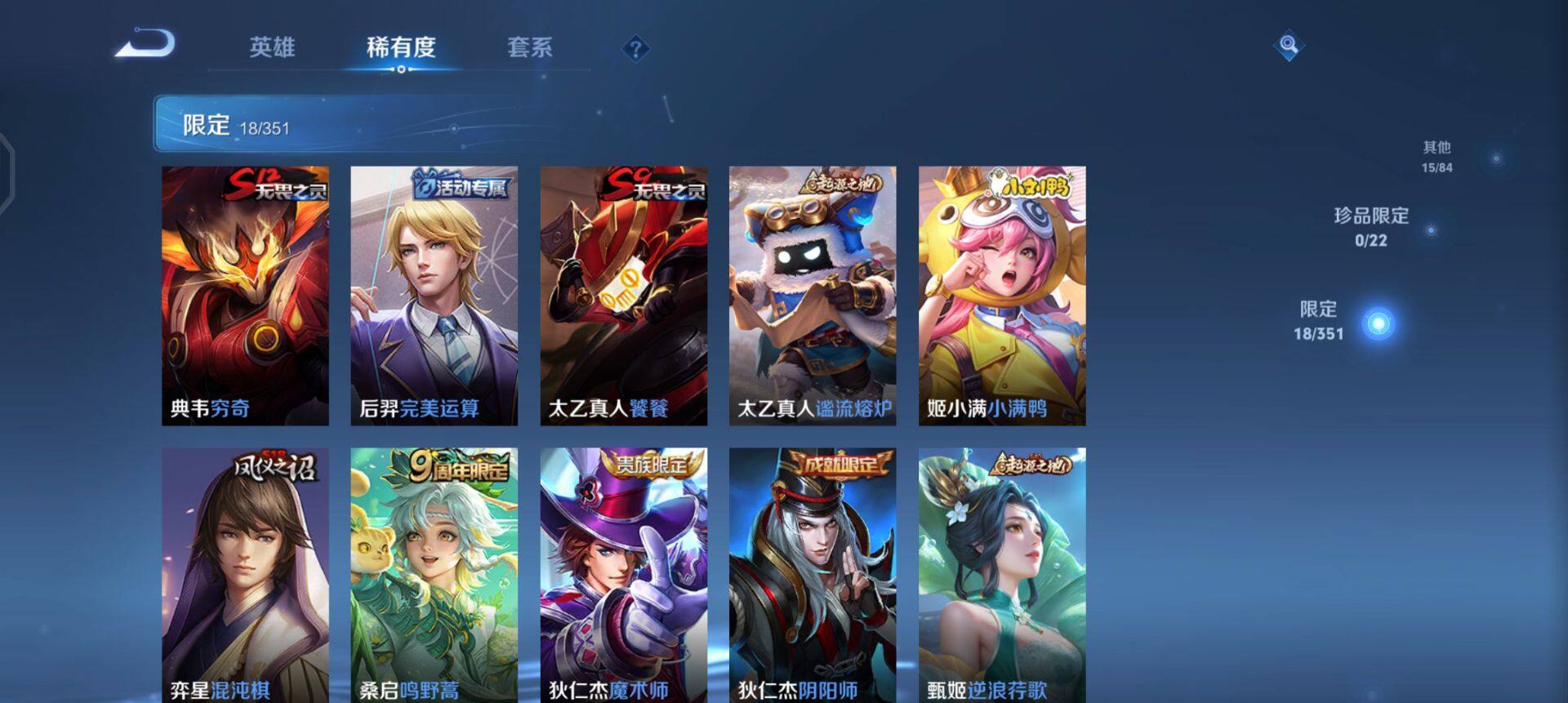 【限定皮肤】:狄仁杰阴阳师,虞姬凯尔特女王,赵云皇家上将,芈月重明,典韦穷奇,狄仁杰魔术师