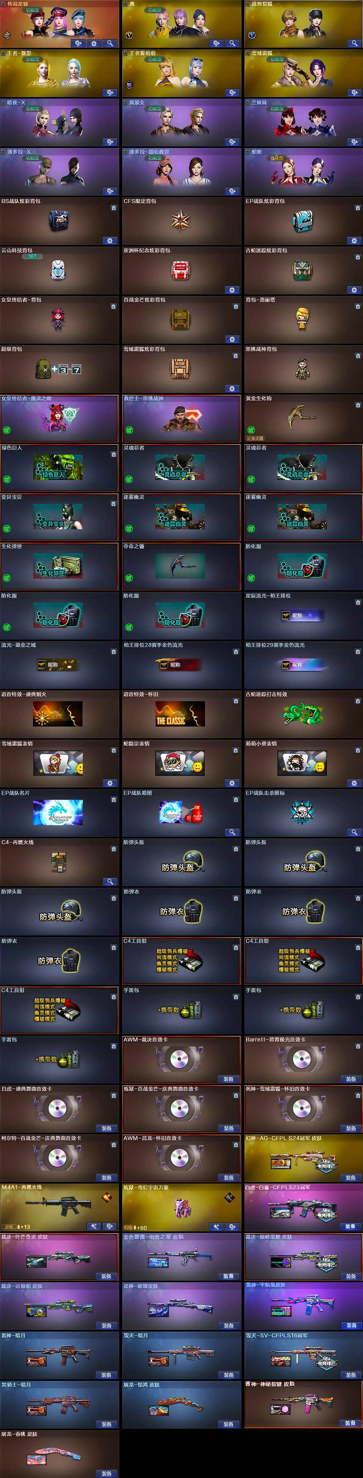 【音效卡】:AWM-裁决音效卡,Barrett-碧霄极光音效卡,白虎-盛典舞曲音效卡,炼狱-百战金芒-庆典舞曲音效卡,死神-雪域霜狐-怀旧音效