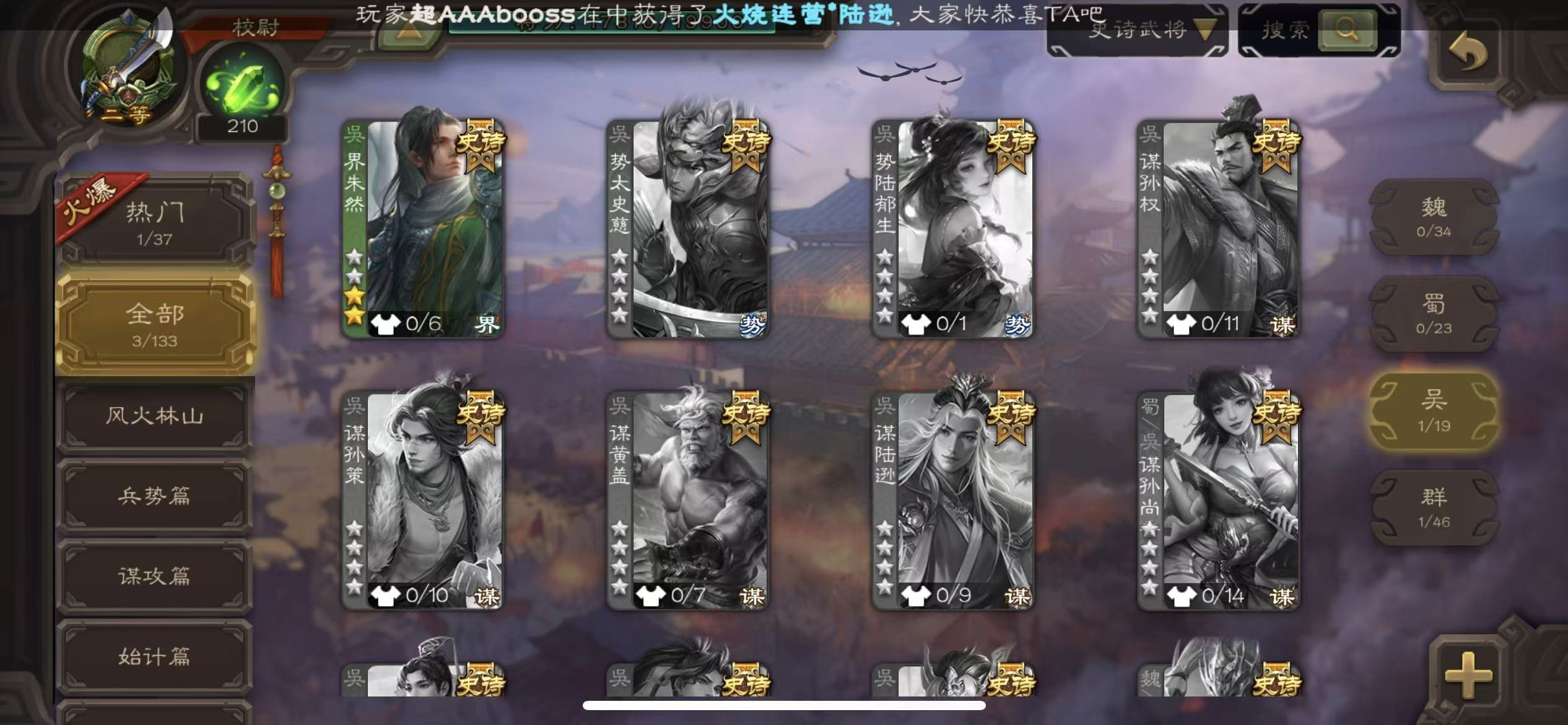 史诗武将数量: