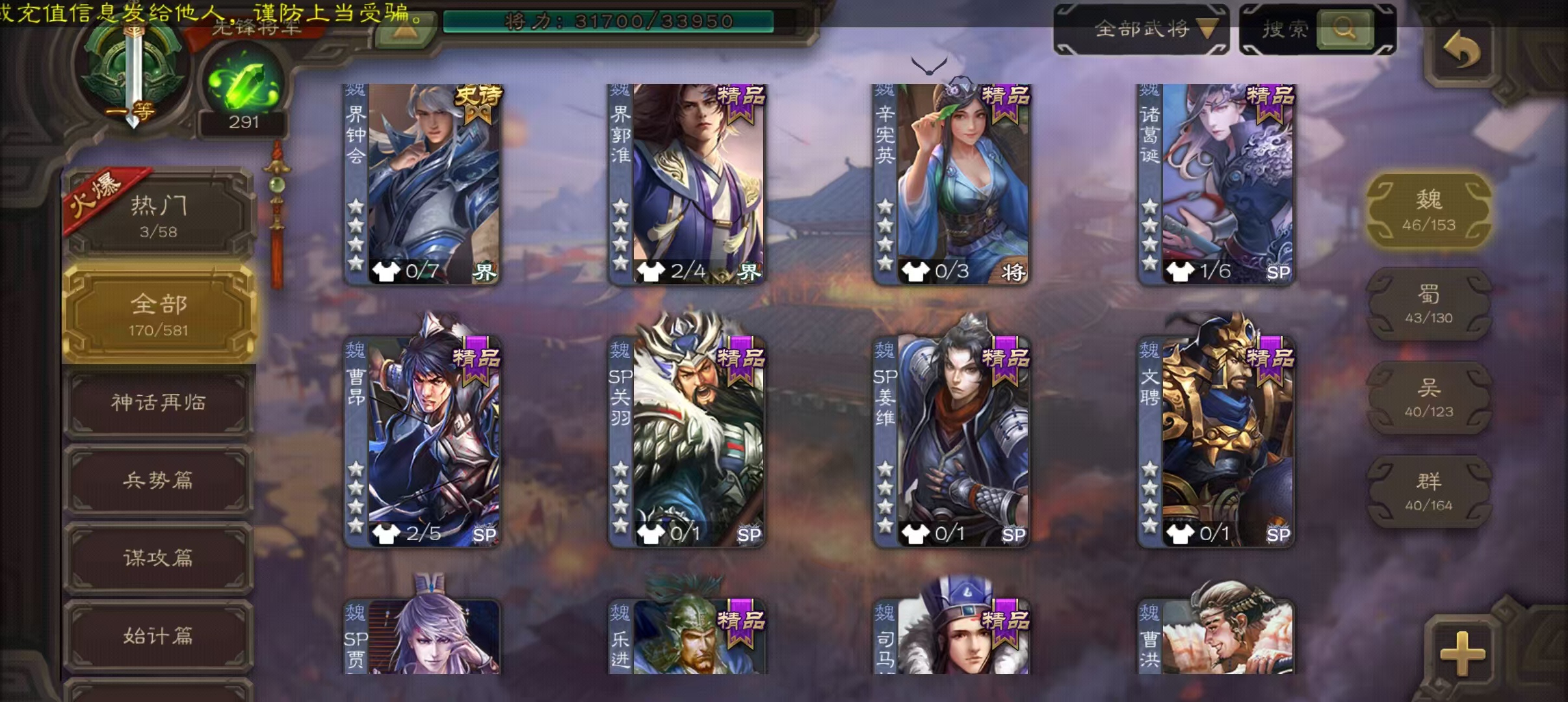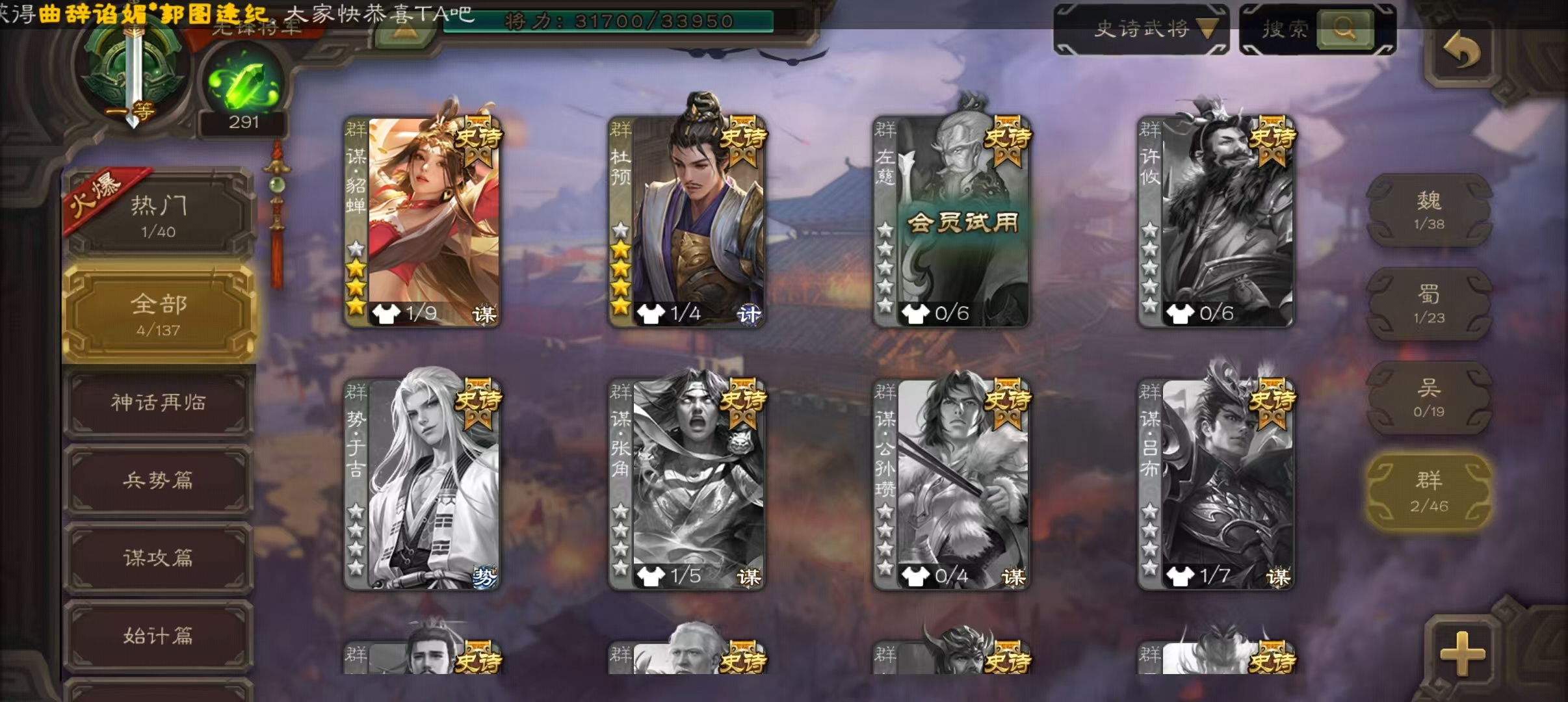 史诗武将数量: