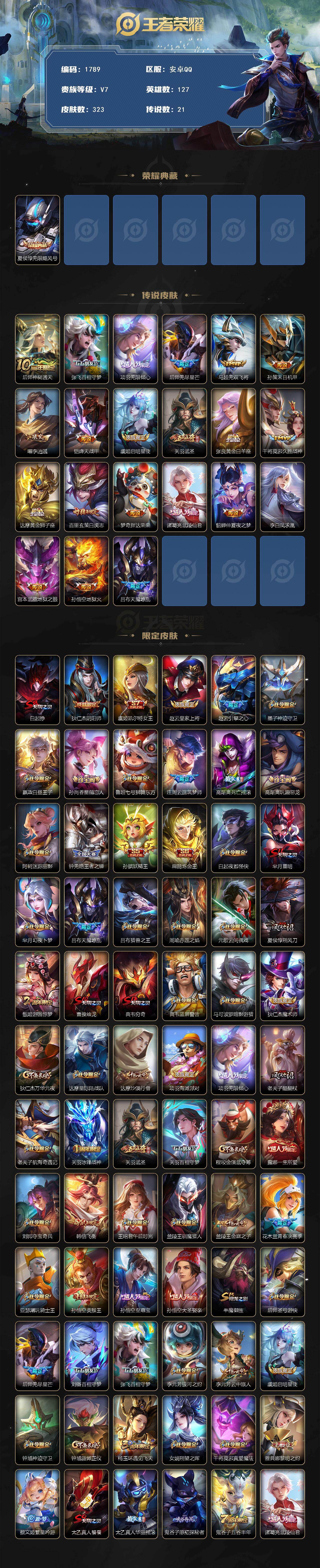 安卓Q-V7-最强王者段位-127英雄-323皮肤-1典藏皮肤-21传说-87史诗