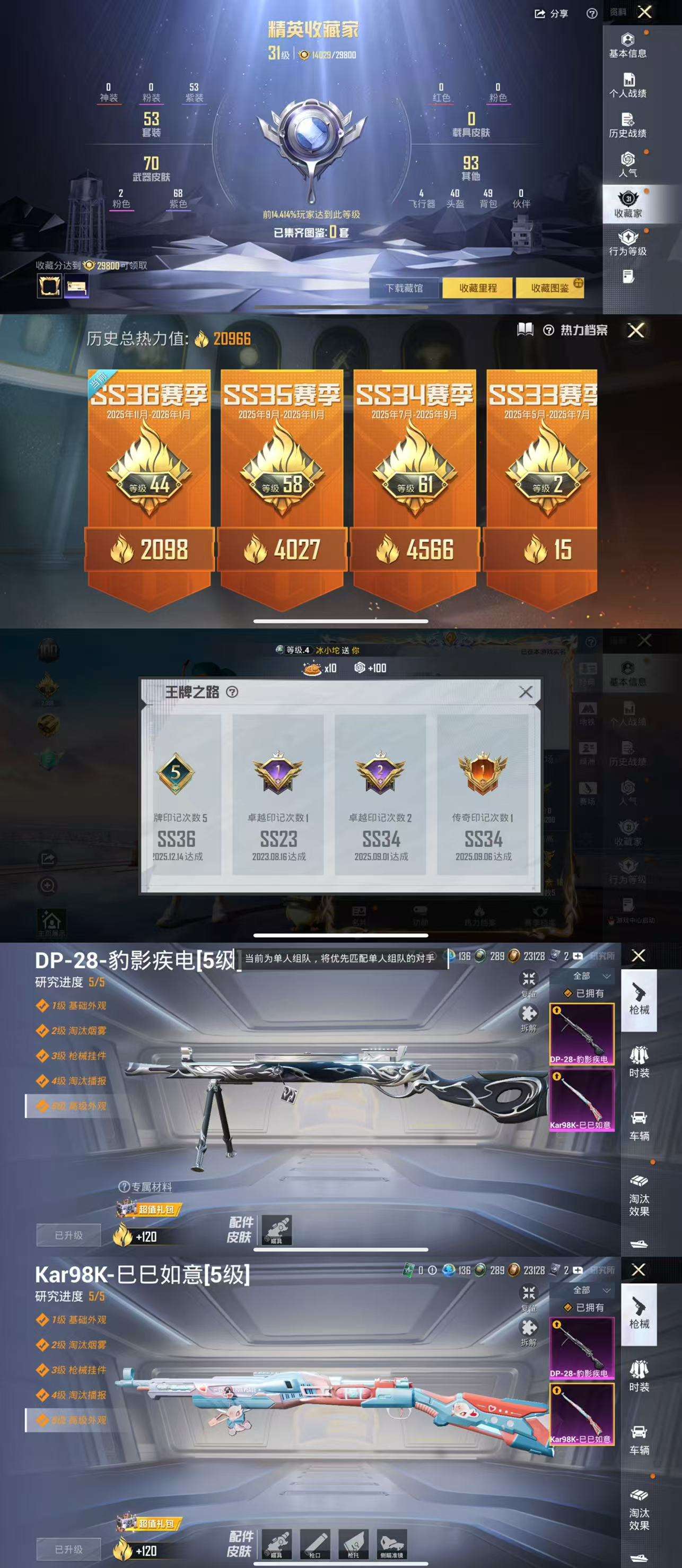 HX8710【身法素材号-2特效枪2角色5王牌印记-Mark.06蓝螳螂-深海小丑鱼-迅捷狂鲨-角色-申公豹 角色-绯色魅影-地铁36天赋点】苹果Q-2特效枪8热门53套装79枪皮 20966热力值 5印记 历史传奇王牌16星 【2特效枪】 Kar98K-巳巳如意 (5级) DP-28-豹影疾电 (5级) 【8热门】角色-申公豹 角色-绯色魅影 Mark.06 迅捷狂鲨 深海小丑鱼 漫步者 破