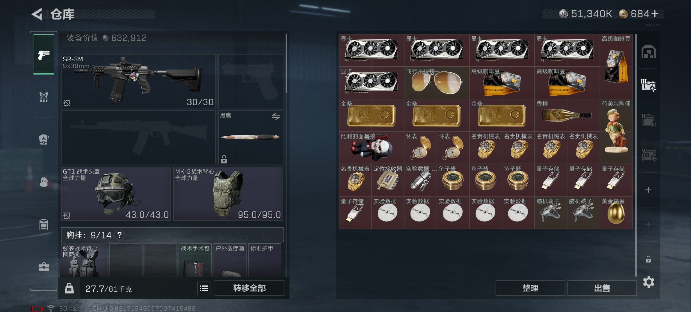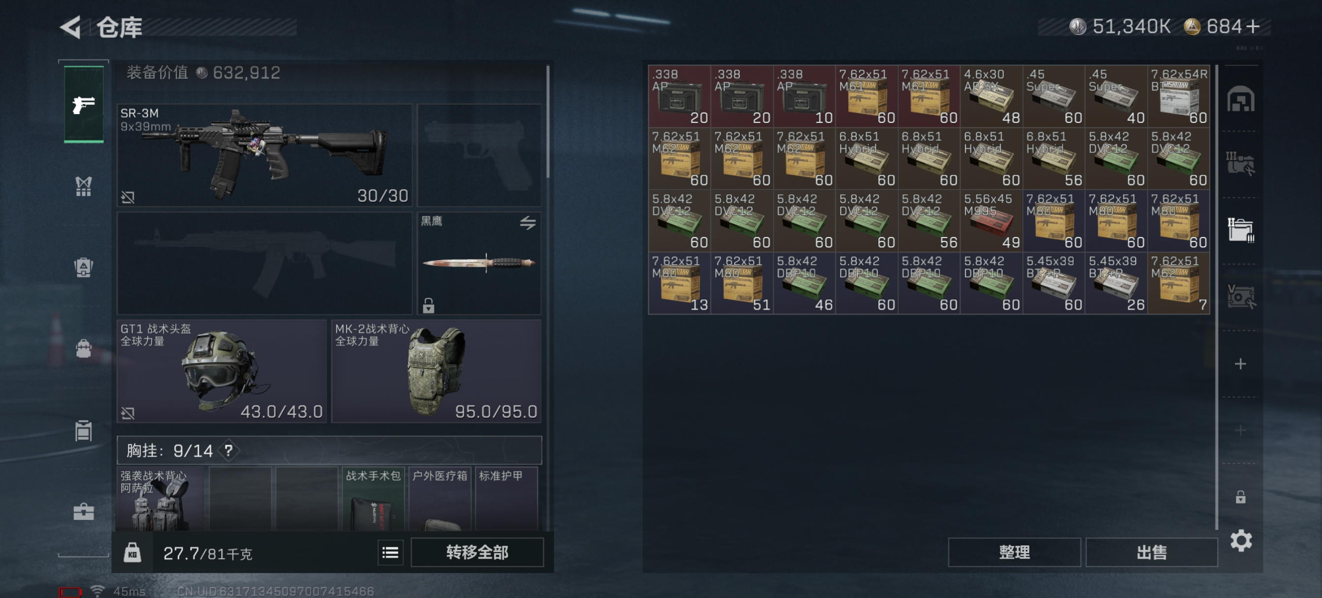 LSJ5011+【总资产(M)】148.95【哈夫币】51,340.55【行动等级】60【干员皮肤】红狼-电锯惊魂 骇爪-维什戴尔【近战武器】黑鹰【枪皮】AKM突击步枪-噬菌体 M7战斗步枪-噬菌体 M7战斗步枪-噬菌体 PTR-32突击步枪-碎冰行动 M4A1突击步枪-零点 AKM突击步枪-肃杀 QBZ95-1突击步枪-高雅黑 QBZ95-1突击步枪-海浪 QBZ95-1突击步枪-海色 QBZ95-1突击步枪-2026 AKS-74U突击步枪-冰天雪地 K416突击步枪-几何迷彩 K416突击
