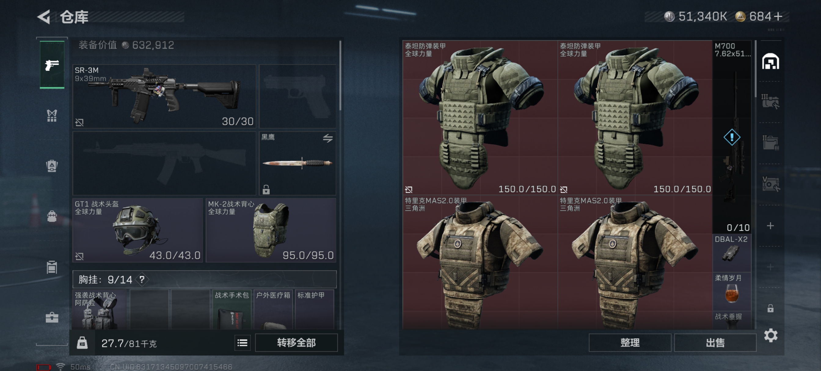 【总资产(M)】148.95【哈夫币】51,340.55【行动等级】60