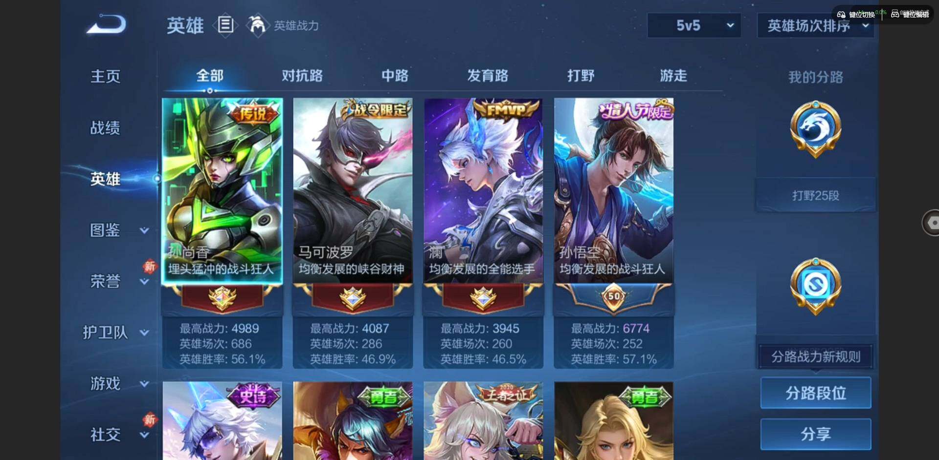 实名: 可修改 贵族等级: V7 英雄数: 128 皮肤数: 163 星传说: