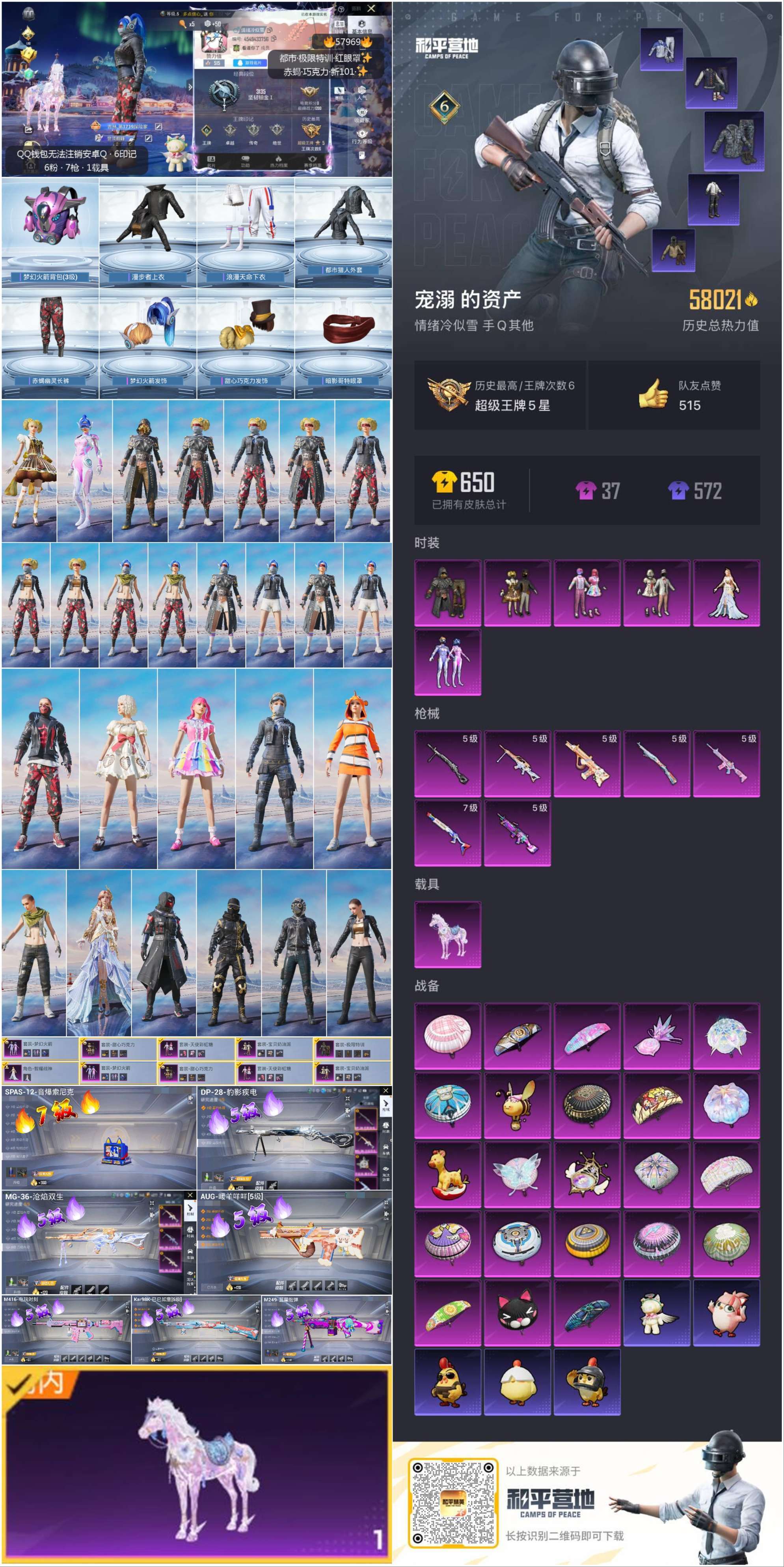 hs57969 安卓手Q-6王牌印记-6粉装-7特效枪-1载具-58021热力值-143套装-176