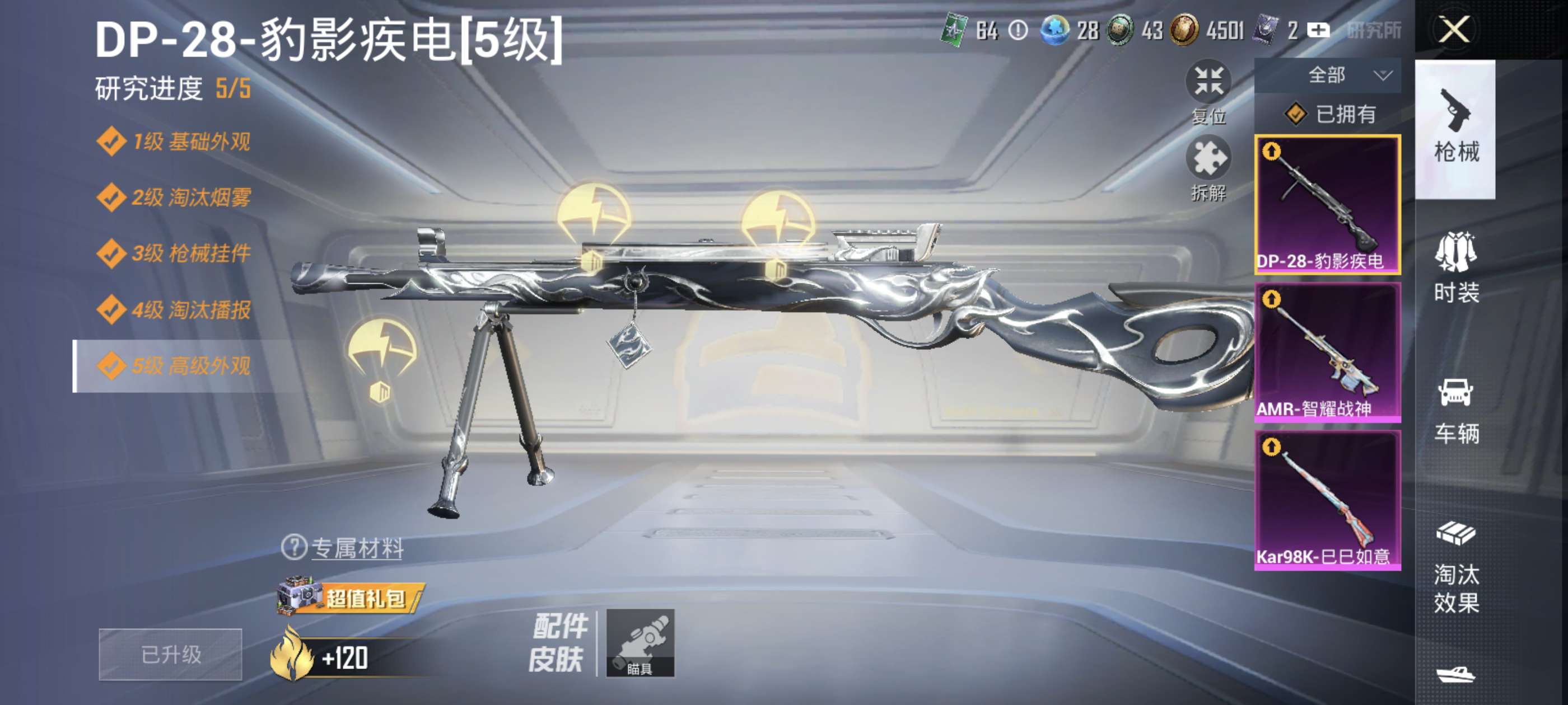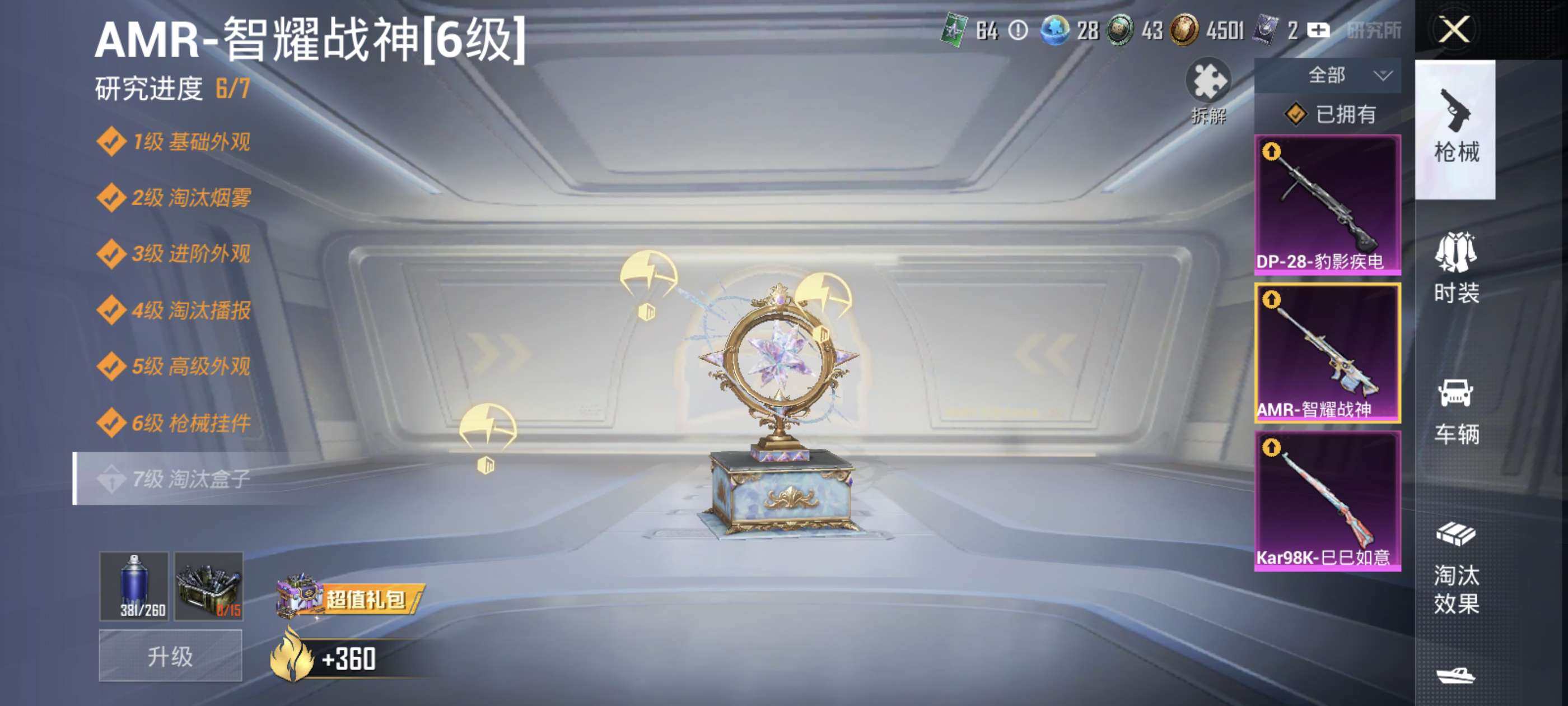 两个粉装,三个飞行器三把特效枪还有淘汰2个盒子。
