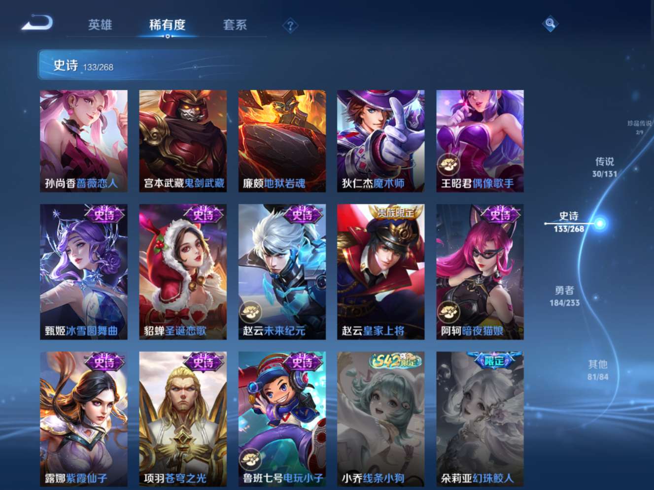 129英雄-434皮肤--V9-2典藏2无双2珍品传说30传说 打野53段 中路52段 万战金标马超