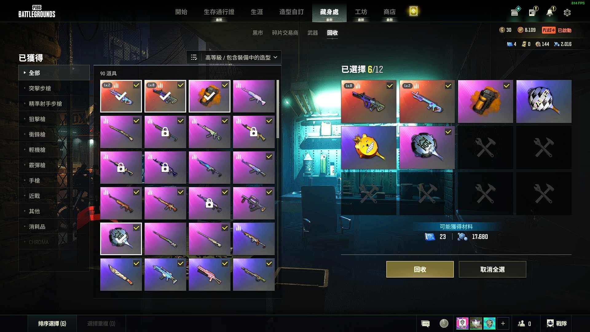小丑女,迈凯伦,8级霓虹之梦aug,2级mk12,橙色烟雾弹,白虎背包,悲喜全套,小黄鸭全套,金面滑