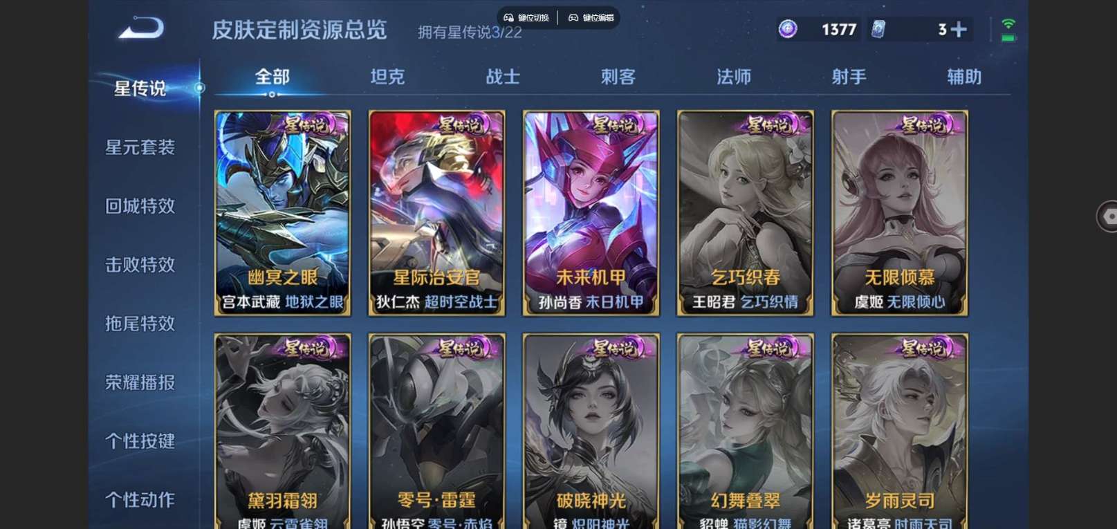 127英雄-329皮肤-V8-2典藏3珍品传说17传说 发育路38段 游走37段 金标孙悟空 3星传
