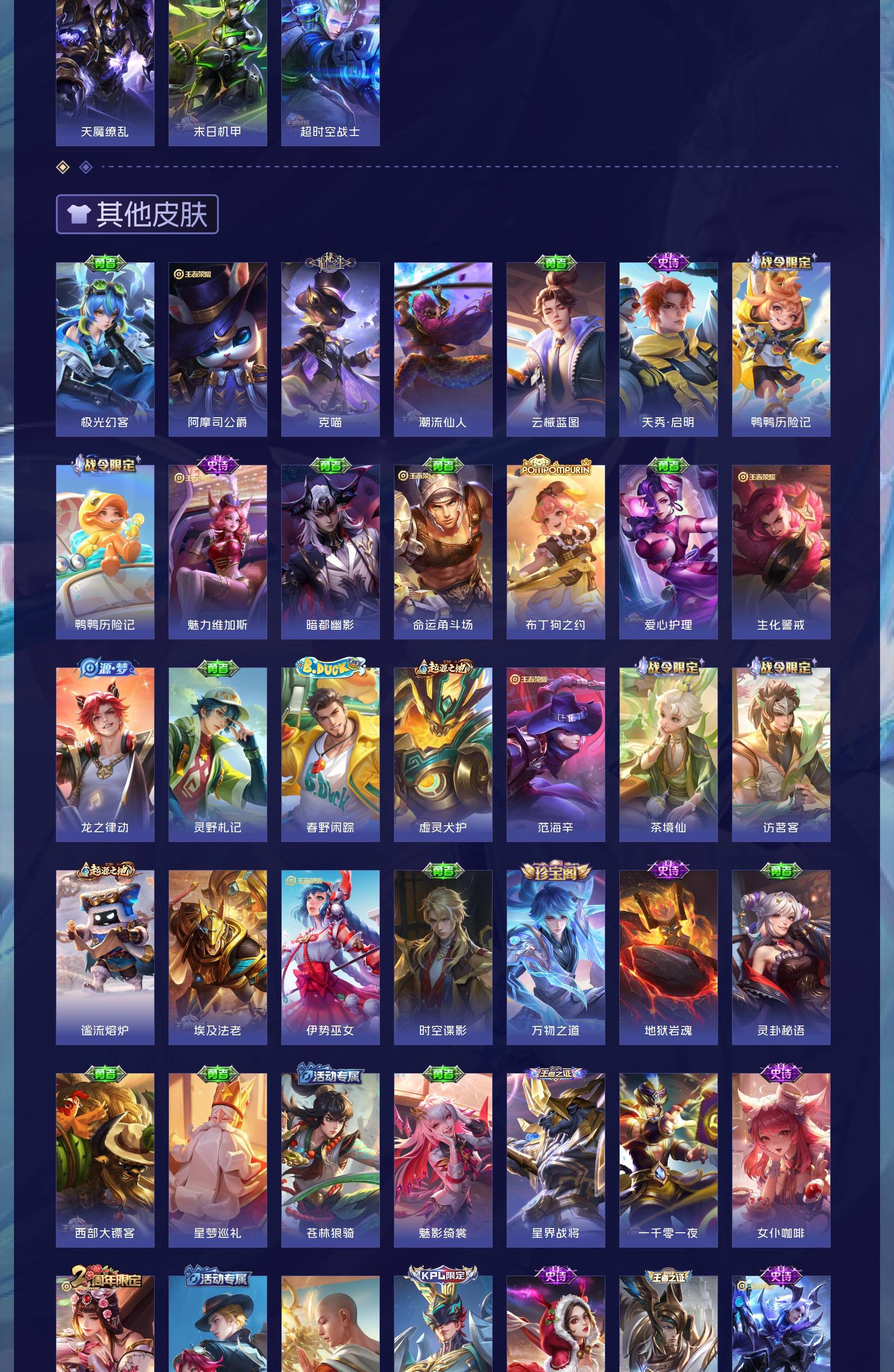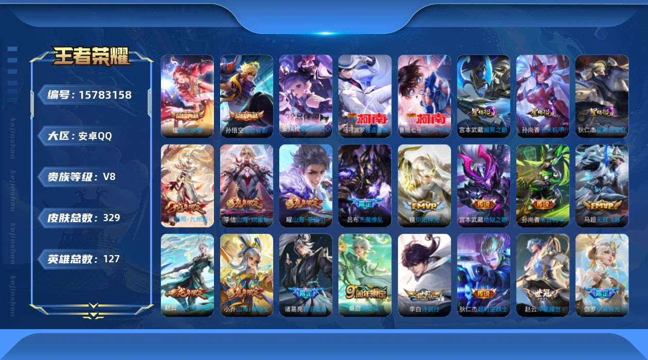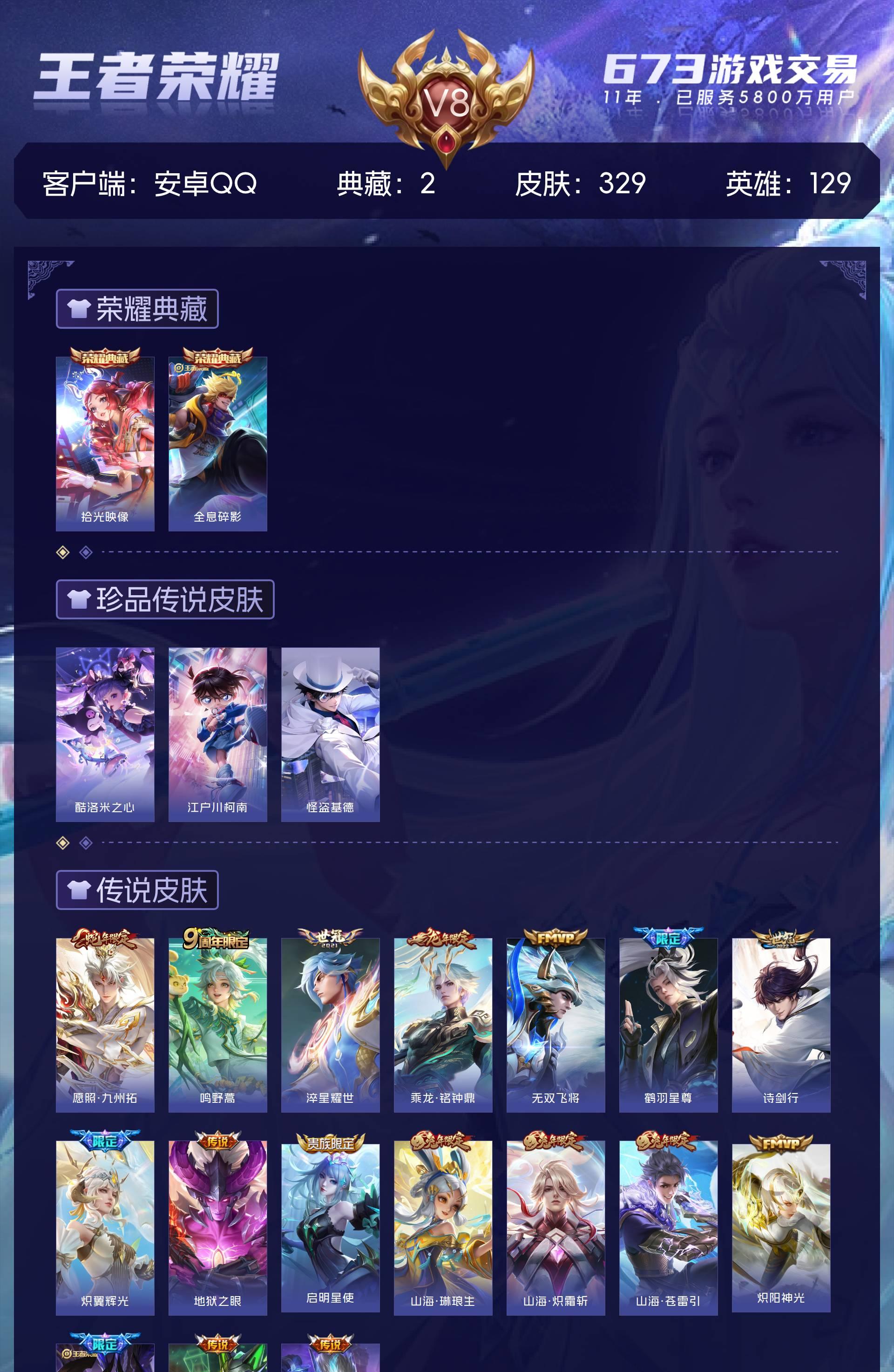 V8 皮肤329 英雄129 永恒钻石 荣耀典藏2 珍品传说3 传说17 其他皮肤312