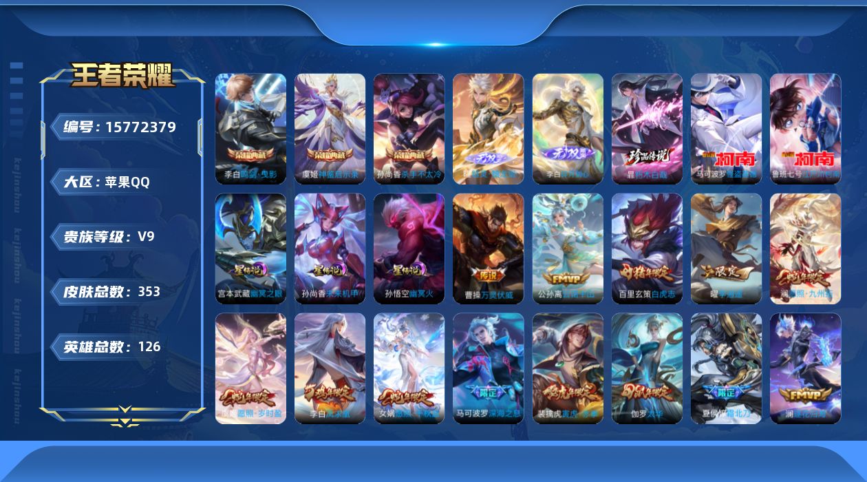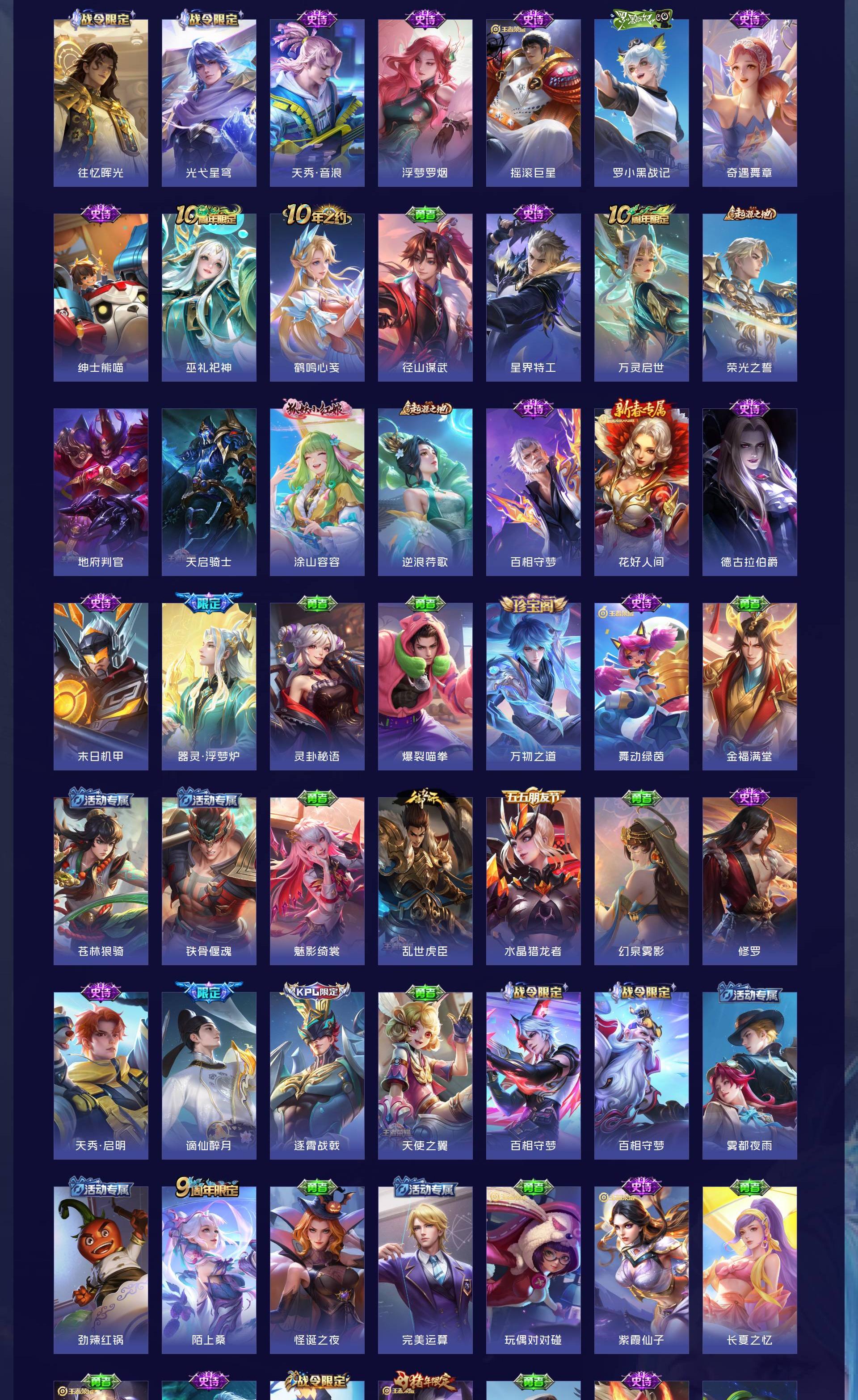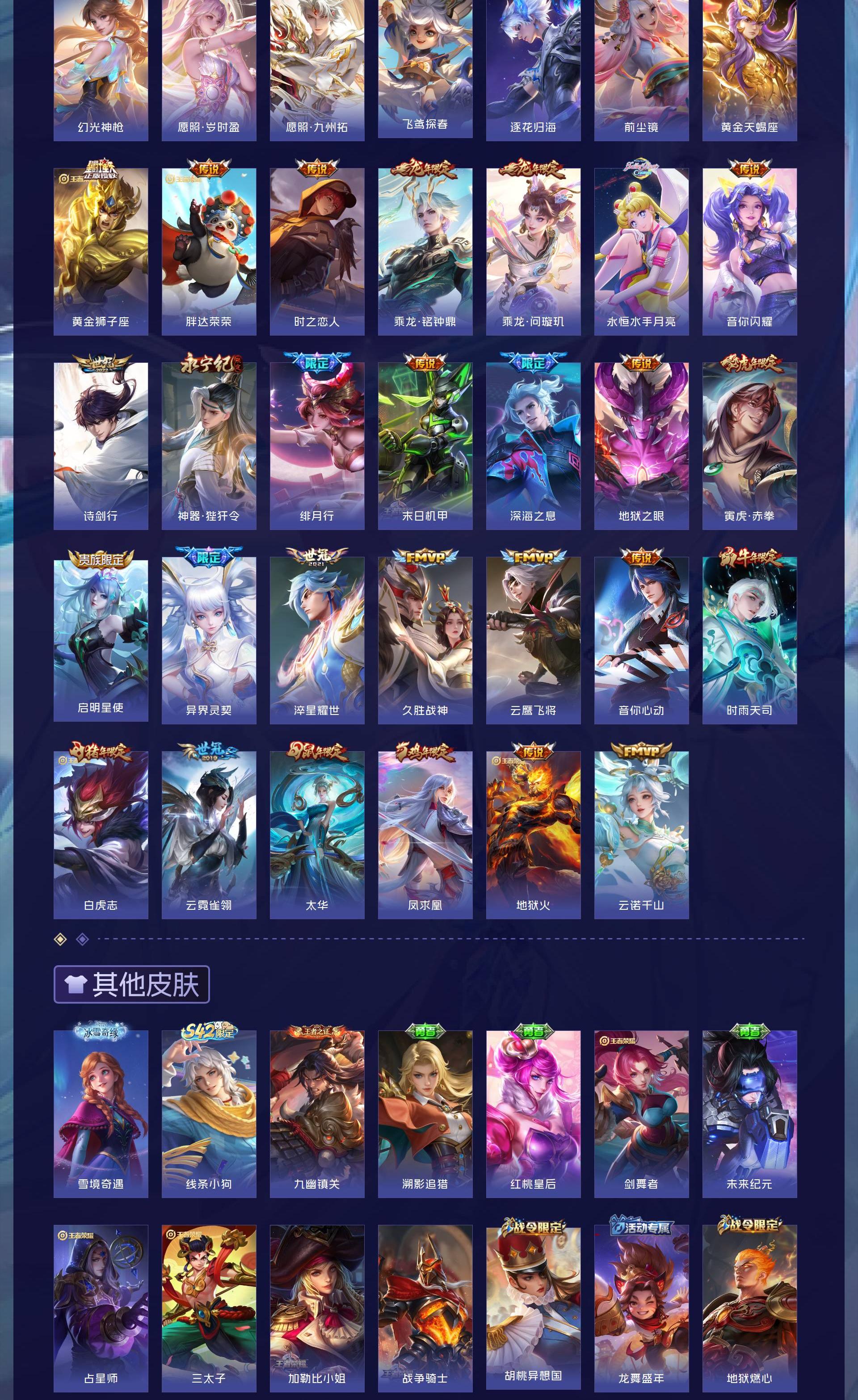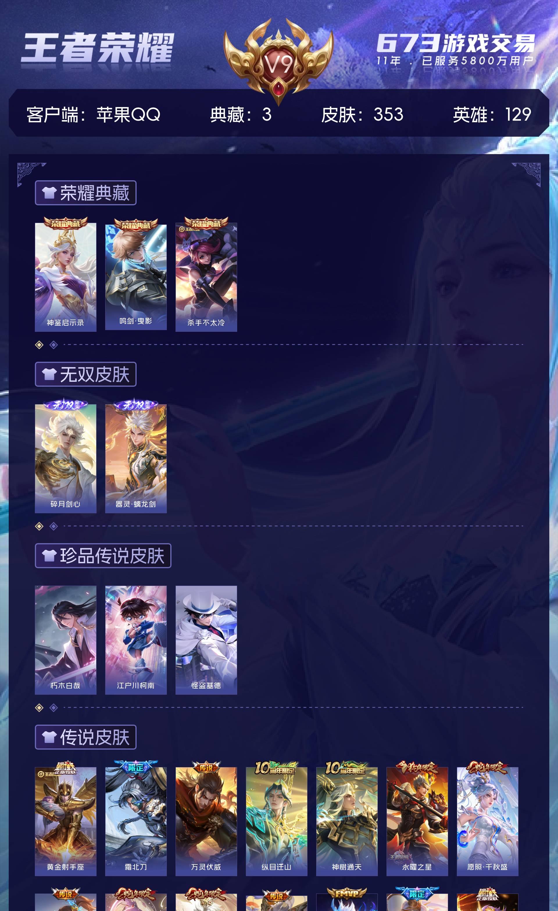 V9 皮肤353 英雄129 最强王者 荣耀典藏3 无双皮肤2 珍品传说3 传说42 其他皮肤308