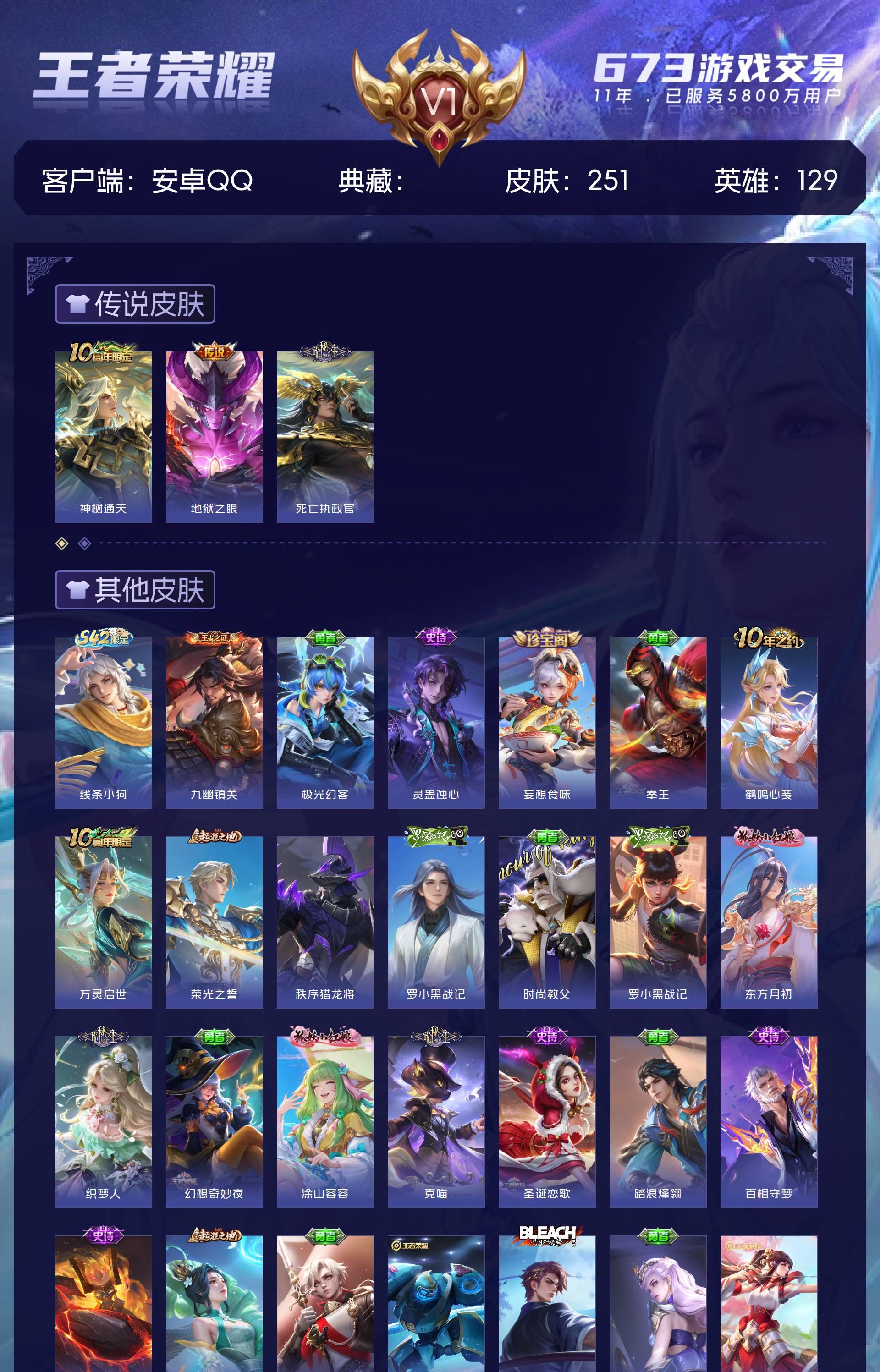 V1 皮肤251 英雄129 至尊星耀 星传说1 传说3 其他皮肤254