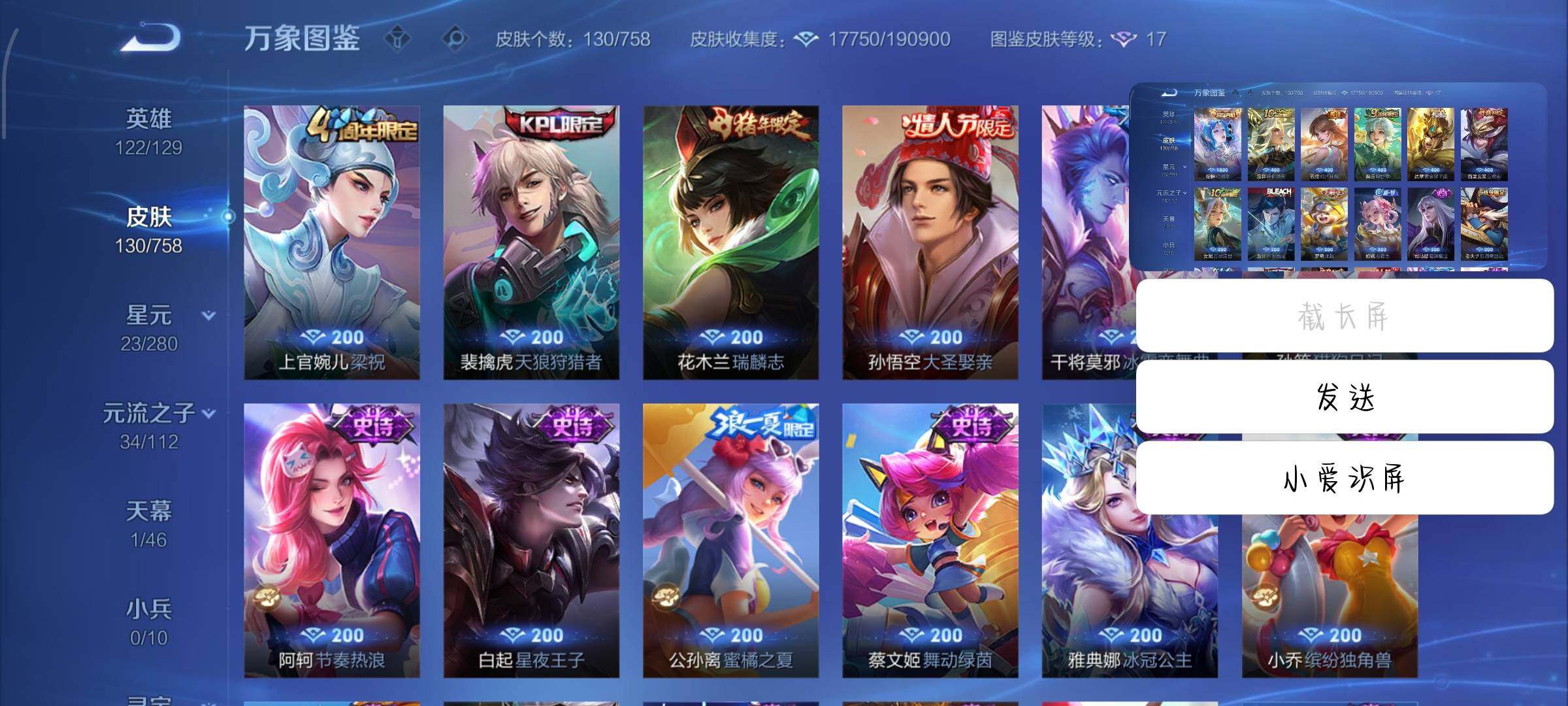 【高性价比·幻阙歌·白虎志·瑞麟志·蜜橘之夏·可二次】YXw12158-安卓Q-122英雄-130皮肤-9王者印记-170铭文-贵族积分2w【贵族7】【1典藏·5传说·1天幕·4按键】【因赛季更新游戏段付以上号为准!】
