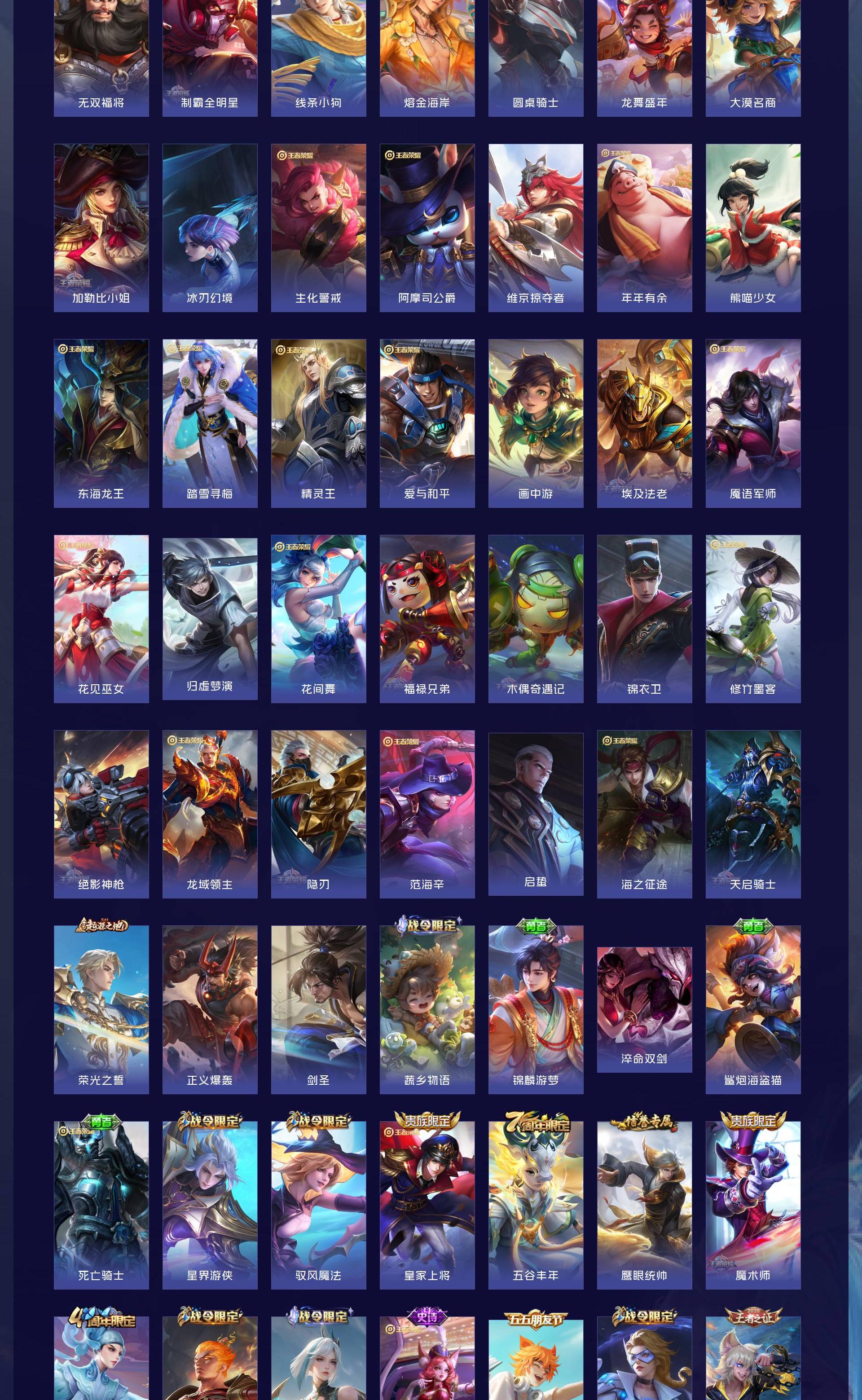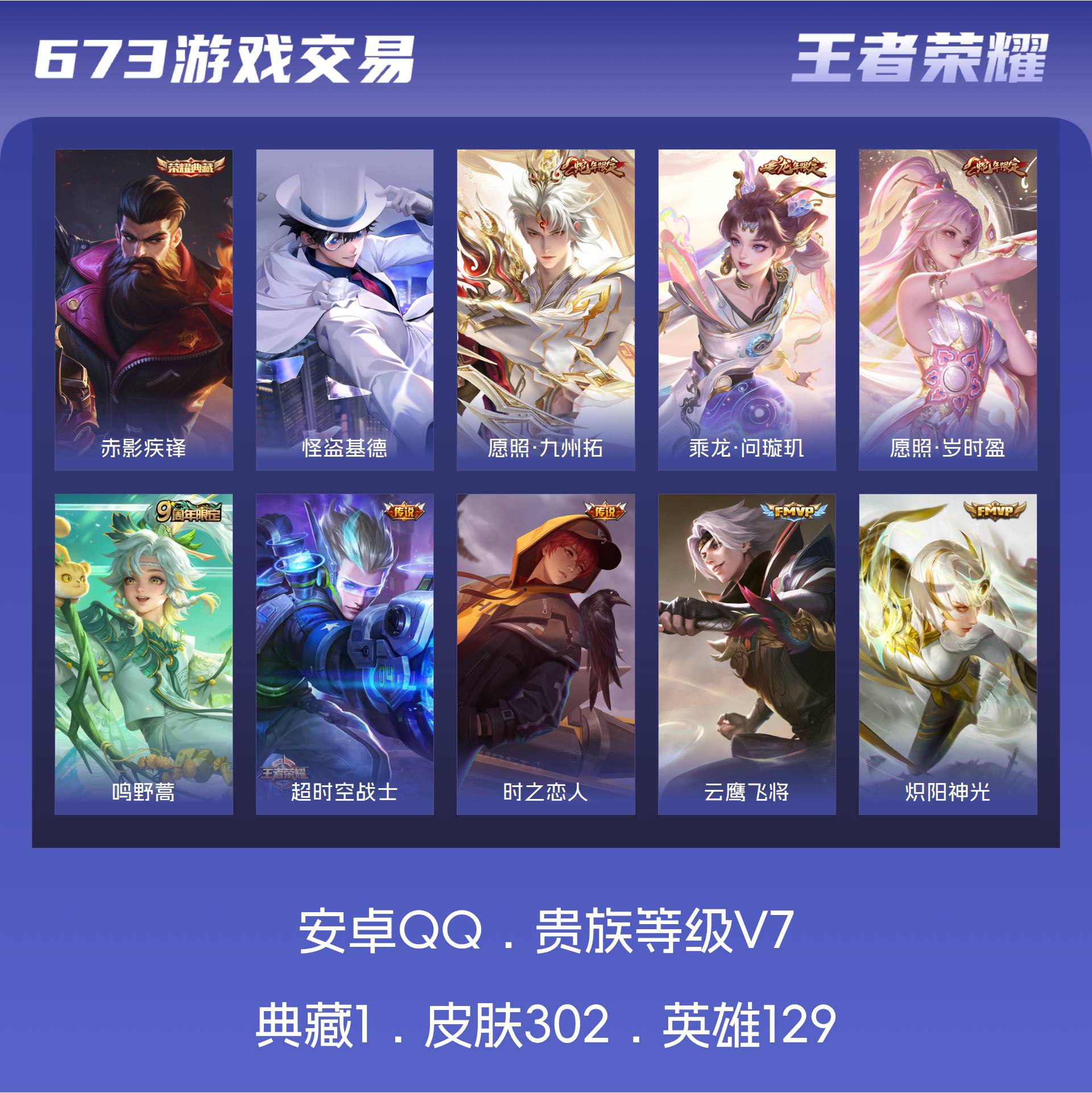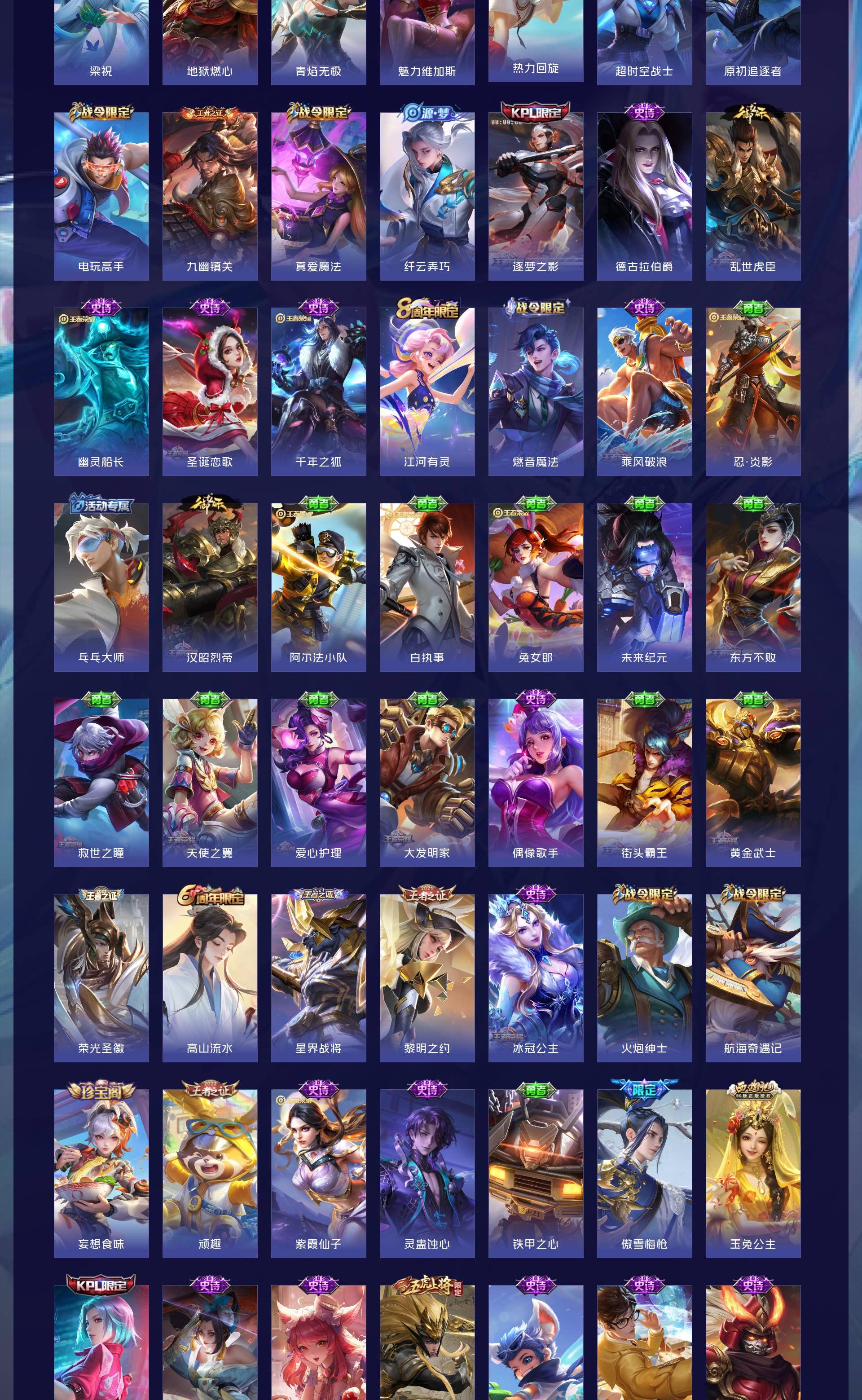 V7 皮肤302 英雄129 至尊星耀 荣耀典藏1 珍品传说1 传说12 其他皮肤294