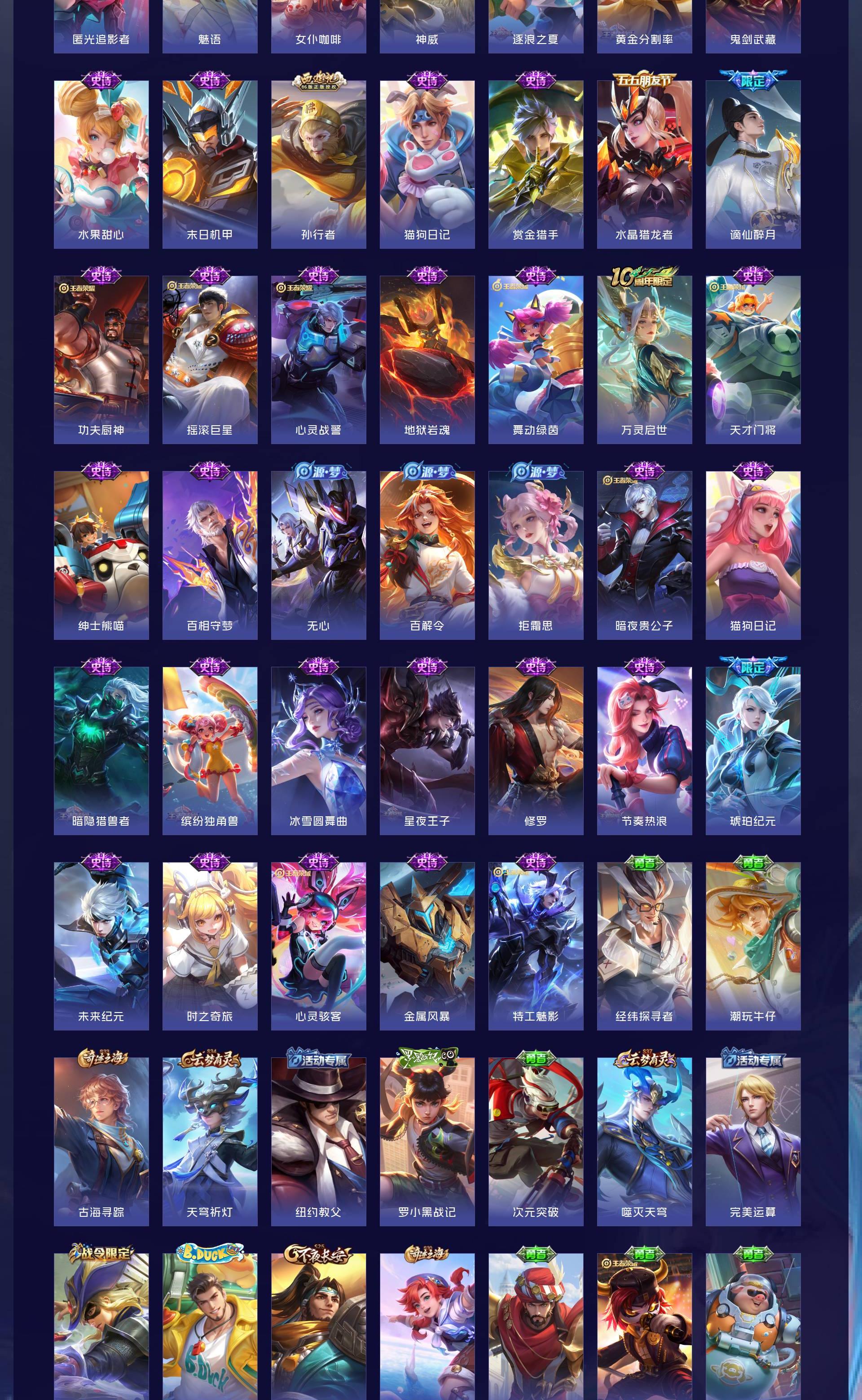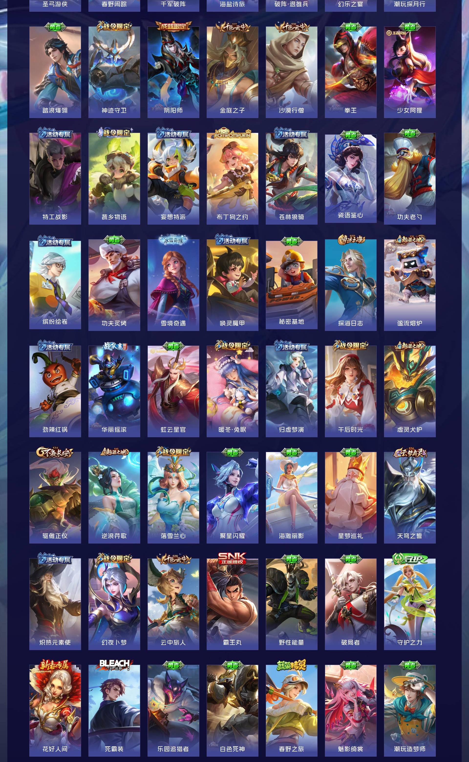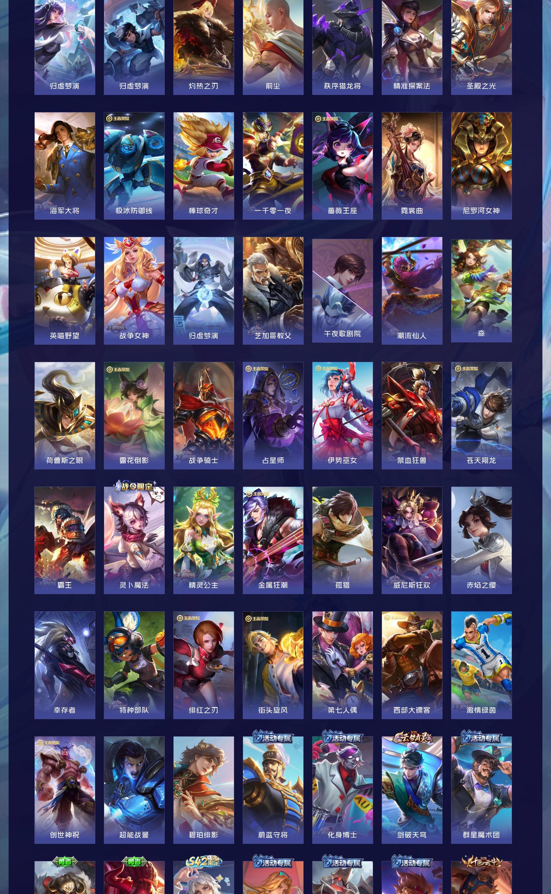 V7 皮肤302 英雄129 至尊星耀 荣耀典藏1 珍品传说1 传说12 其他皮肤294