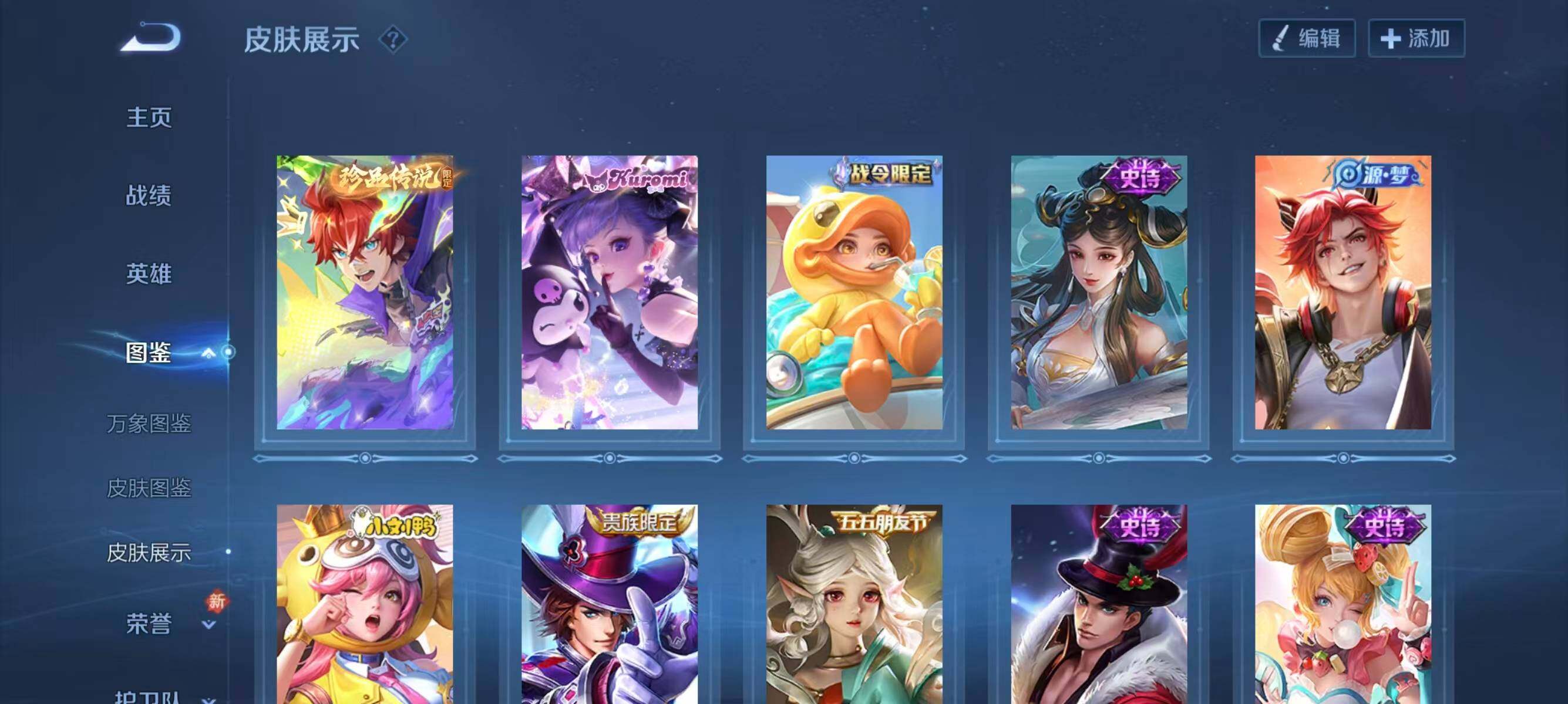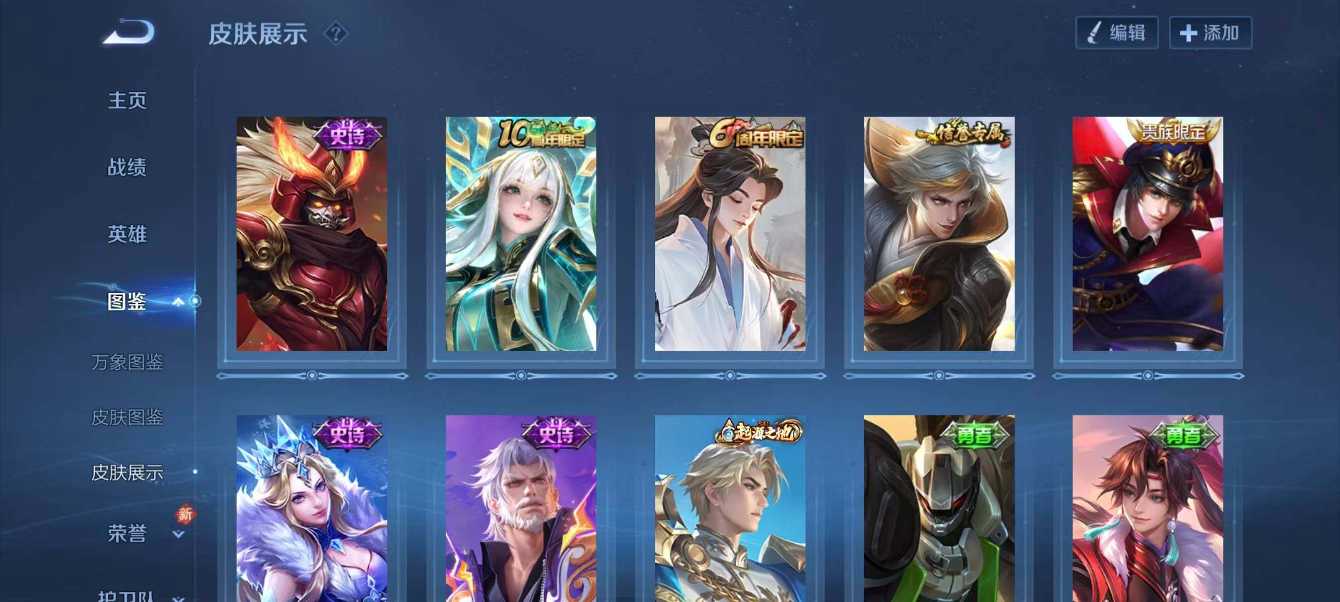 【史诗皮肤】:赵云皇家上将,狄仁杰魔术师,宫本武藏鬼剑武藏,孙尚香水果甜心,吕布圣诞狂欢,雅典娜冰冠公主,狄仁杰鹰眼