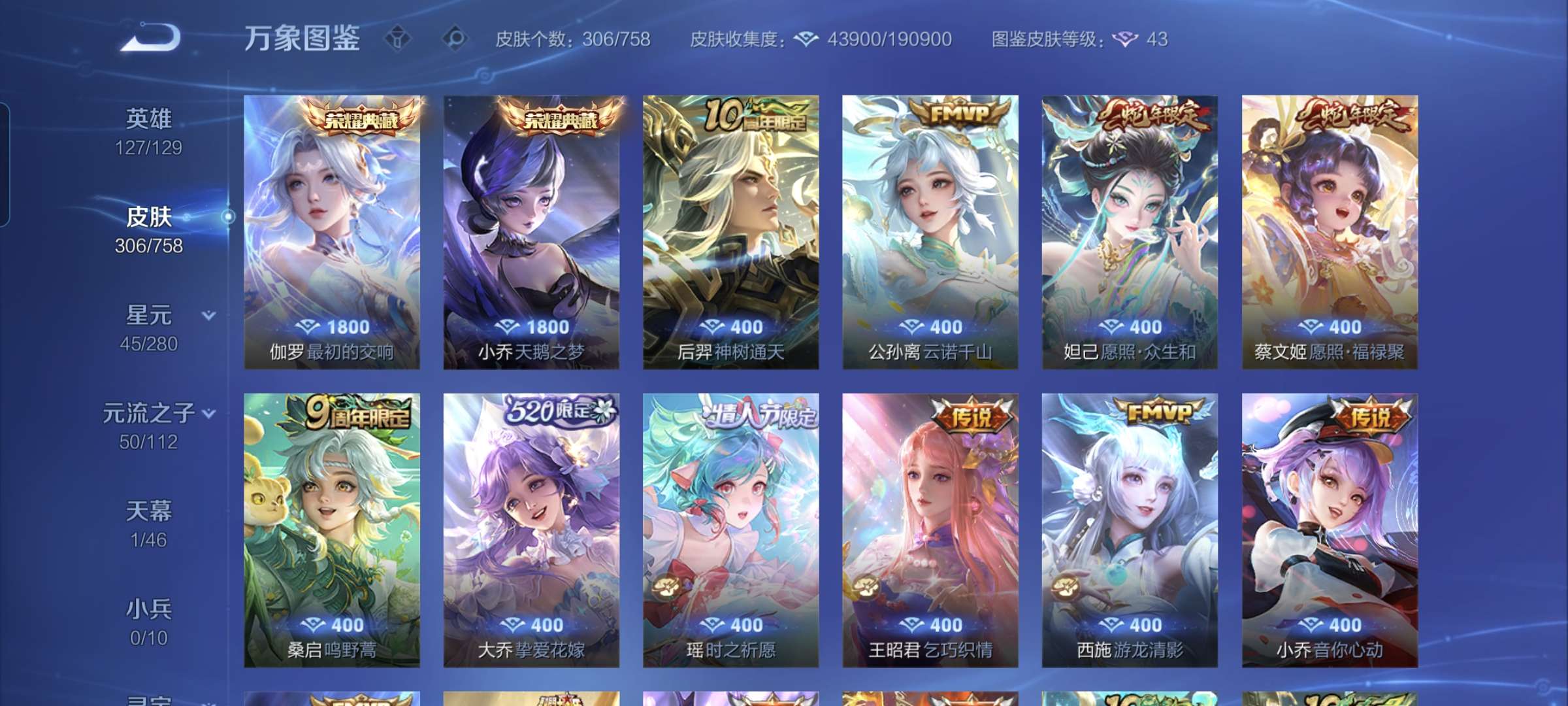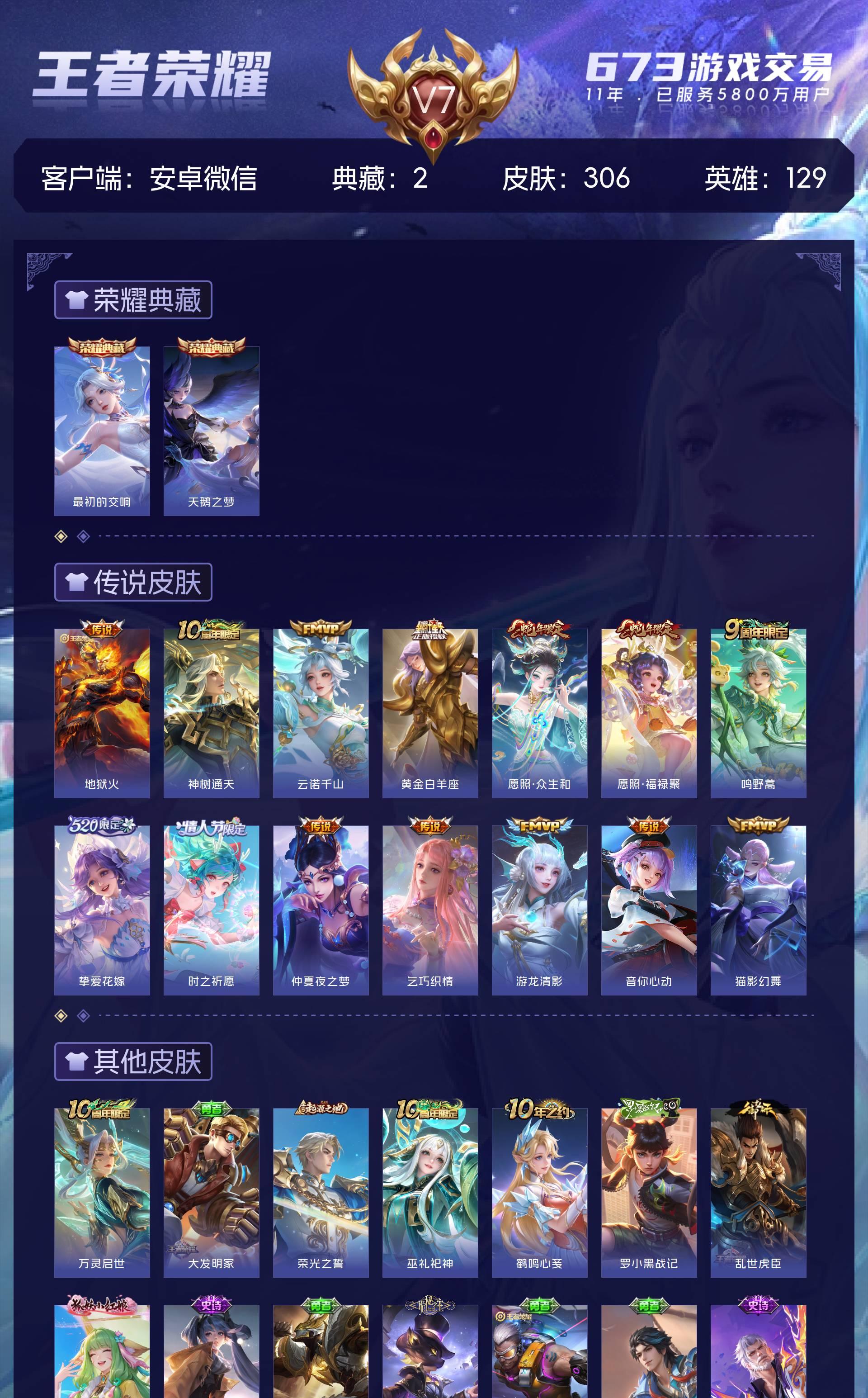 V7 皮肤306 英雄129 永恒钻石 荣耀典藏2 星传说3 传说14 其他皮肤295