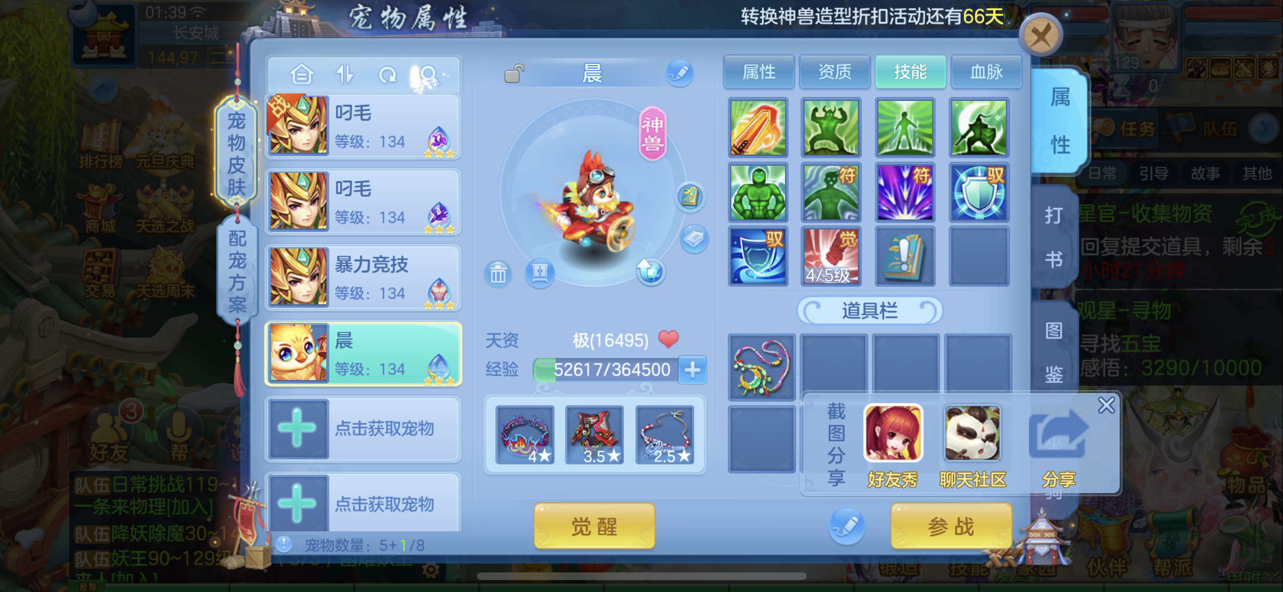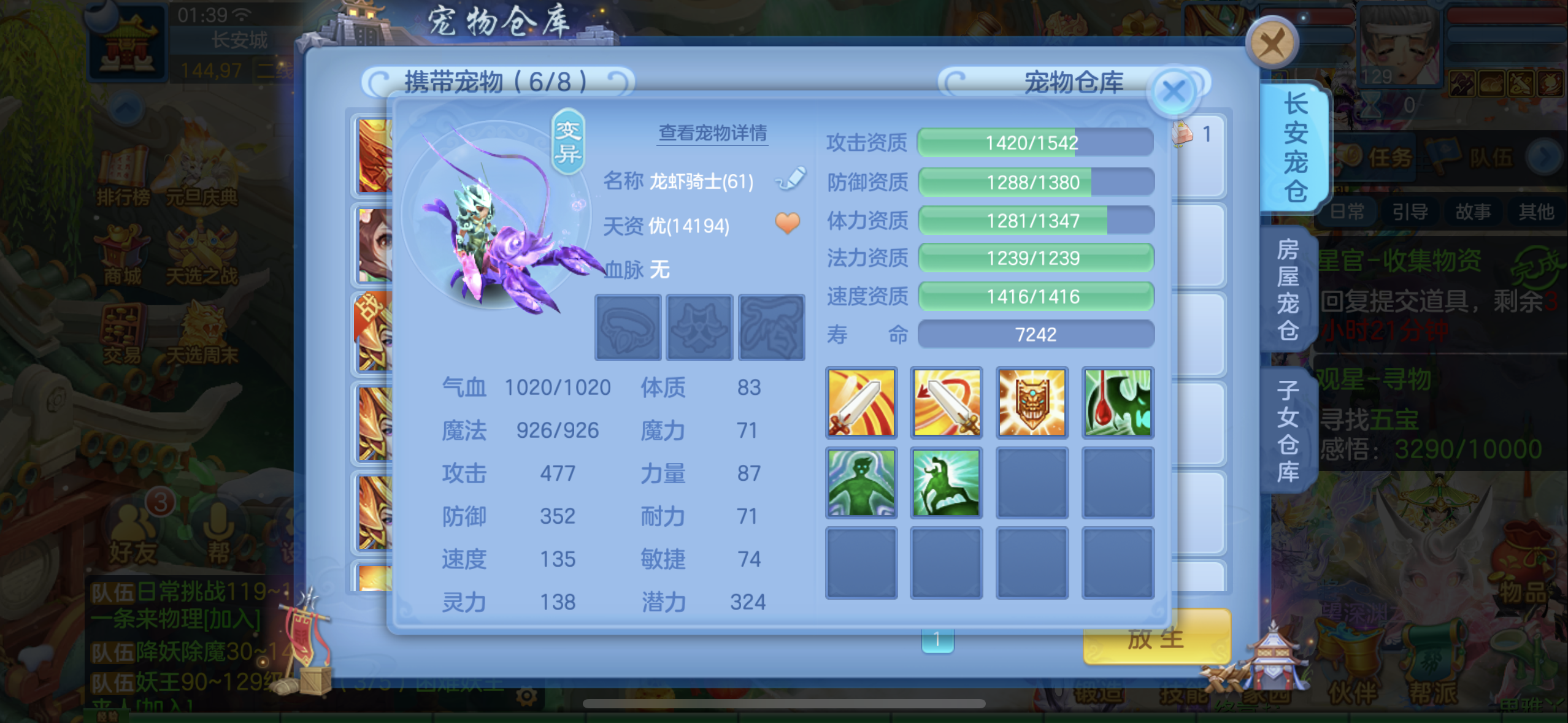 129 天宫,5技能神兽➕可换蛇高级坐骑➕6技红心龙虾