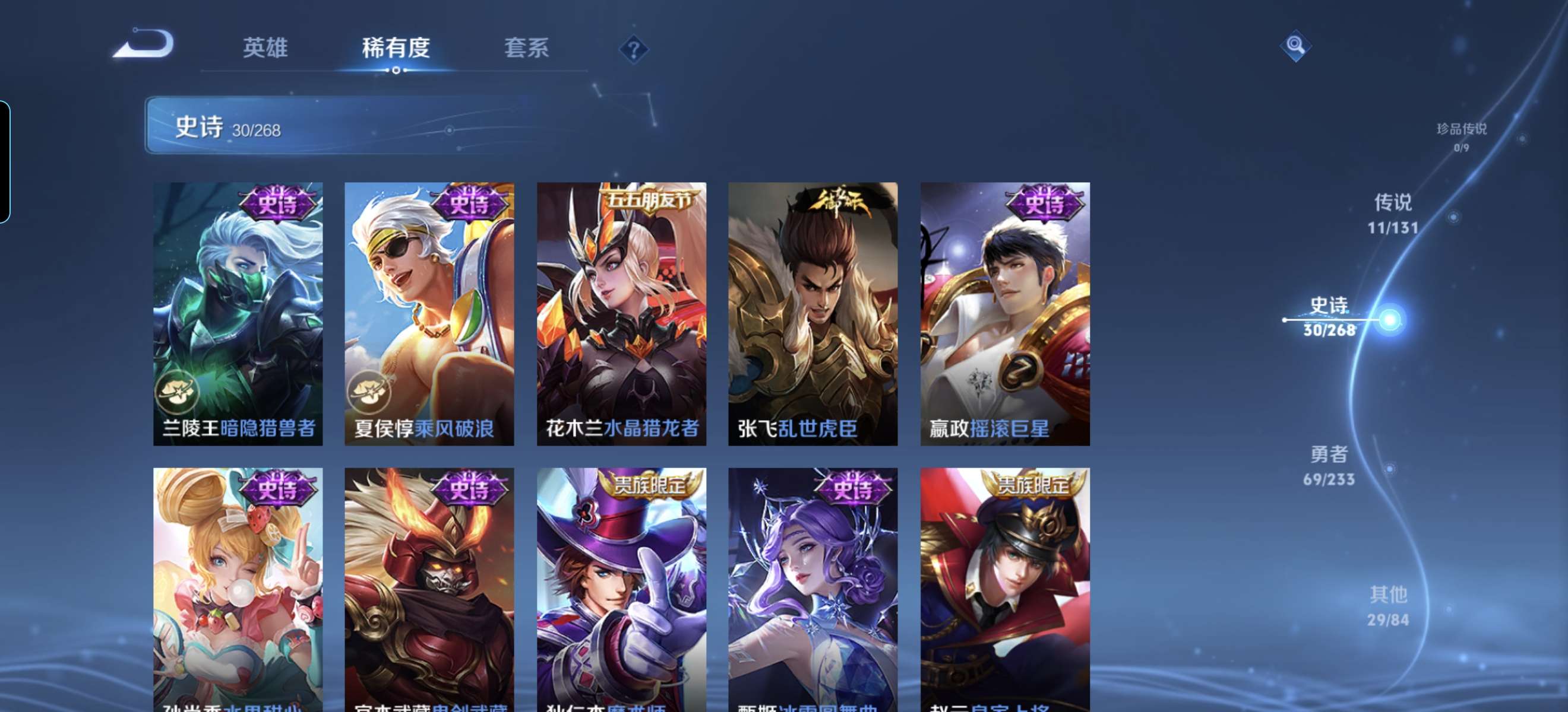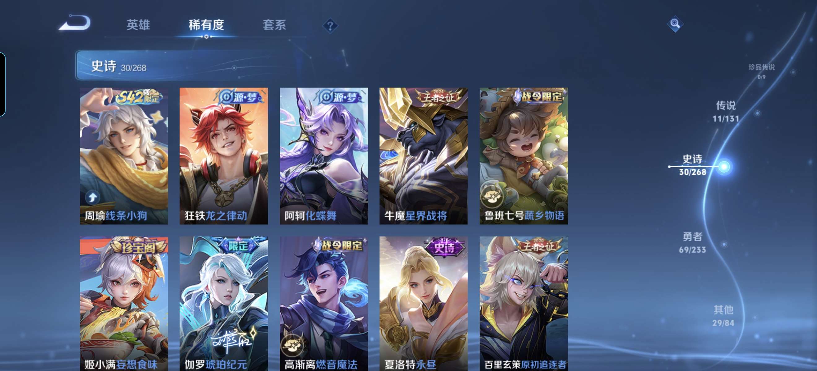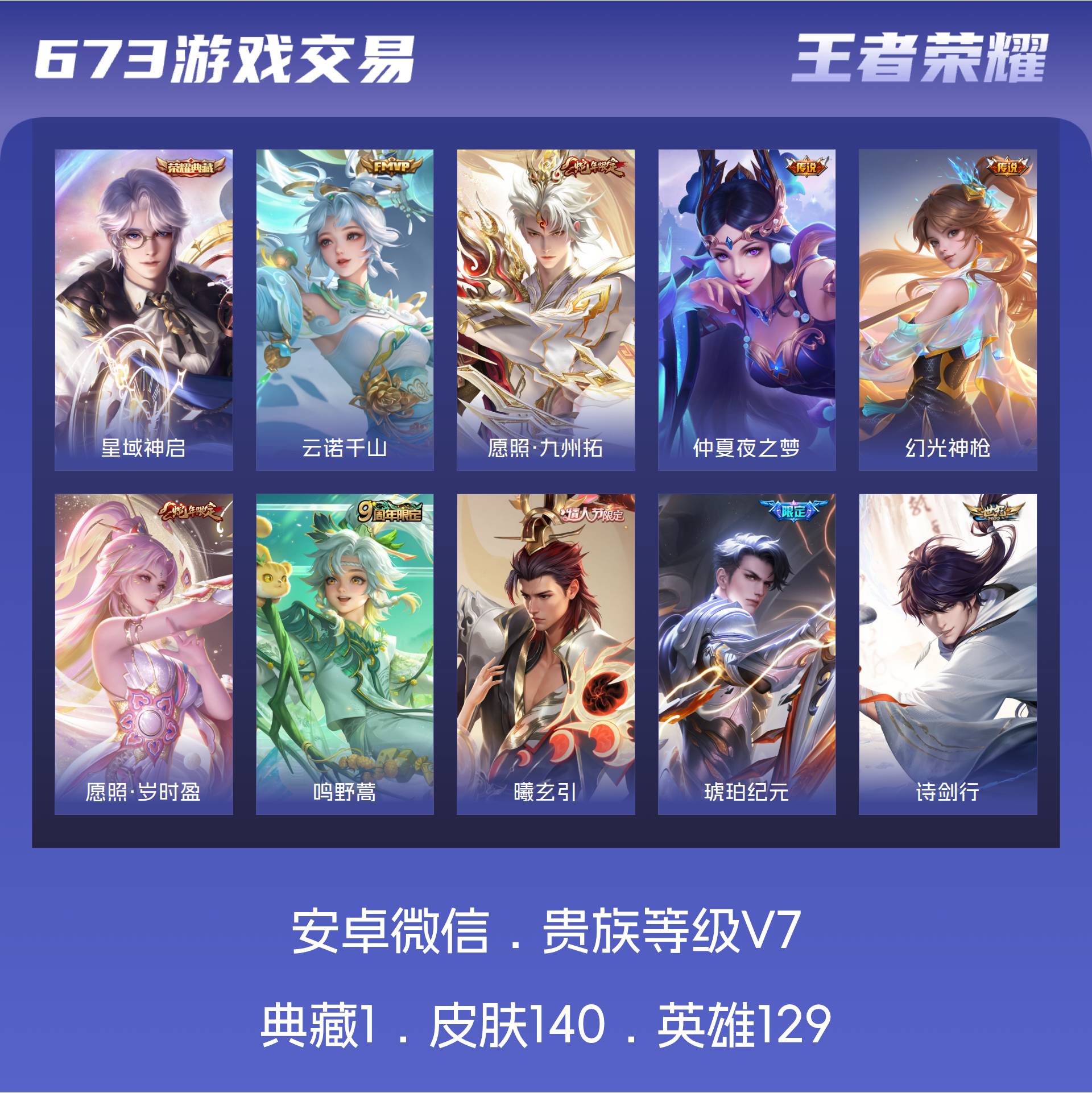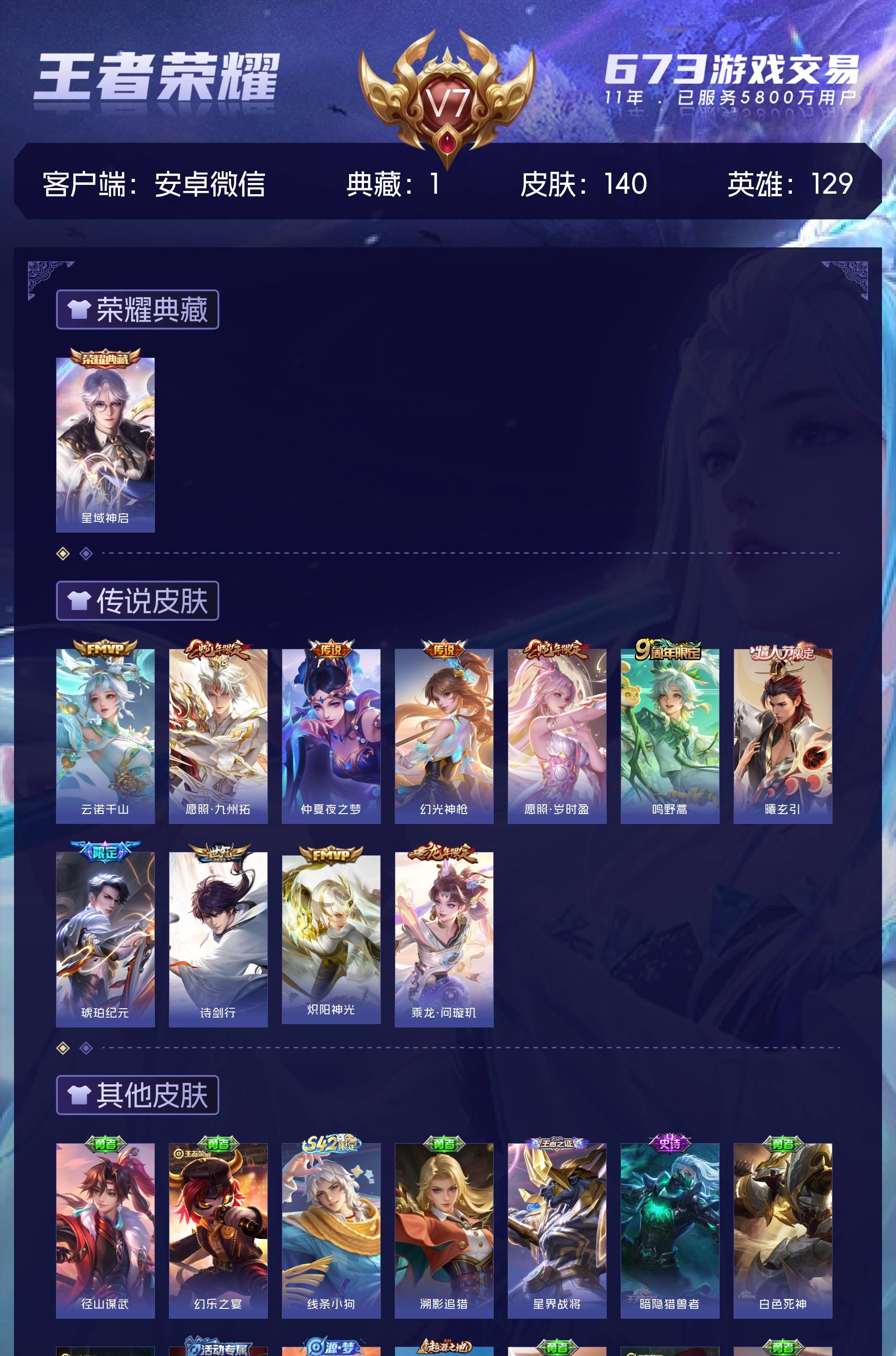 V7 皮肤140 英雄129 至尊星耀 荣耀典藏1 星传说1 传说11 其他皮肤134