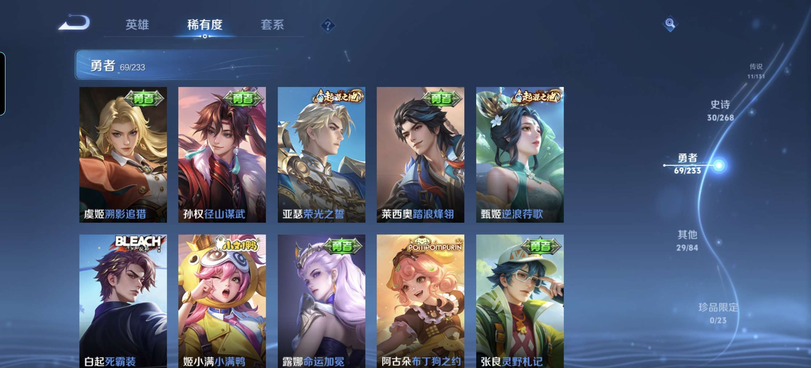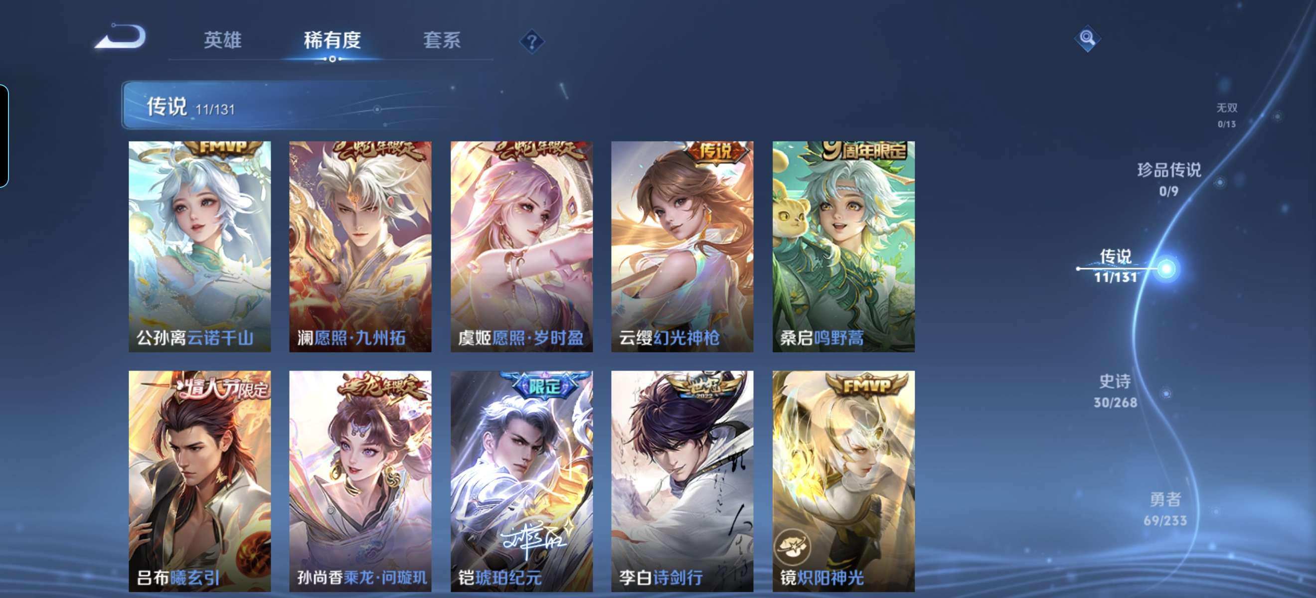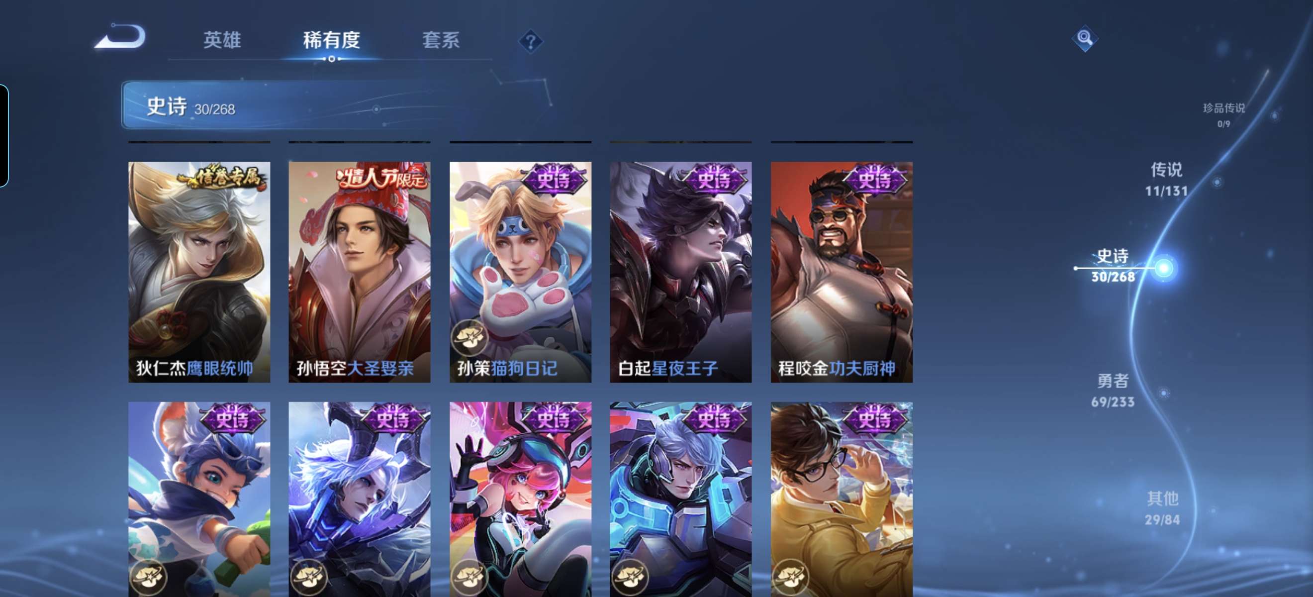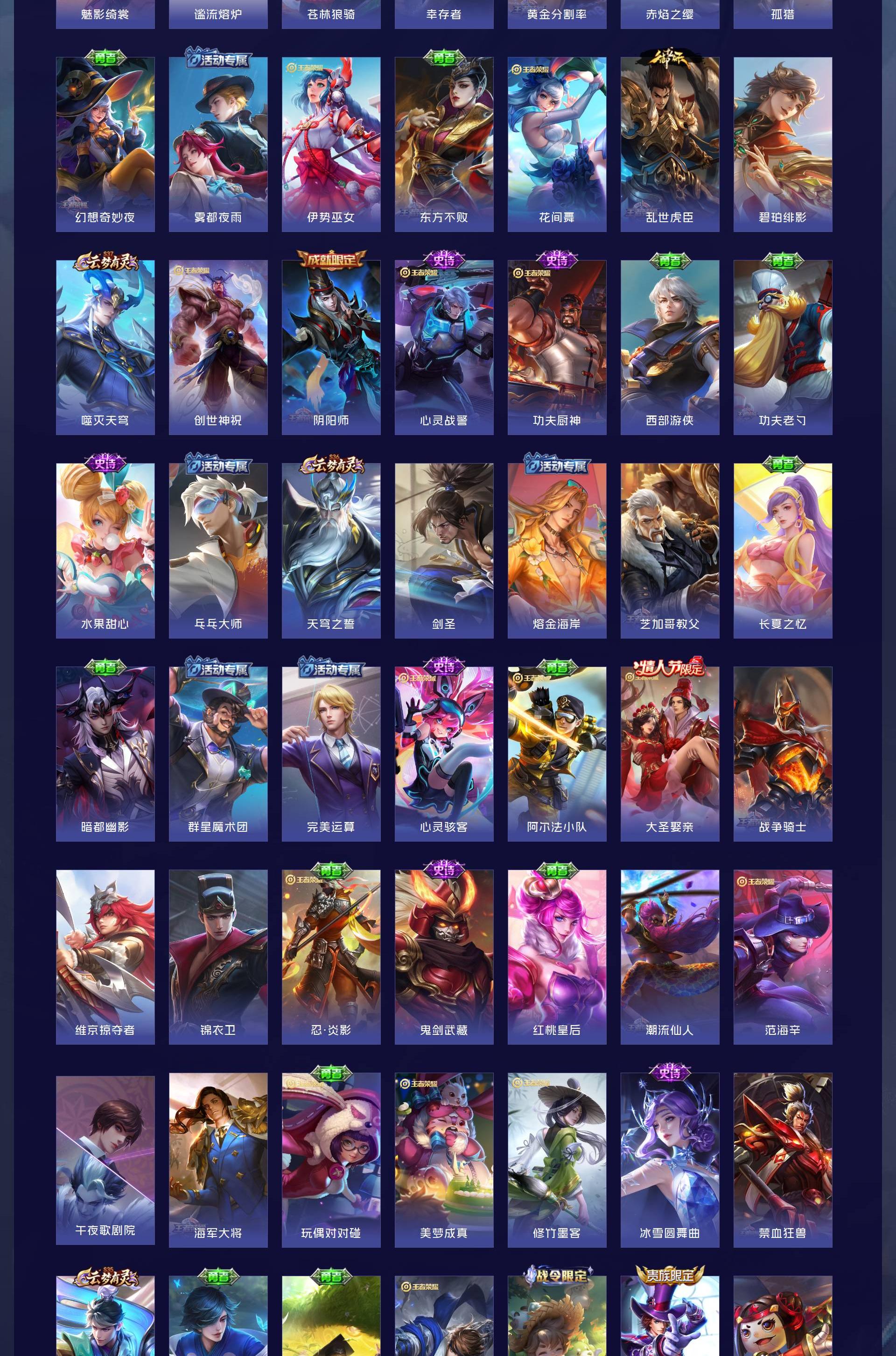 V7 皮肤140 英雄129 至尊星耀 荣耀典藏1 星传说1 传说11 其他皮肤134