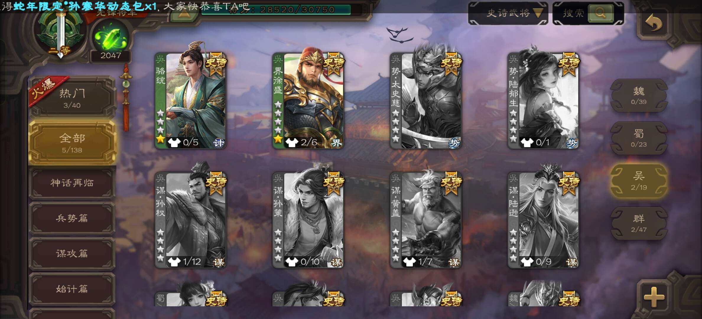 史诗武将数量: