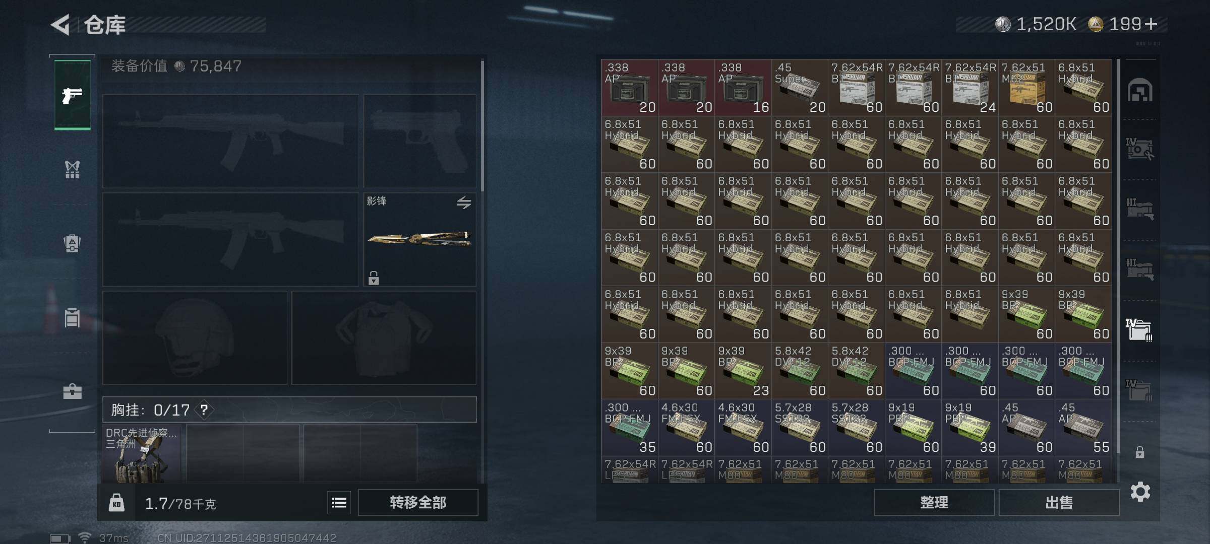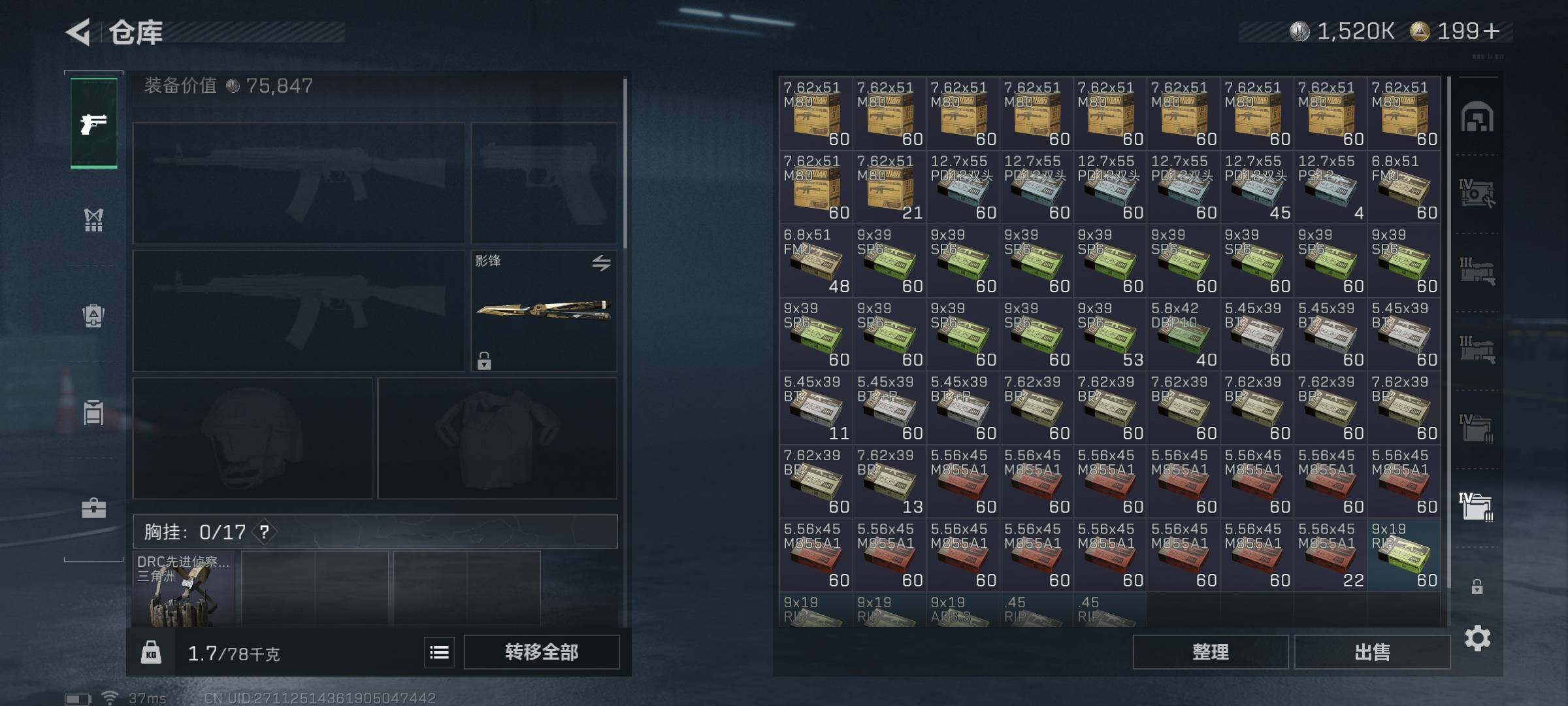 总资产(M):80M/哈夫币(K):1520K