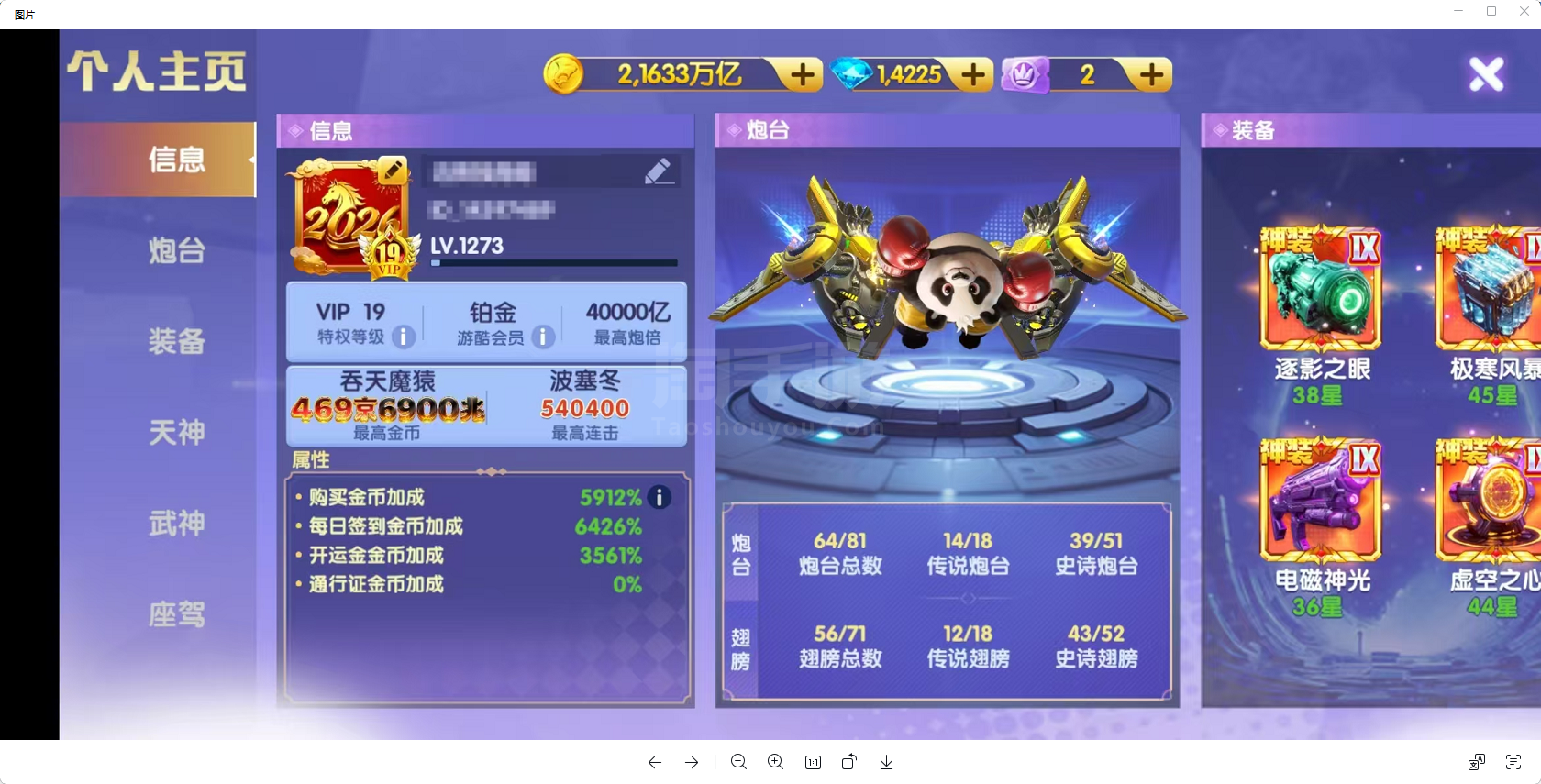官方手机号 可换绑 v19 5912加成 4万炮倍 40武神 8座驾 2.1生日礼包 感兴趣咨询