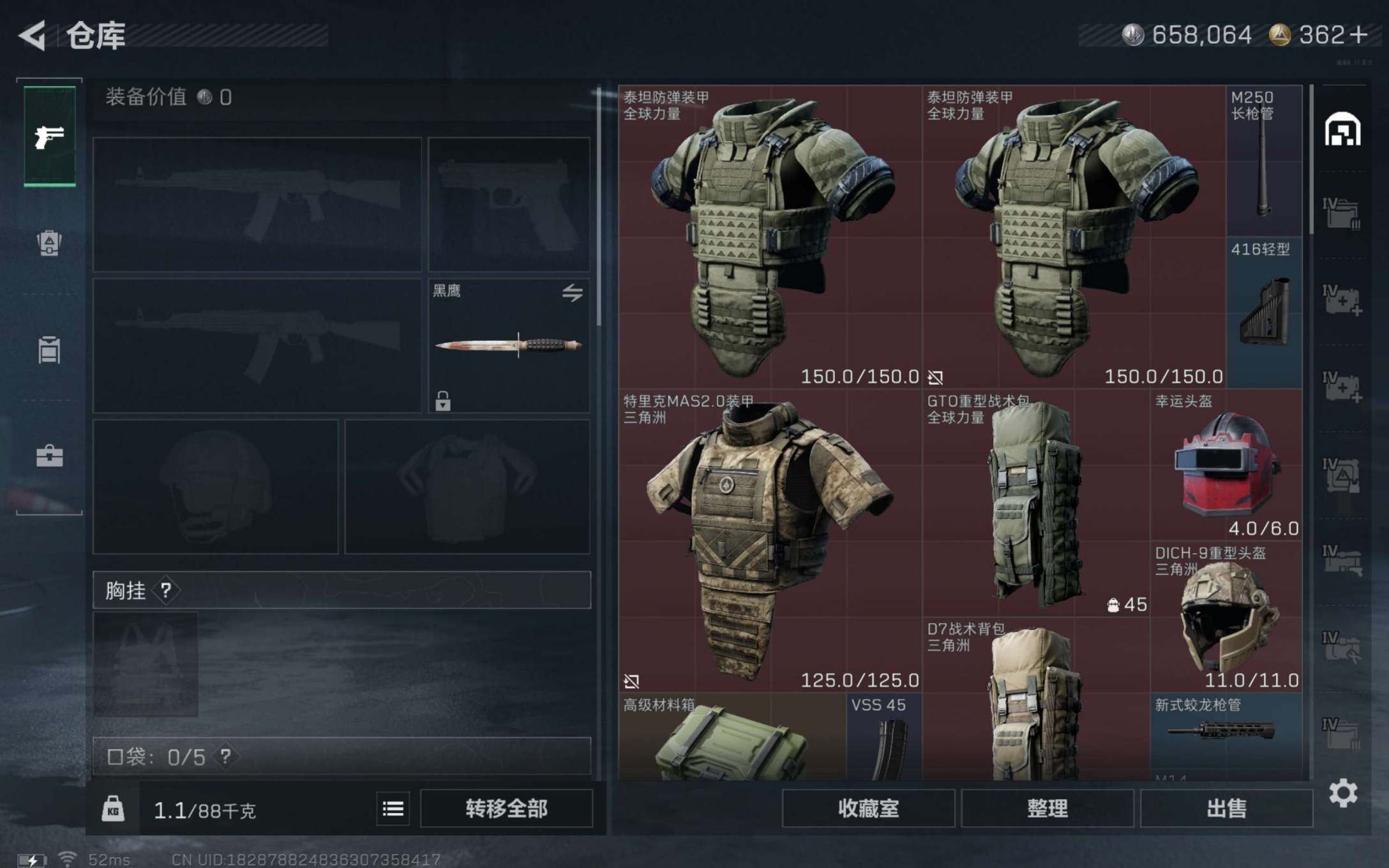 安卓QQ-总资产115.86M,哈夫币 658.06K,战场等级:1 列兵,行动等级:60 钻石,角色皮肤0,枪皮数量36