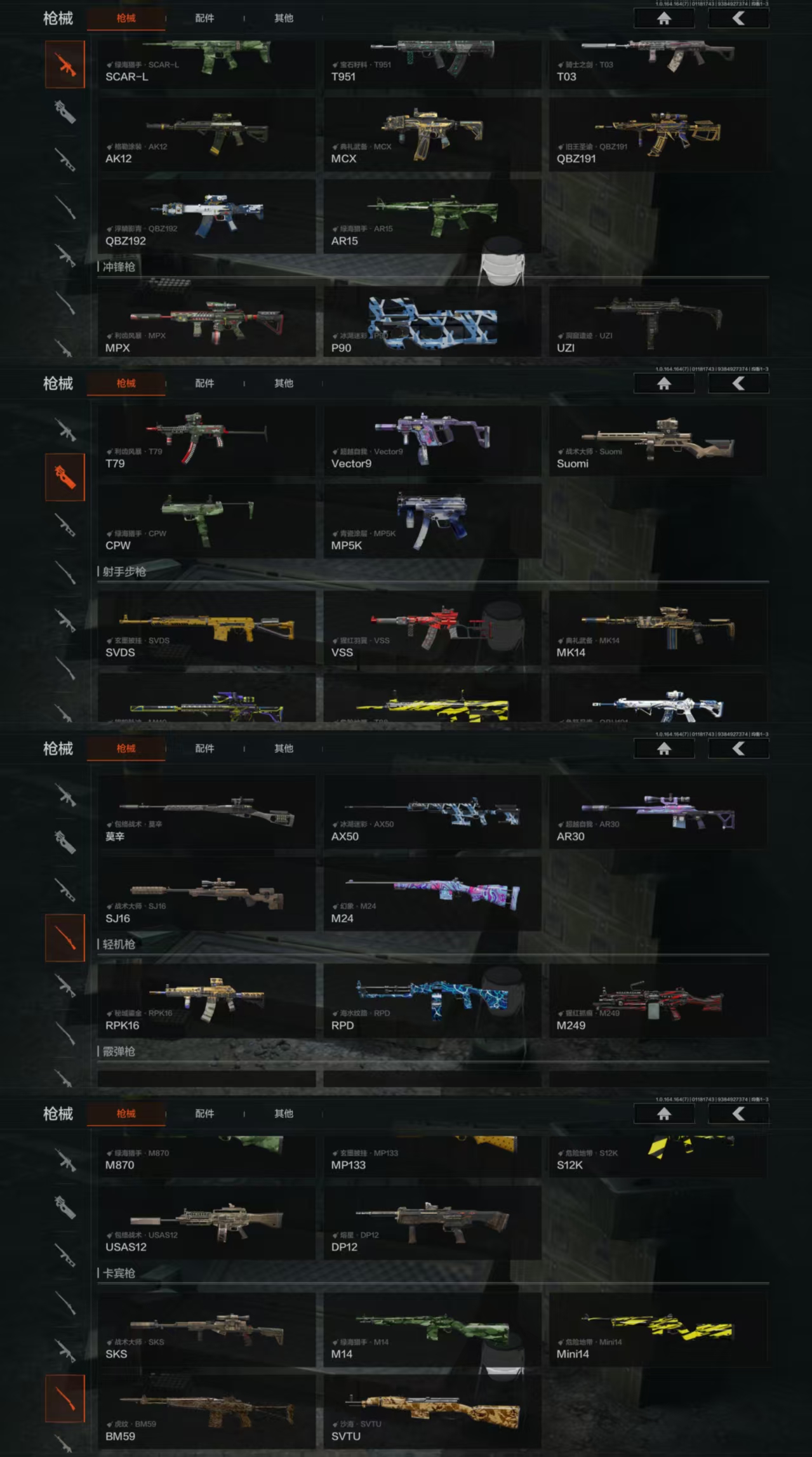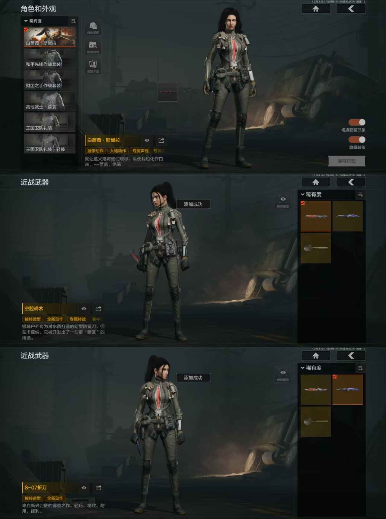 DZH666安卓Q-等级30-仓库价值204.9K-科恩币168847-【套装】和平先锋作战套装 财团之手作战套装 高地武士.套装 王国卫队礼装 白蔷薇.斯黛拉 王国卫队礼装:轻装【枪皮】包络战术.AKM告丧夜曲.AR57 战术大师.AEK 战术大师.AN94 利齿风暴.MPX【近战武器】 空腔战术 S-07折刀 工兵铲