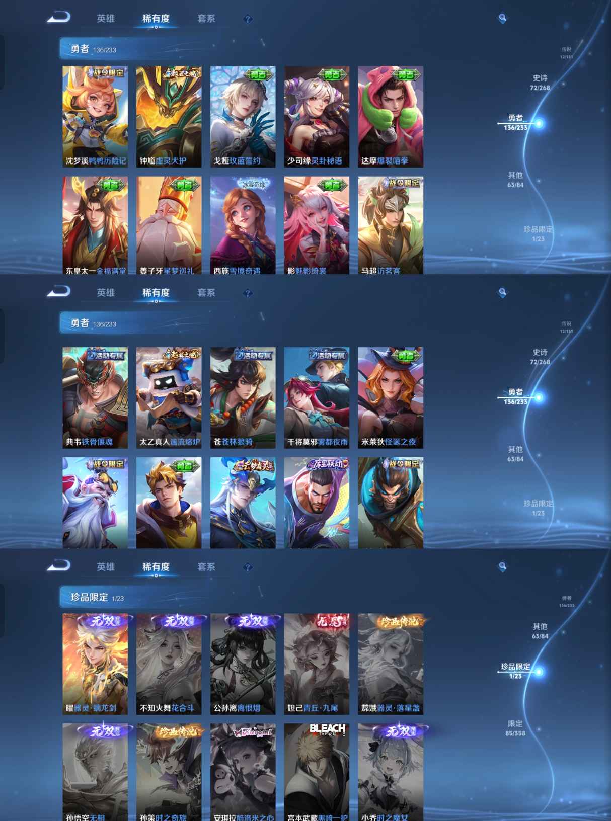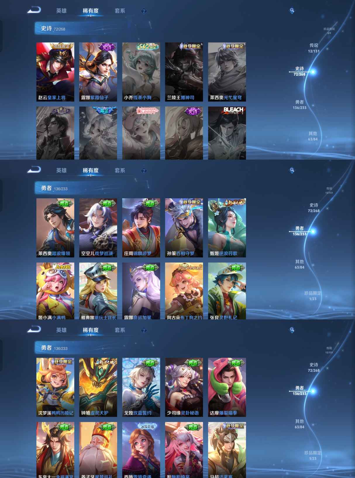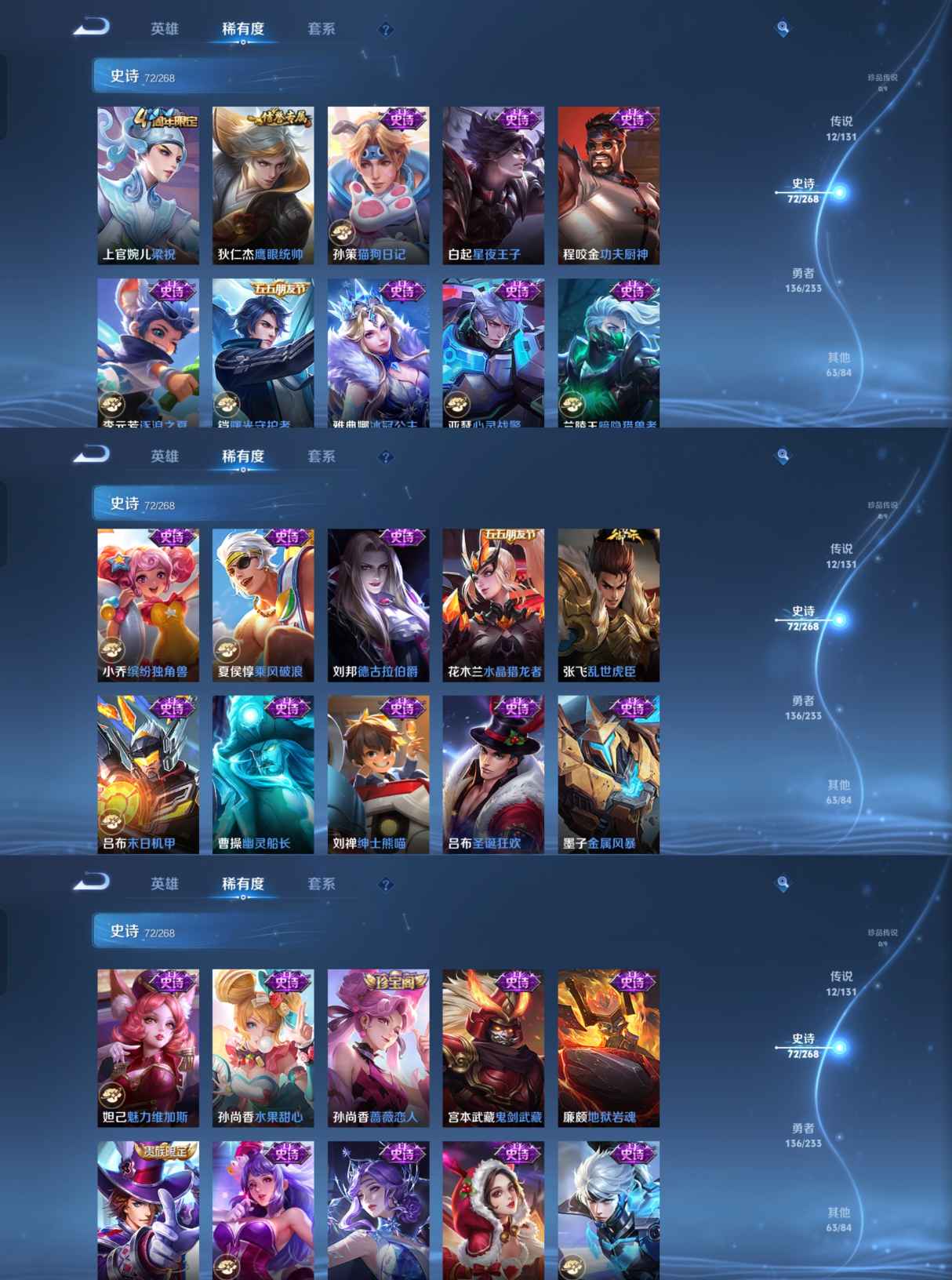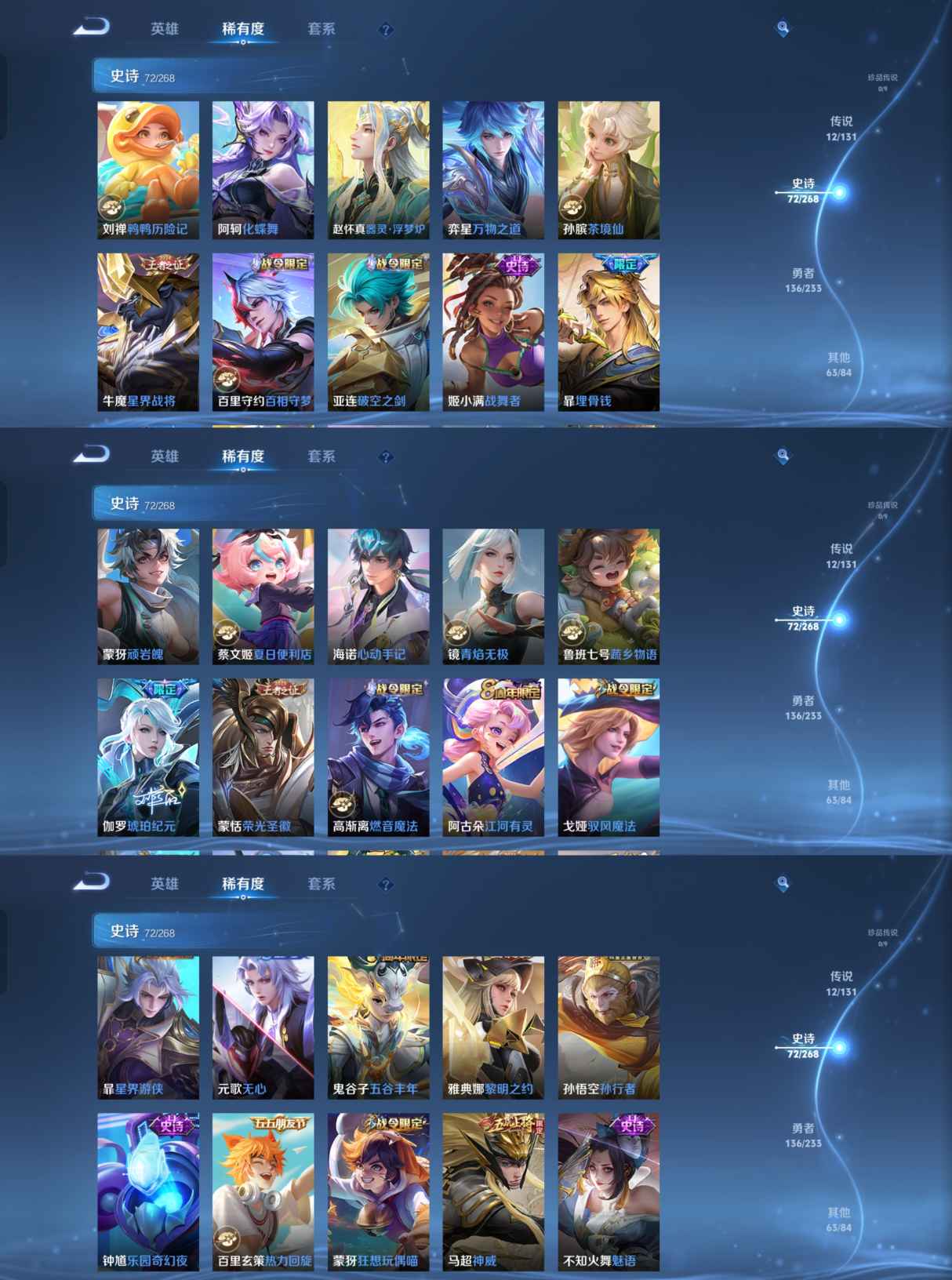 【史诗皮肤】 蔬乡物语 蔬乡物语 破空之剑 茶境仙 战舞者 星界战将 百相守梦 器灵·浮梦炉 布丁狗之约 谧流熔炉 神威 涂山容容 孙行者 鸭