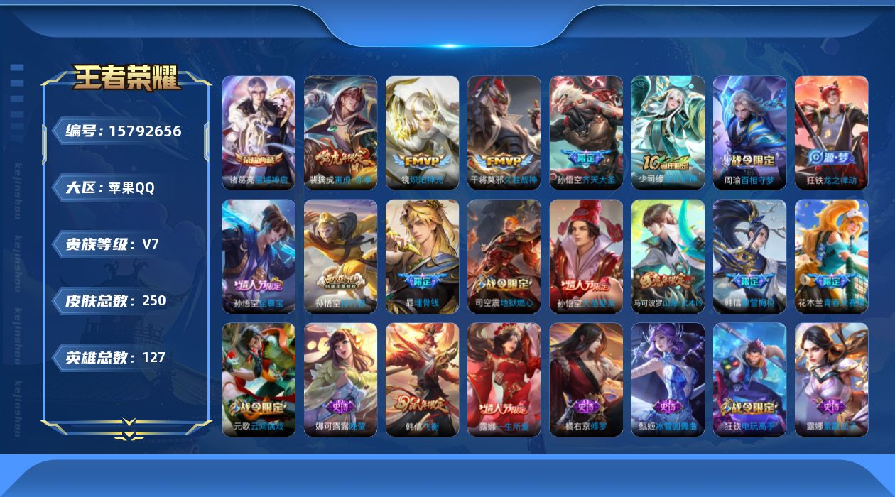 [15792656]V7 1典藏 4传说 127英雄 250皮肤 可修改实名